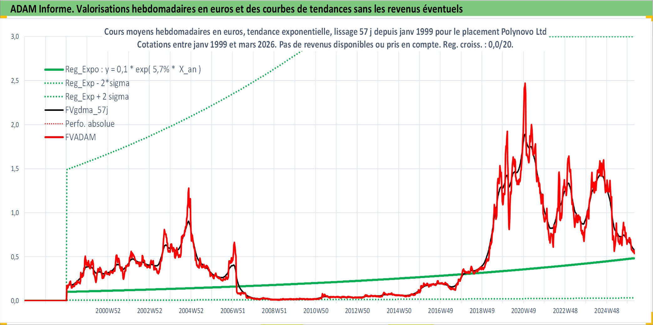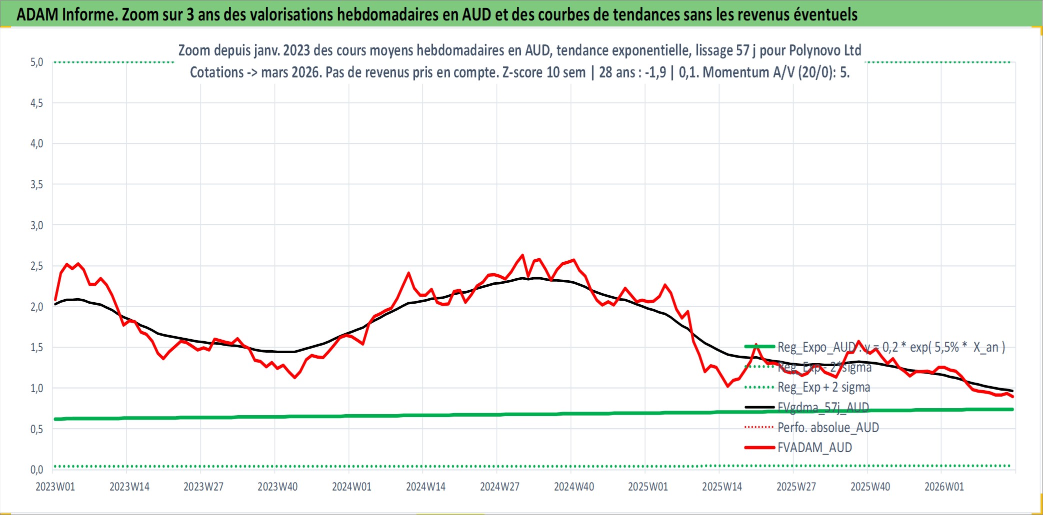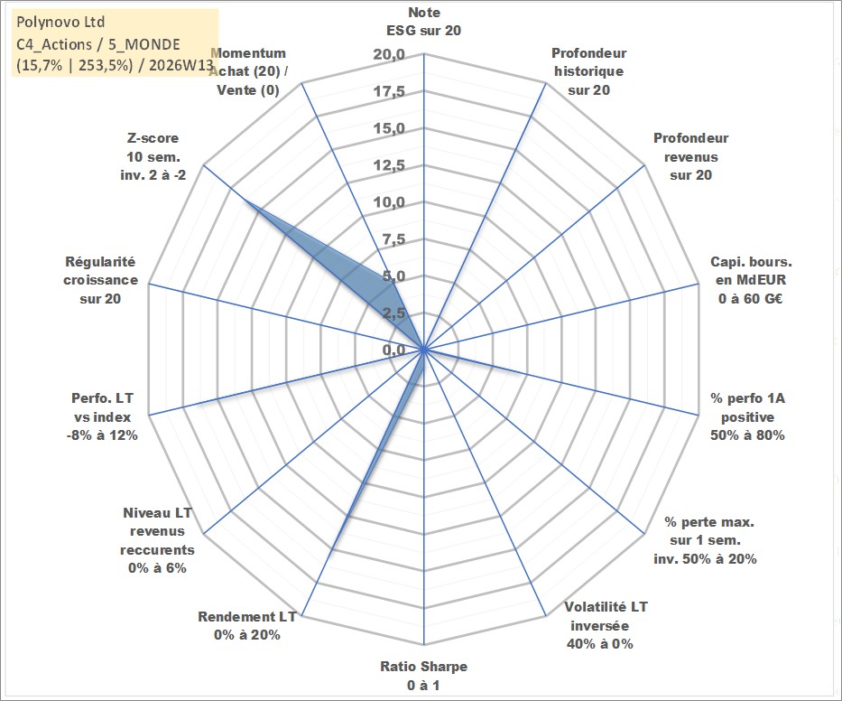 Site dédié aux investisseursPage dédiée sur site financeAnalyse des valorisations hebdomadaires de l'action Polynovo Ltd. Cet actif est cote en AUD. Les valorisations sont en contrevaleur EURO et couvrent les semaines 1999W01 a 2026W13. Les revenus de cet actif financier ne sont pas connus car non existants ou non disponibles sur le site Yahoo Finance. La note ESG de cet actif n'est pas connue.