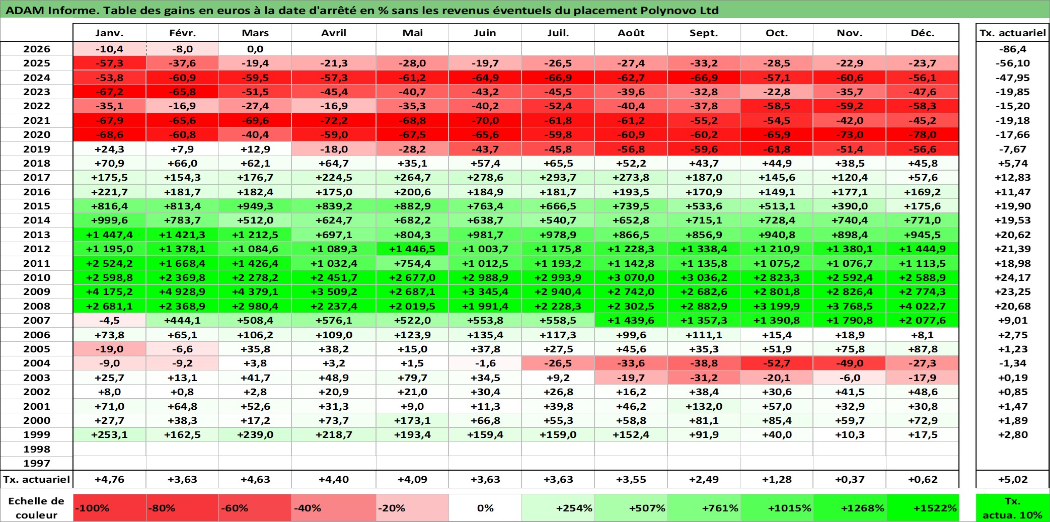 Dernière perfo 10 ans en %