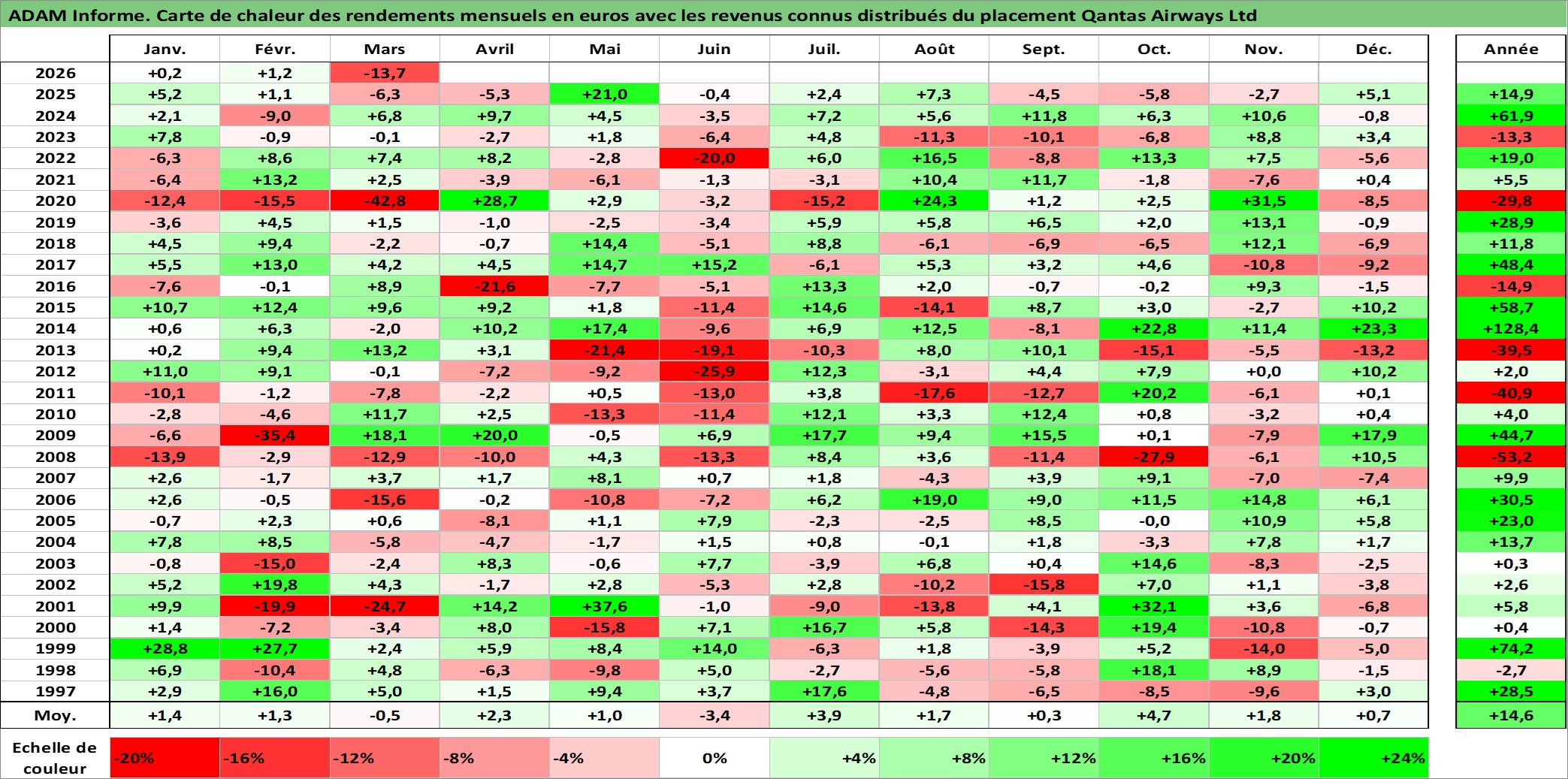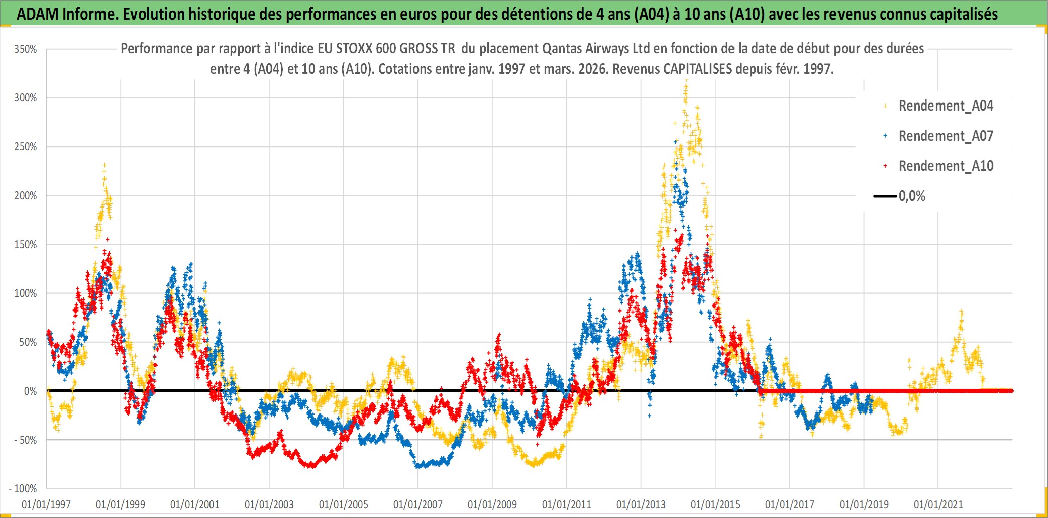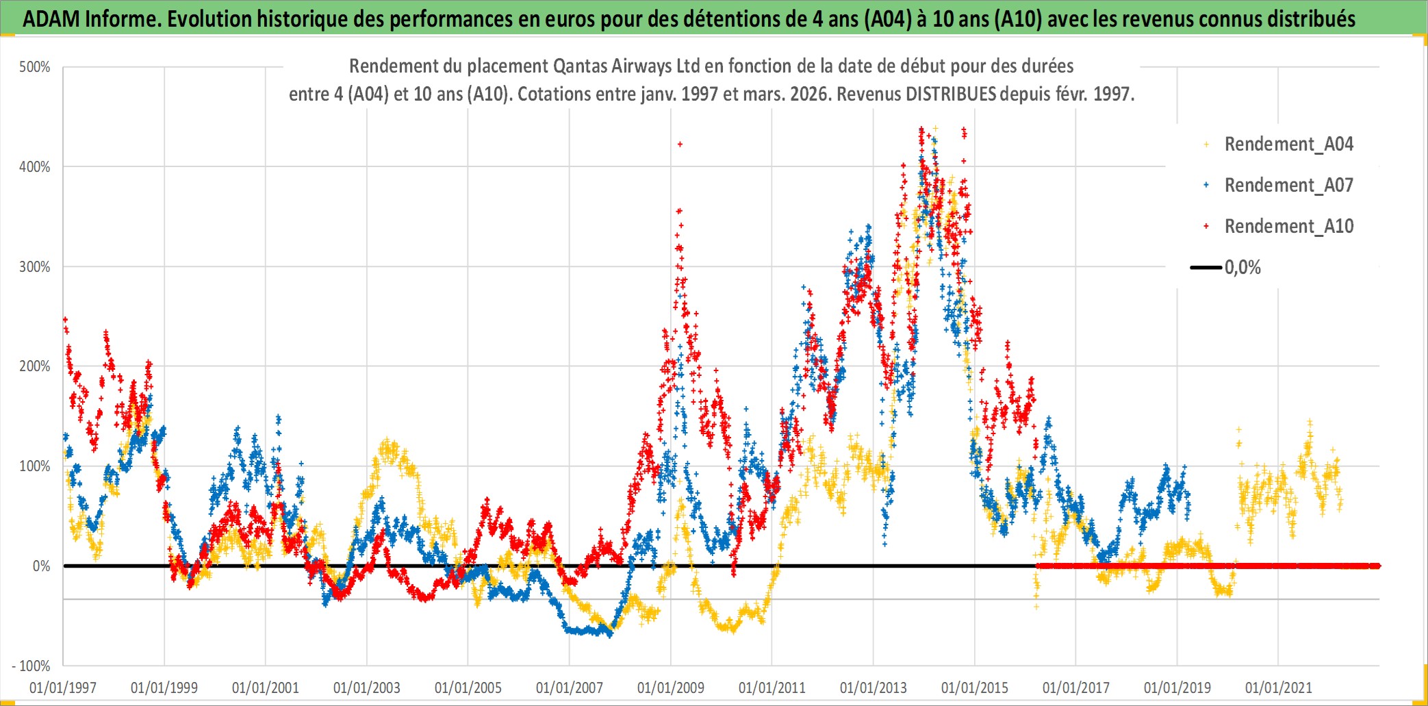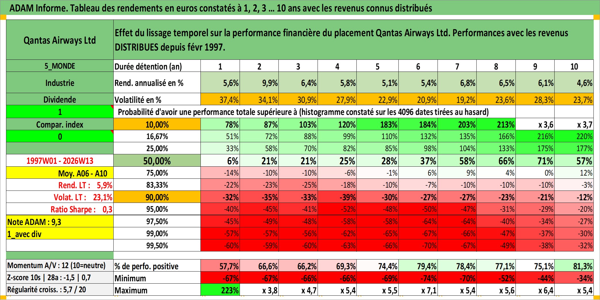 Site dédié aux investisseursPage dédiée sur site financeAnalyse des valorisations hebdomadaires de l'action Qantas Airways Ltd. Cet actif est cote en AUD. Les valorisations sont en contrevaleur EURO et couvrent les semaines 1997W01 a 2026W13. Les revenus de cet actif financier sont pris en compte depuis la semaine 1997W09. La note ESG de cet actif n'est pas connue.