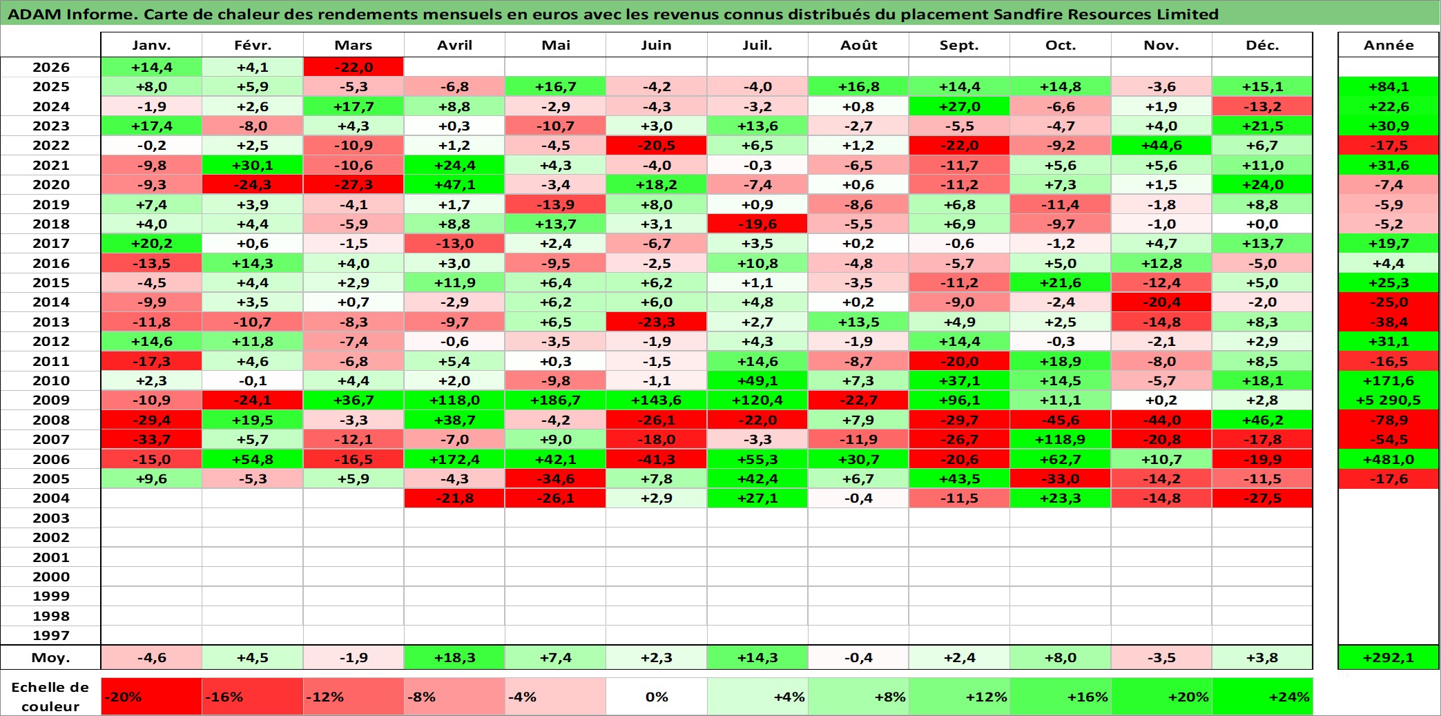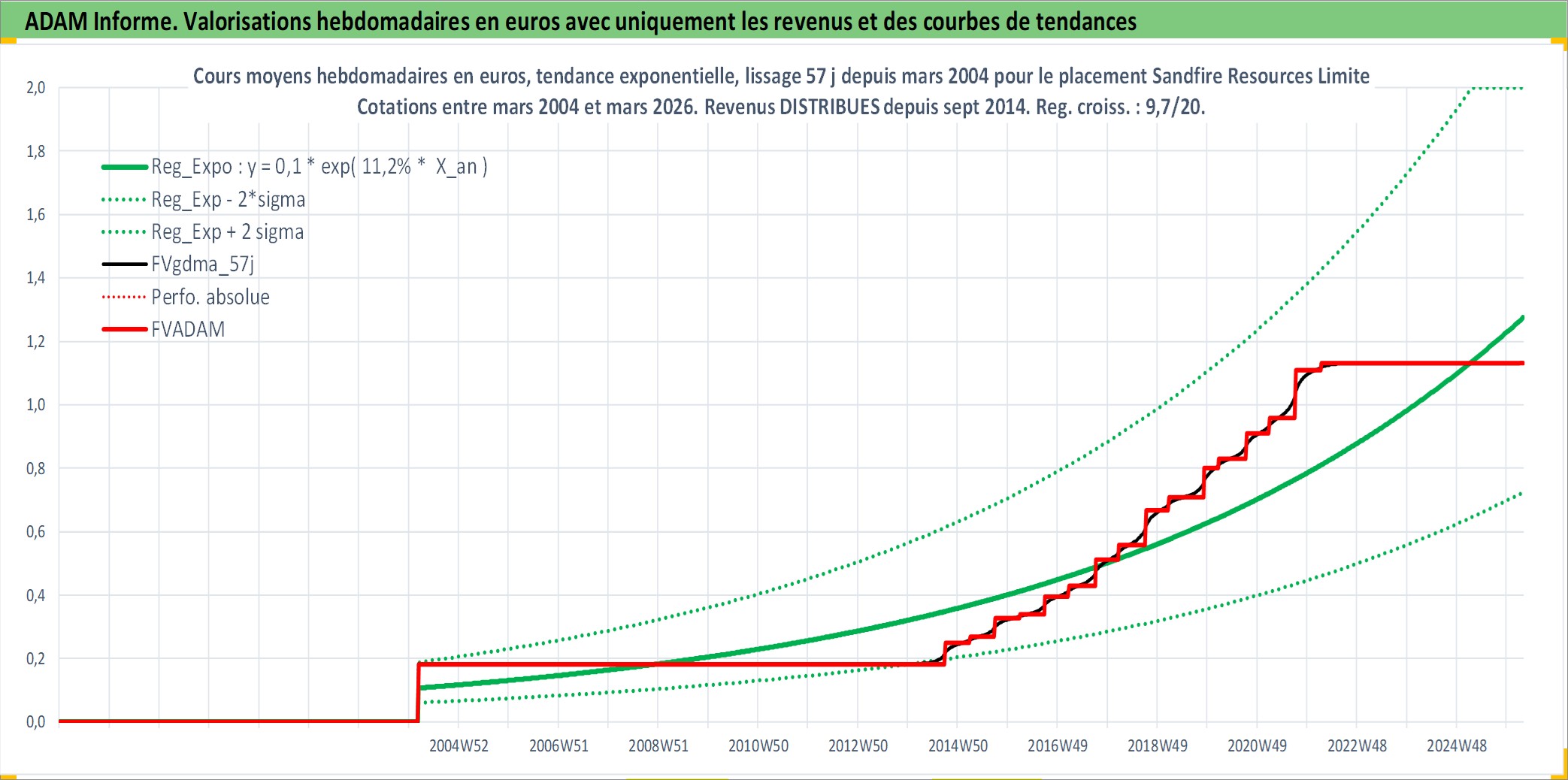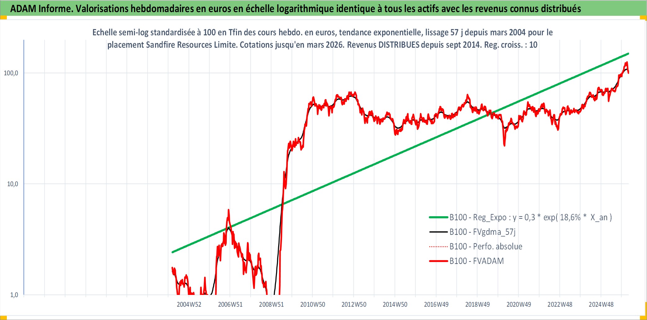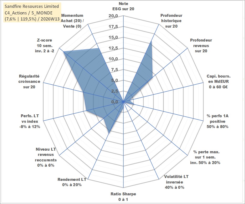 Site dédié aux investisseursPage dédiée sur site financeAnalyse des valorisations hebdomadaires de l'action Sandfire Resources Limited. Cet actif est cote en AUD. Les valorisations sont en contrevaleur EURO et couvrent les semaines 2004W10 a 2026W13. Les revenus de cet actif financier sont pris en compte depuis la semaine 2014W37. La note ESG de cet actif n'est pas connue.