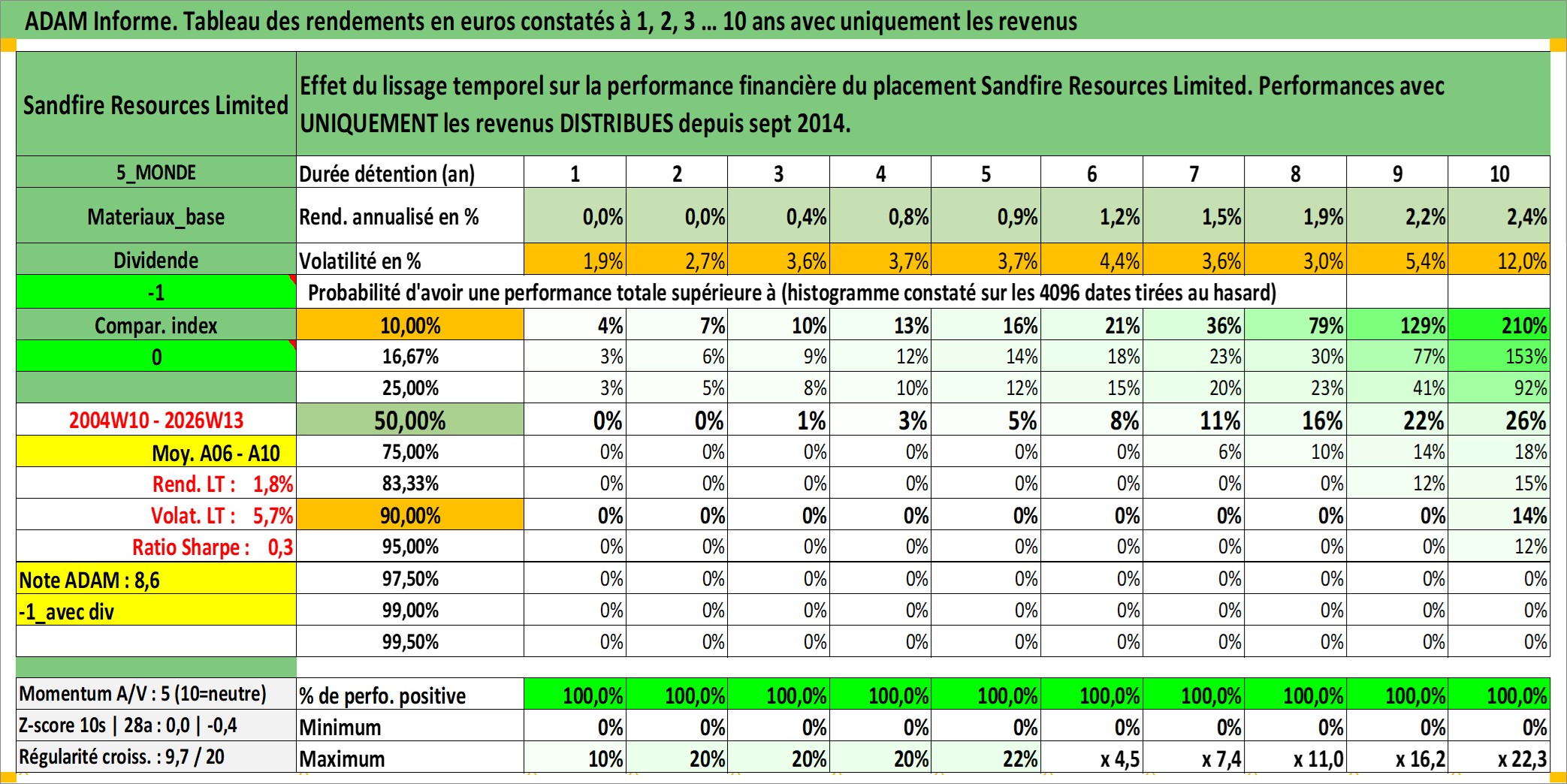 Dernière perfo 10 ans en %
