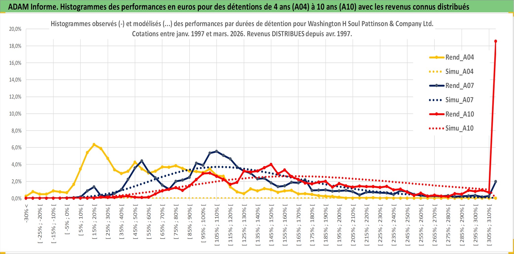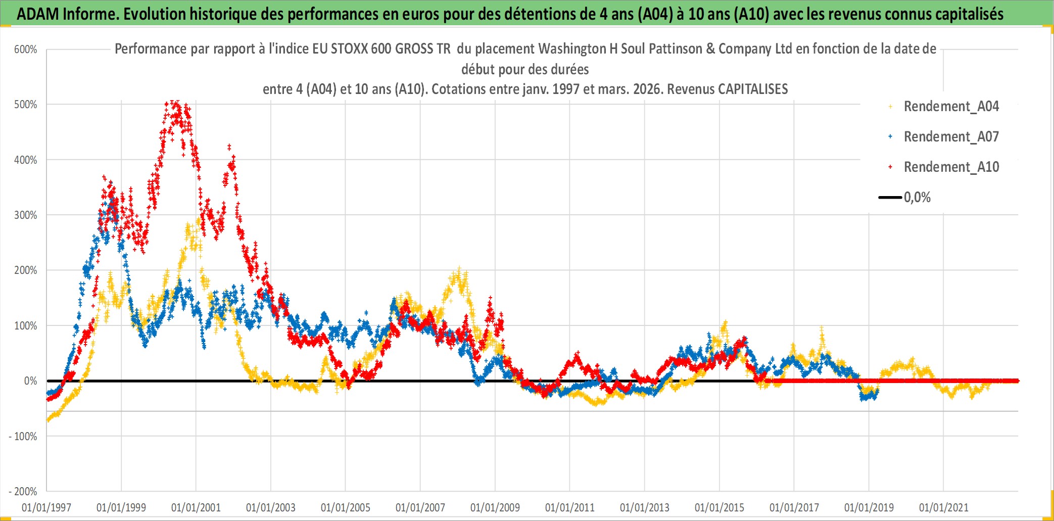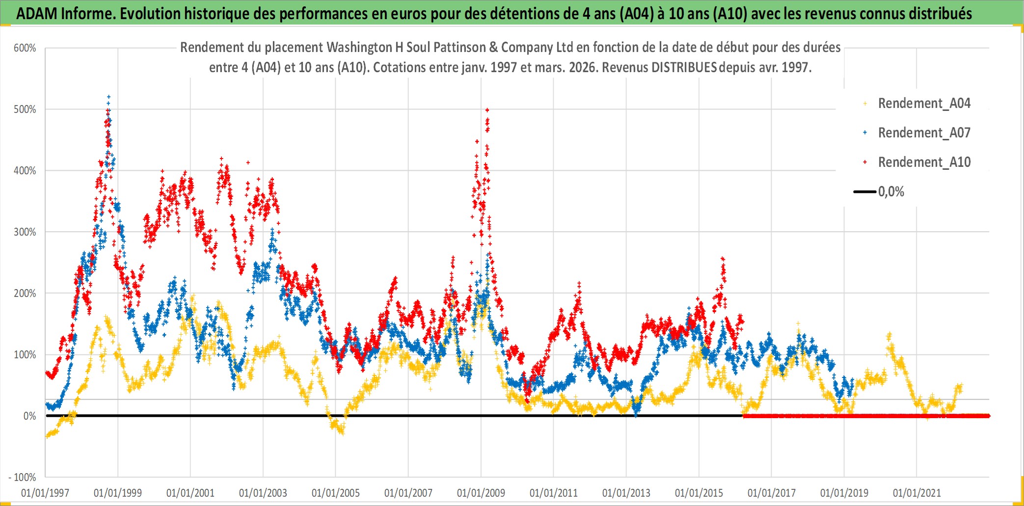 Site dédié aux investisseursPage dédiée sur site financeAnalyse des valorisations hebdomadaires de l'action Washington H Soul Pattinson & Company Ltd. Cet actif est cote en AUD. Les valorisations sont en contrevaleur EURO et couvrent les semaines 1997W01 a 2026W13. Les revenus de cet actif financier sont pris en compte depuis la semaine 1997W17. La note ESG de cet actif n'est pas connue.
