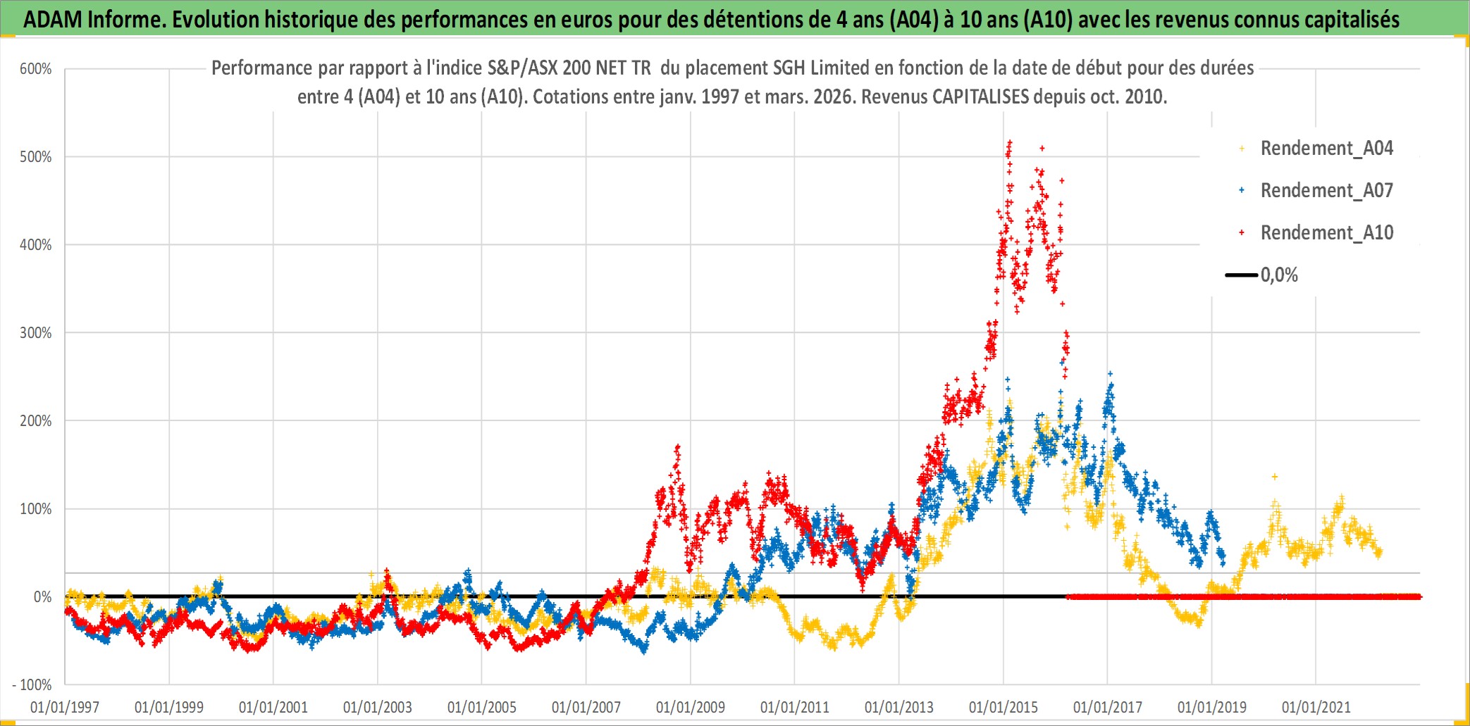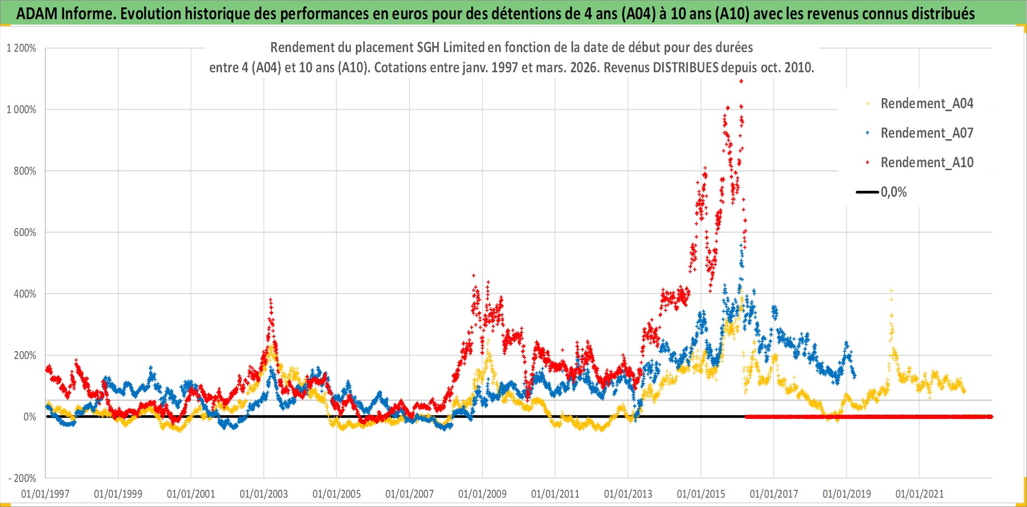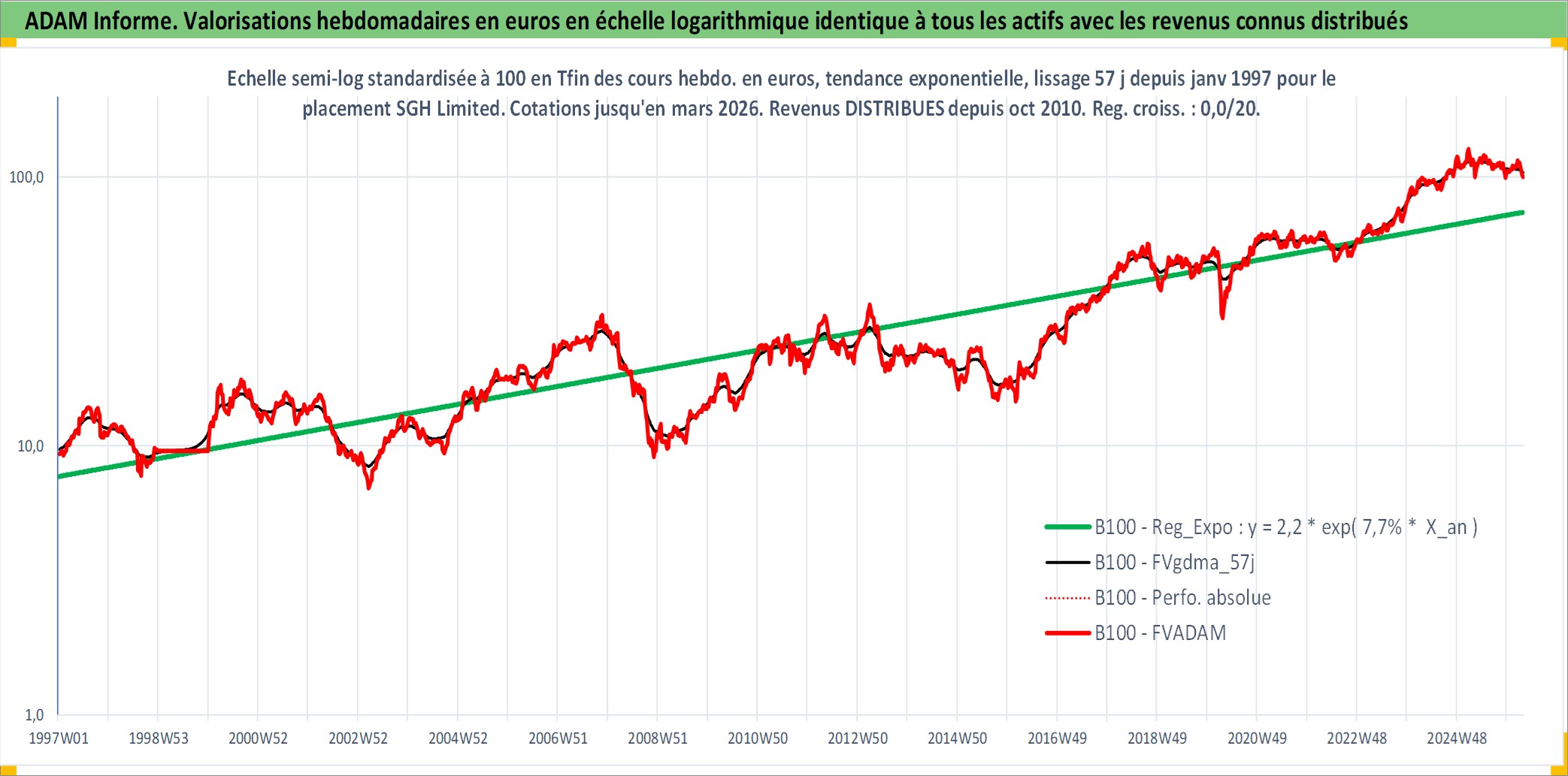 Site dédié aux investisseursPage dédiée sur site financeAnalyse des valorisations hebdomadaires de l'action SGH Limited. Cet actif est cote en AUD. Les valorisations sont en contrevaleur EURO et couvrent les semaines 1997W01 a 2026W13. Les revenus de cet actif financier sont pris en compte depuis la semaine 2010W39. La note ESG de cet actif n'est pas connue.