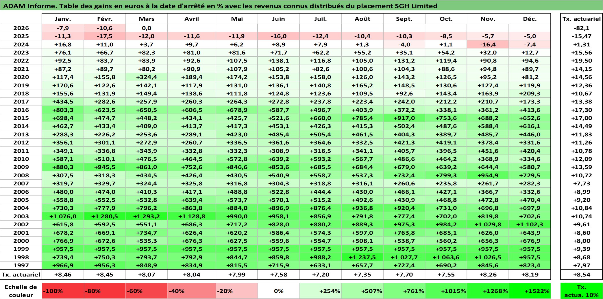 Dernière perfo 10 ans en %