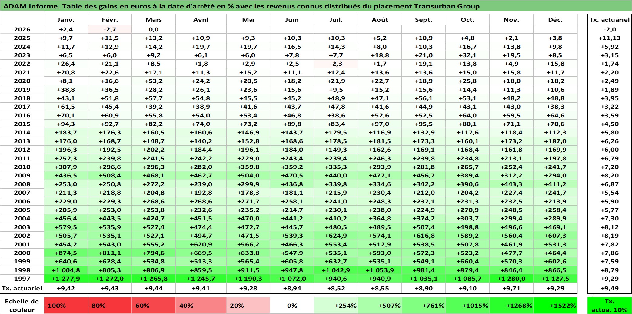 Dernière perfo 10 ans en %