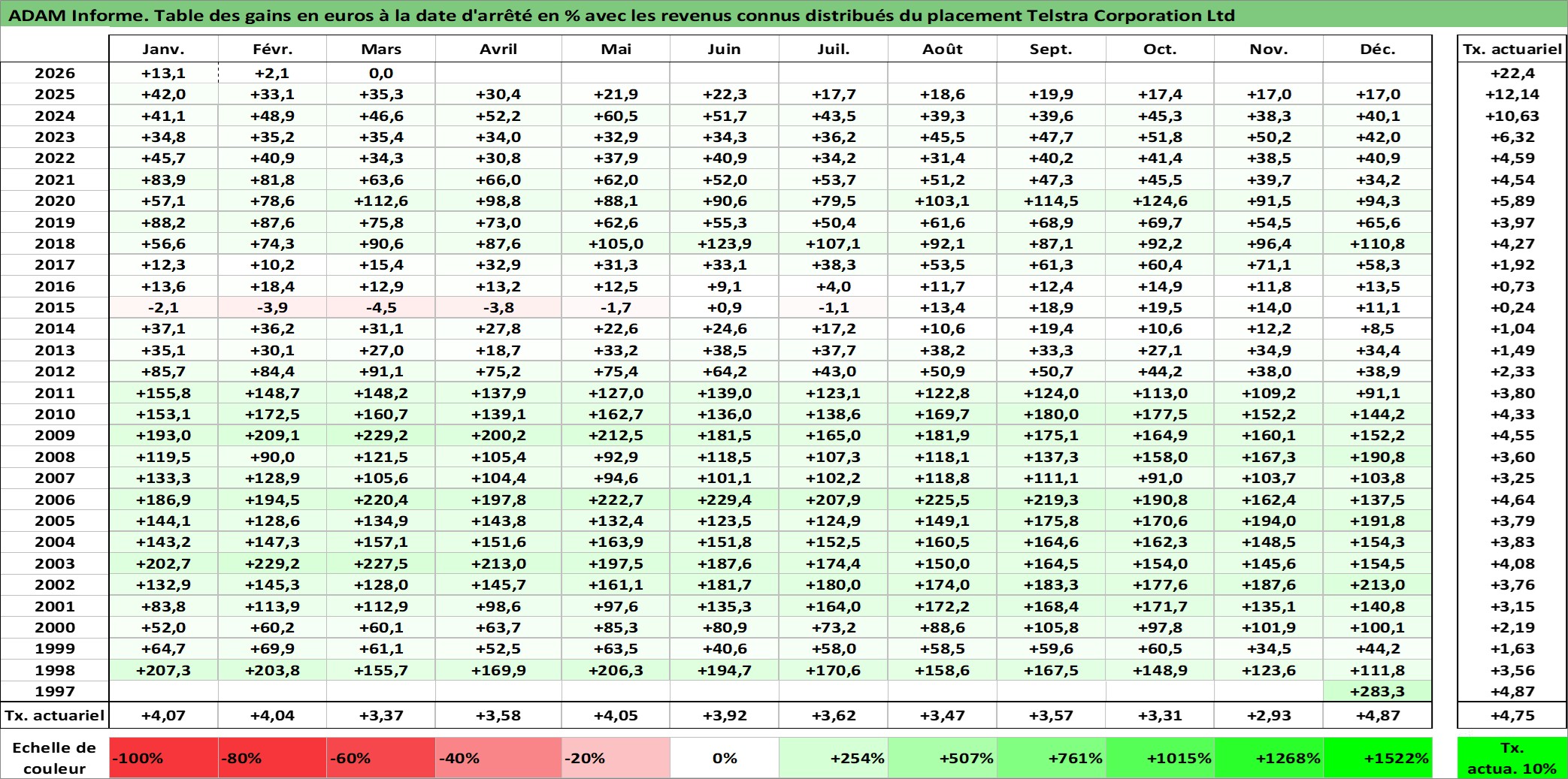 Dernière perfo 10 ans en %