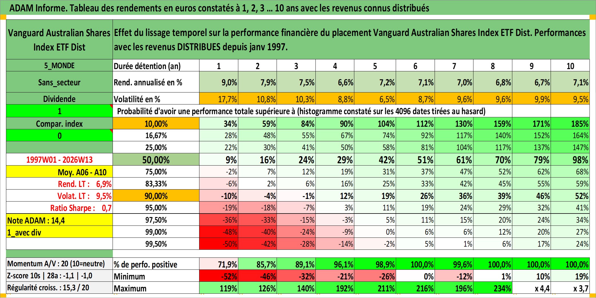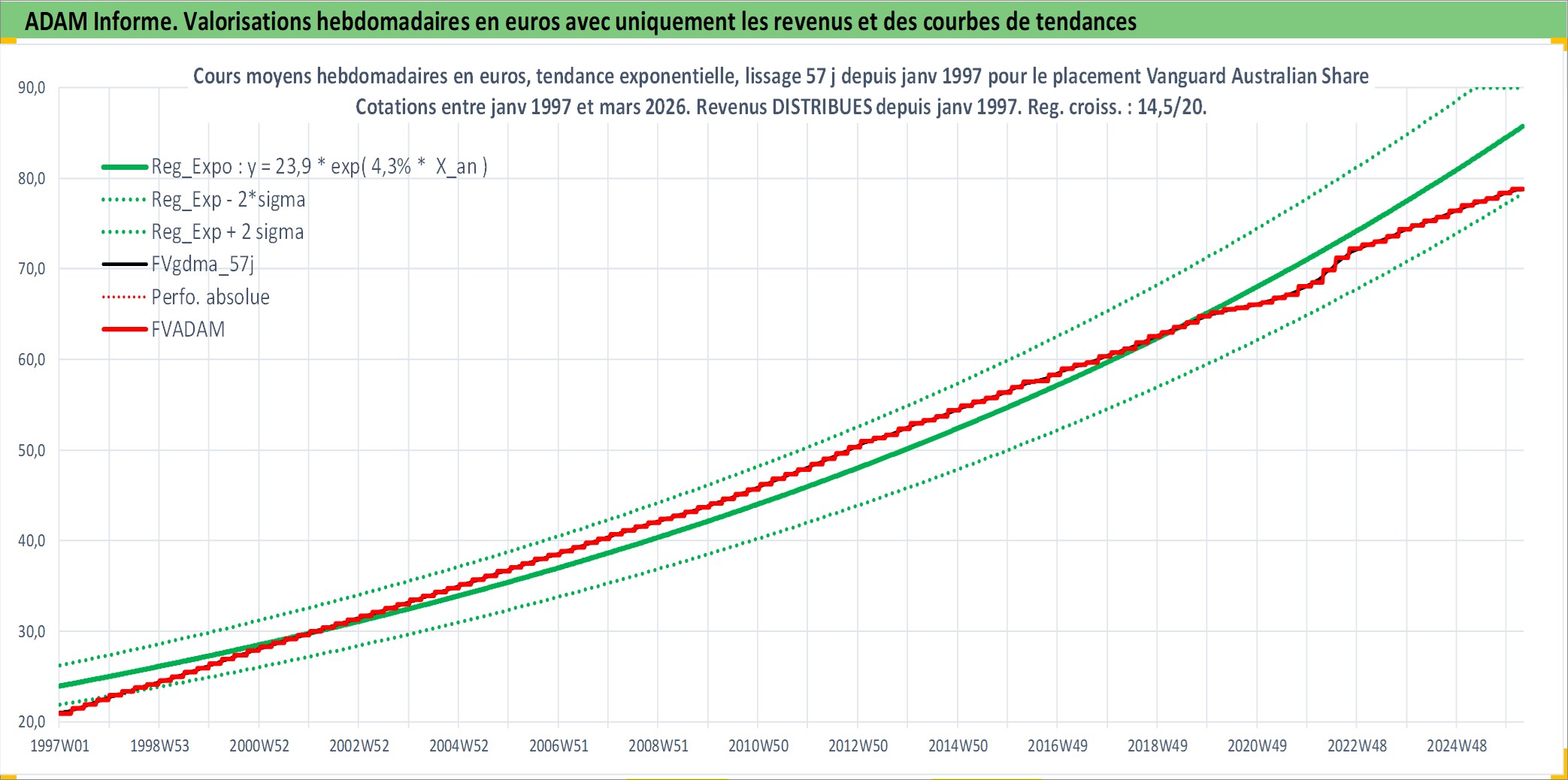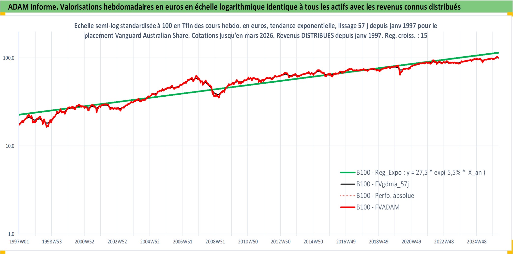 Site dédié aux investisseursPage dédiée sur site financeAnalyse des valorisations hebdomadaires du fonds Vanguard Australian Shares Index ETF Dist. Cet actif est cote en AUD. Les valorisations sont en contrevaleur EURO et couvrent les semaines 1997W01 a 2026W13. Les revenus de cet actif financier sont pris en compte depuis la semaine 1997W01. La note ESG de cet actif n'est pas connue.