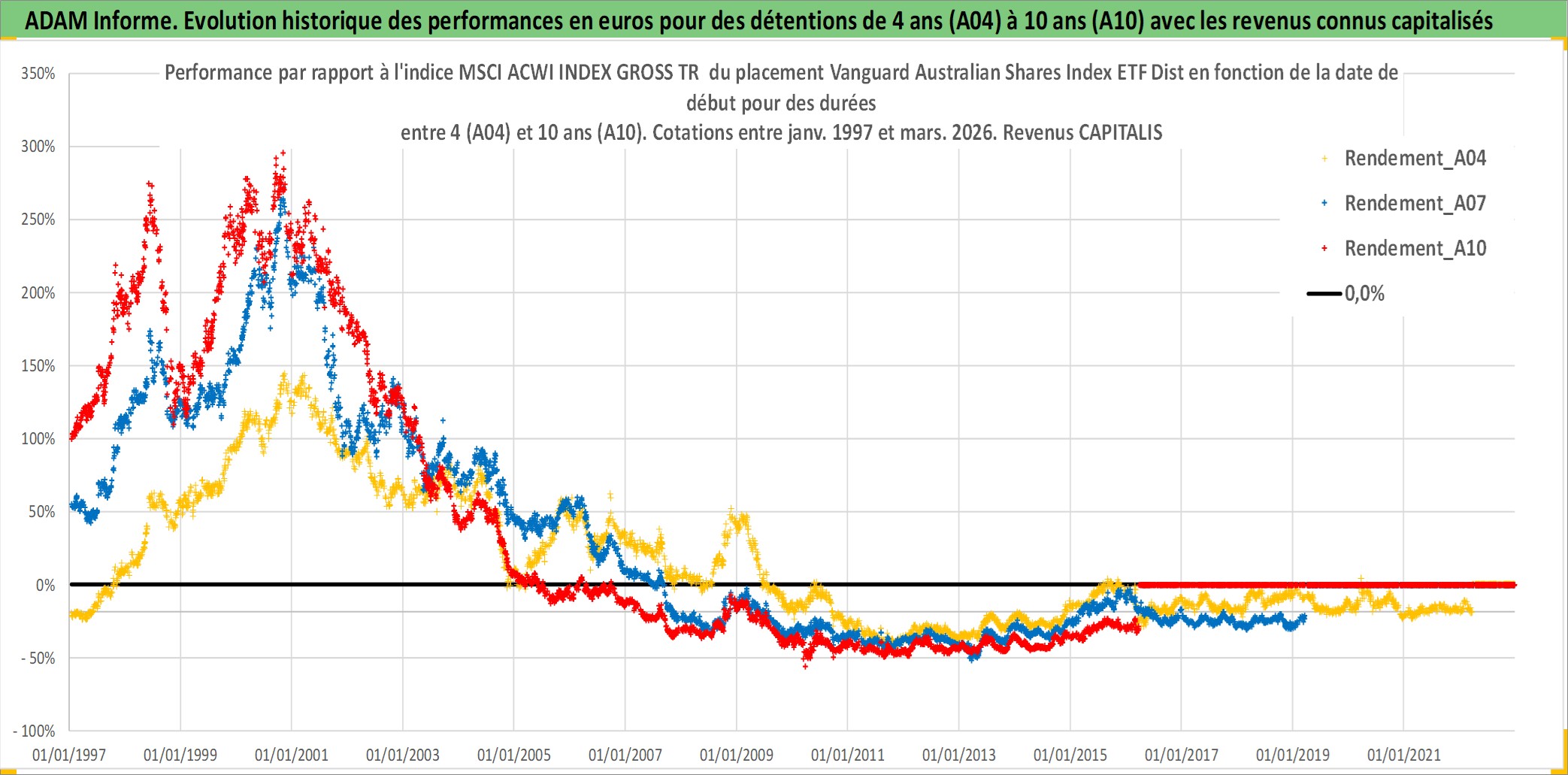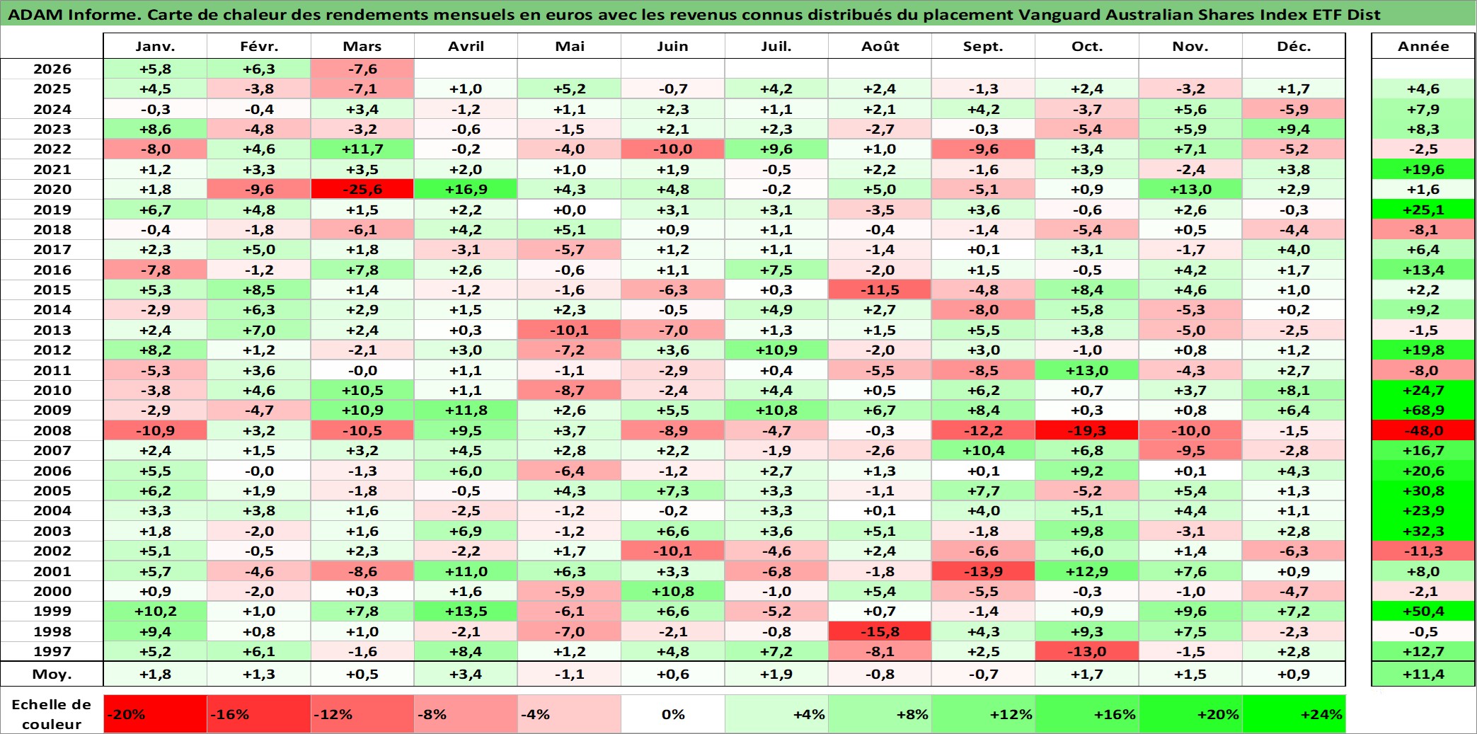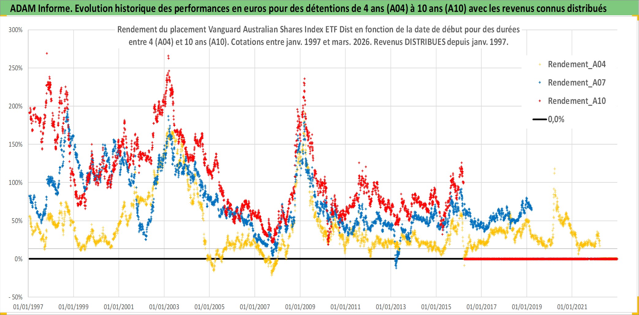 Site dédié aux investisseursPage dédiée sur site financeAnalyse des valorisations hebdomadaires du fonds Vanguard Australian Shares Index ETF Dist. Cet actif est cote en AUD. Les valorisations sont en contrevaleur EURO et couvrent les semaines 1997W01 a 2026W13. Les revenus de cet actif financier sont pris en compte depuis la semaine 1997W01. La note ESG de cet actif n'est pas connue.