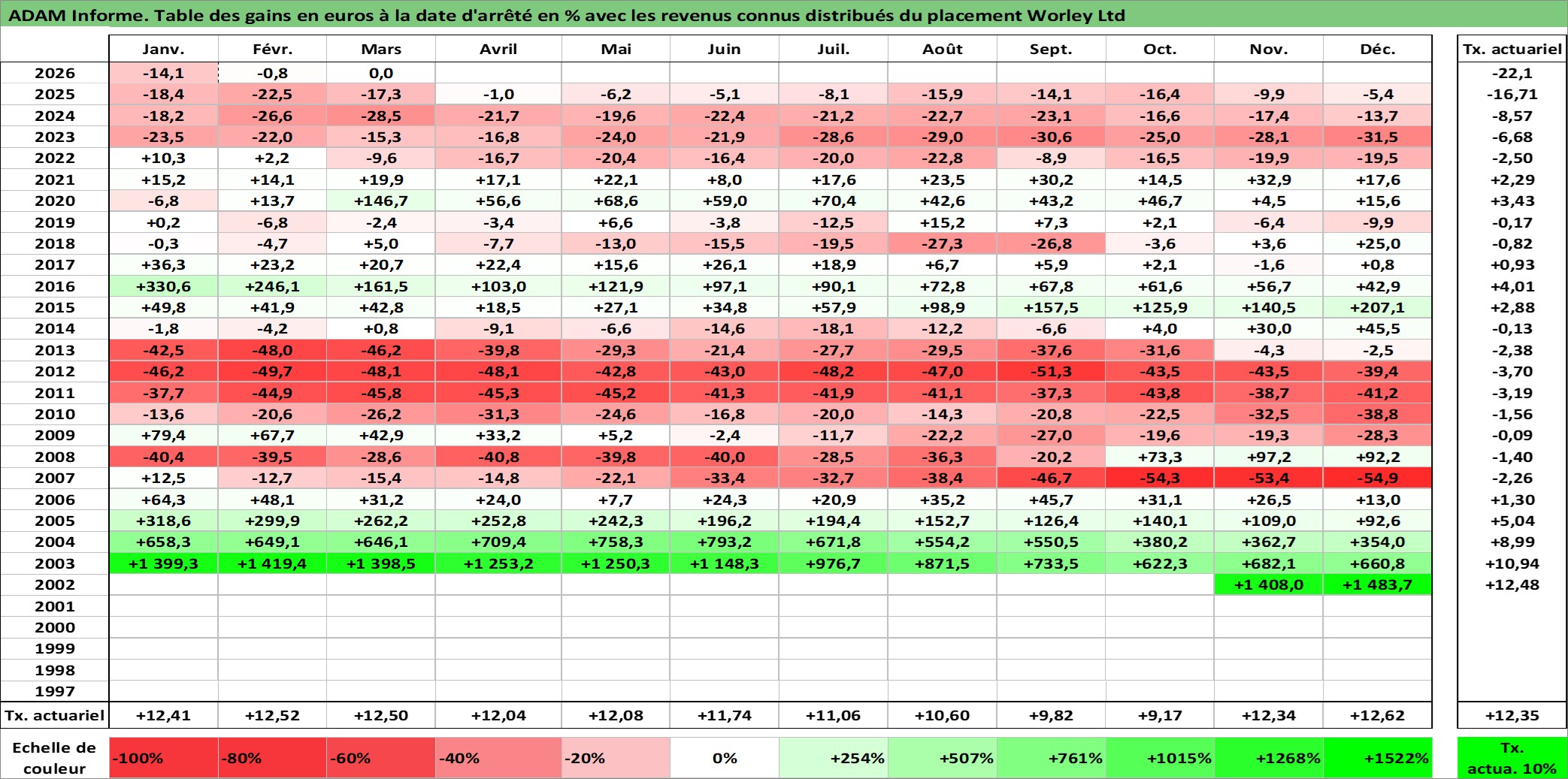 Dernière perfo 10 ans en %