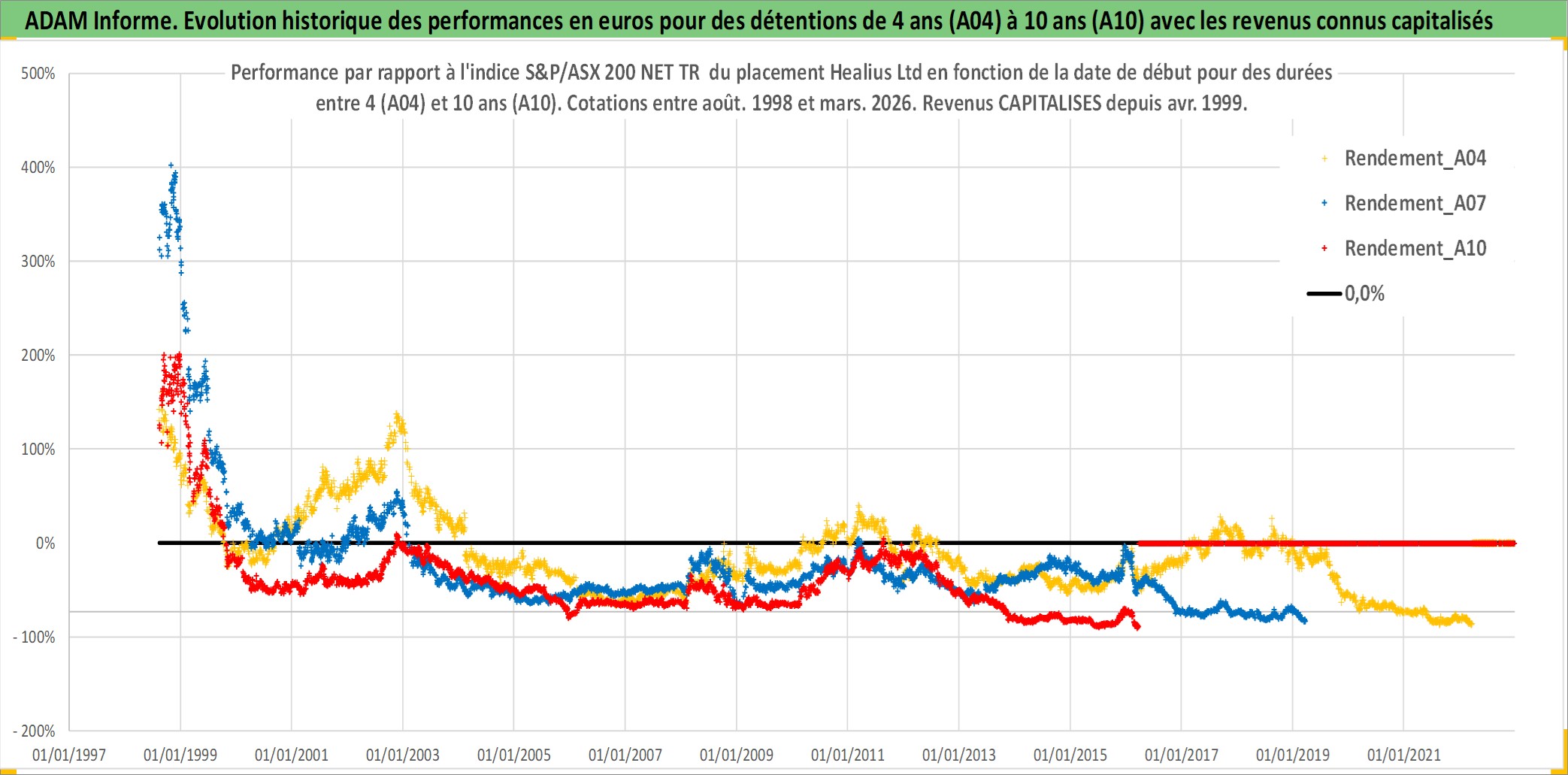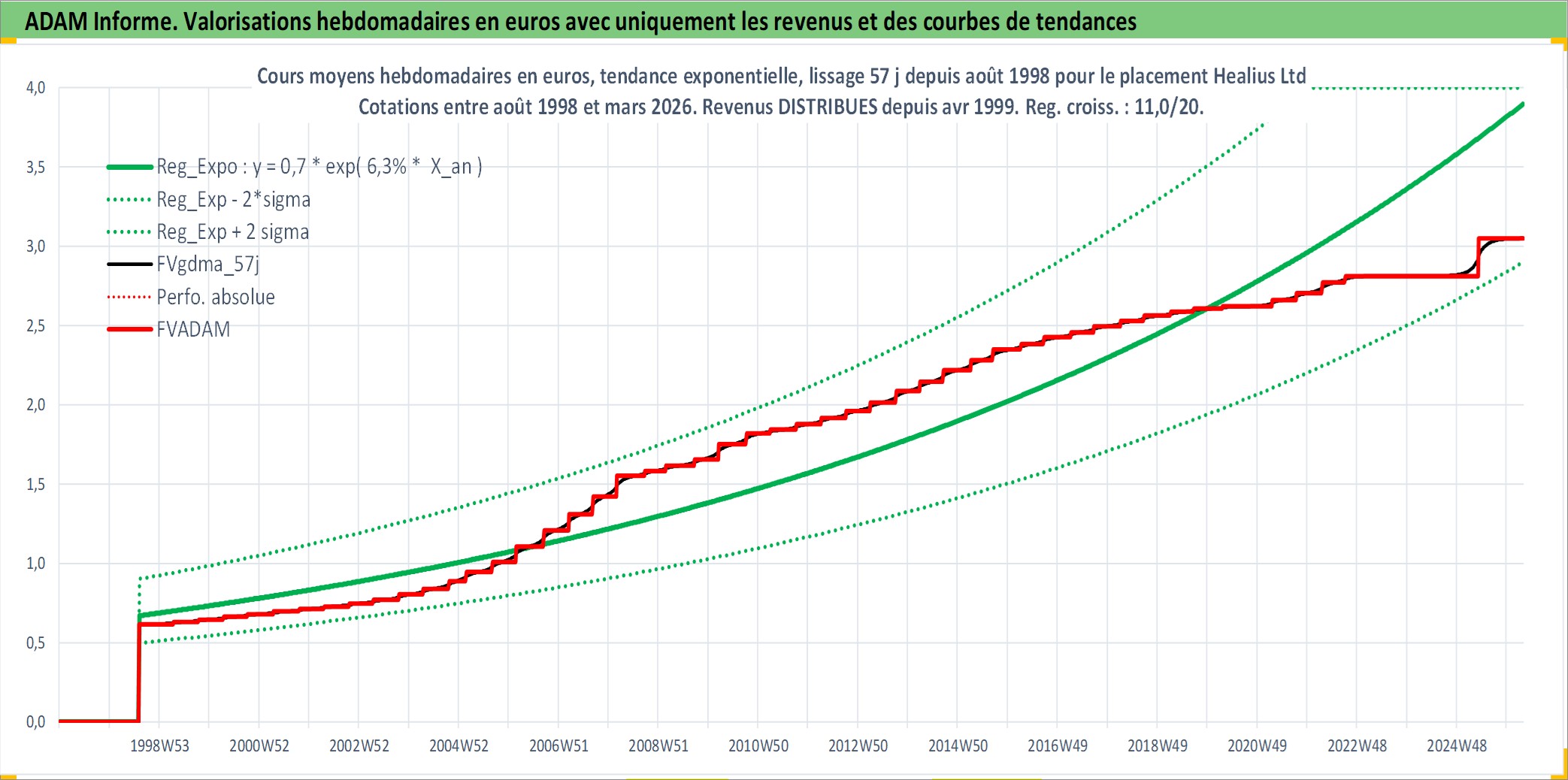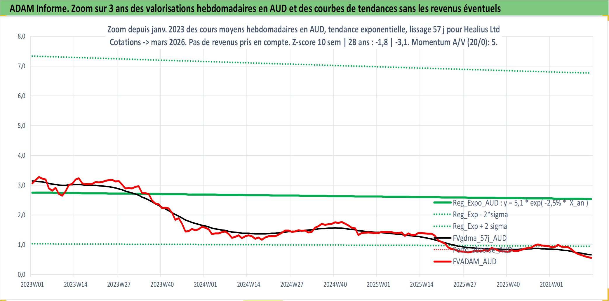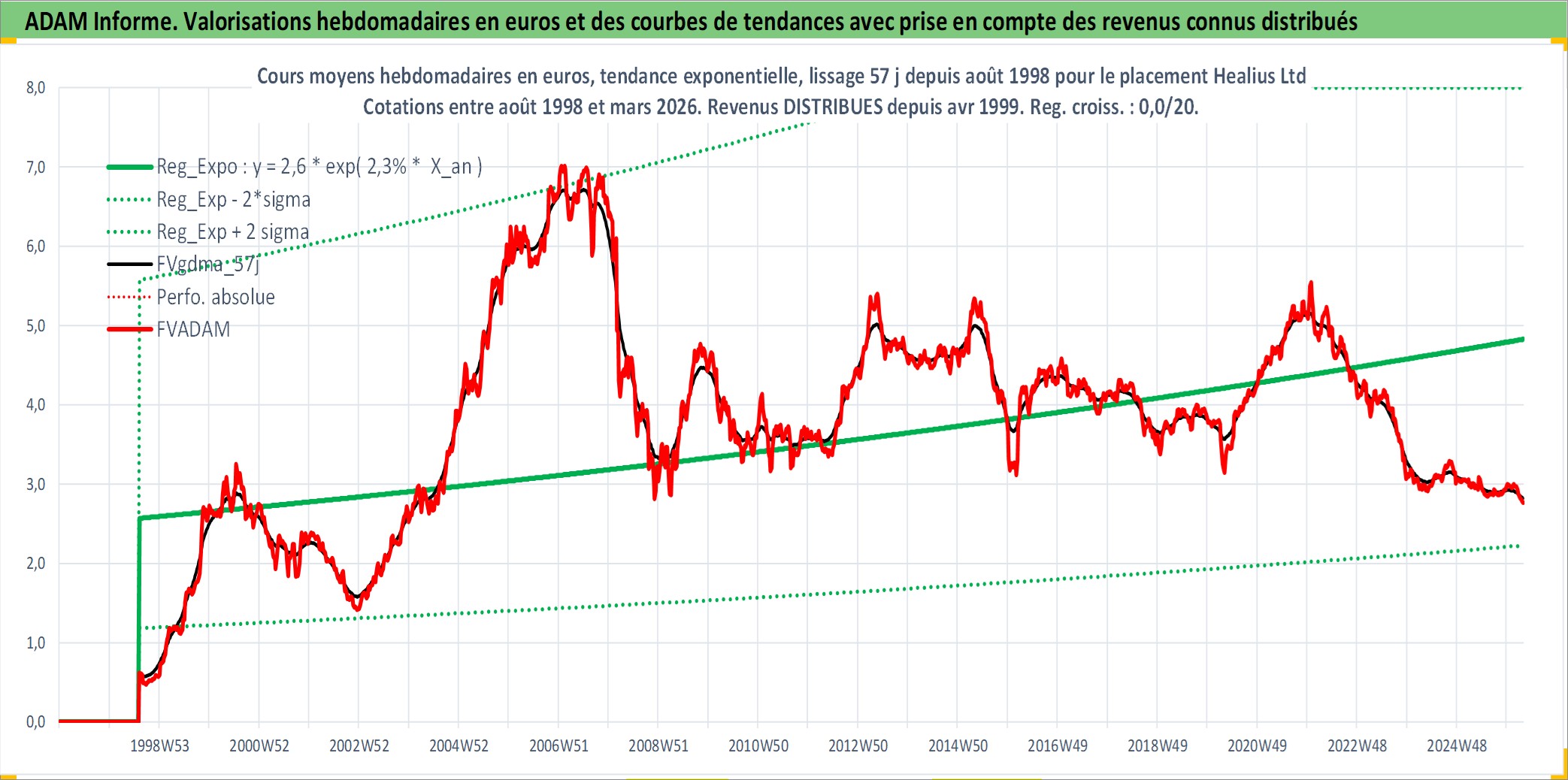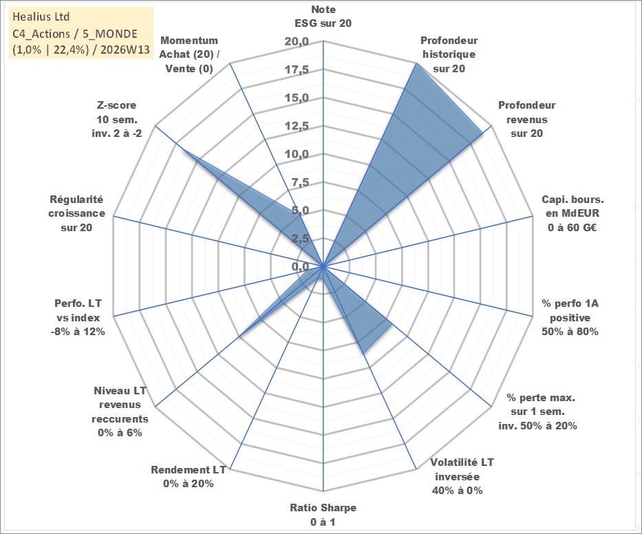 Site dédié aux investisseursPage dédiée sur site financeAnalyse des valorisations hebdomadaires de l'action Healius Ltd. Cet actif est cote en AUD. Les valorisations sont en contrevaleur EURO et couvrent les semaines 1998W32 a 2026W13. Les revenus de cet actif financier sont pris en compte depuis la semaine 1999W15. La note ESG de cet actif n'est pas connue.