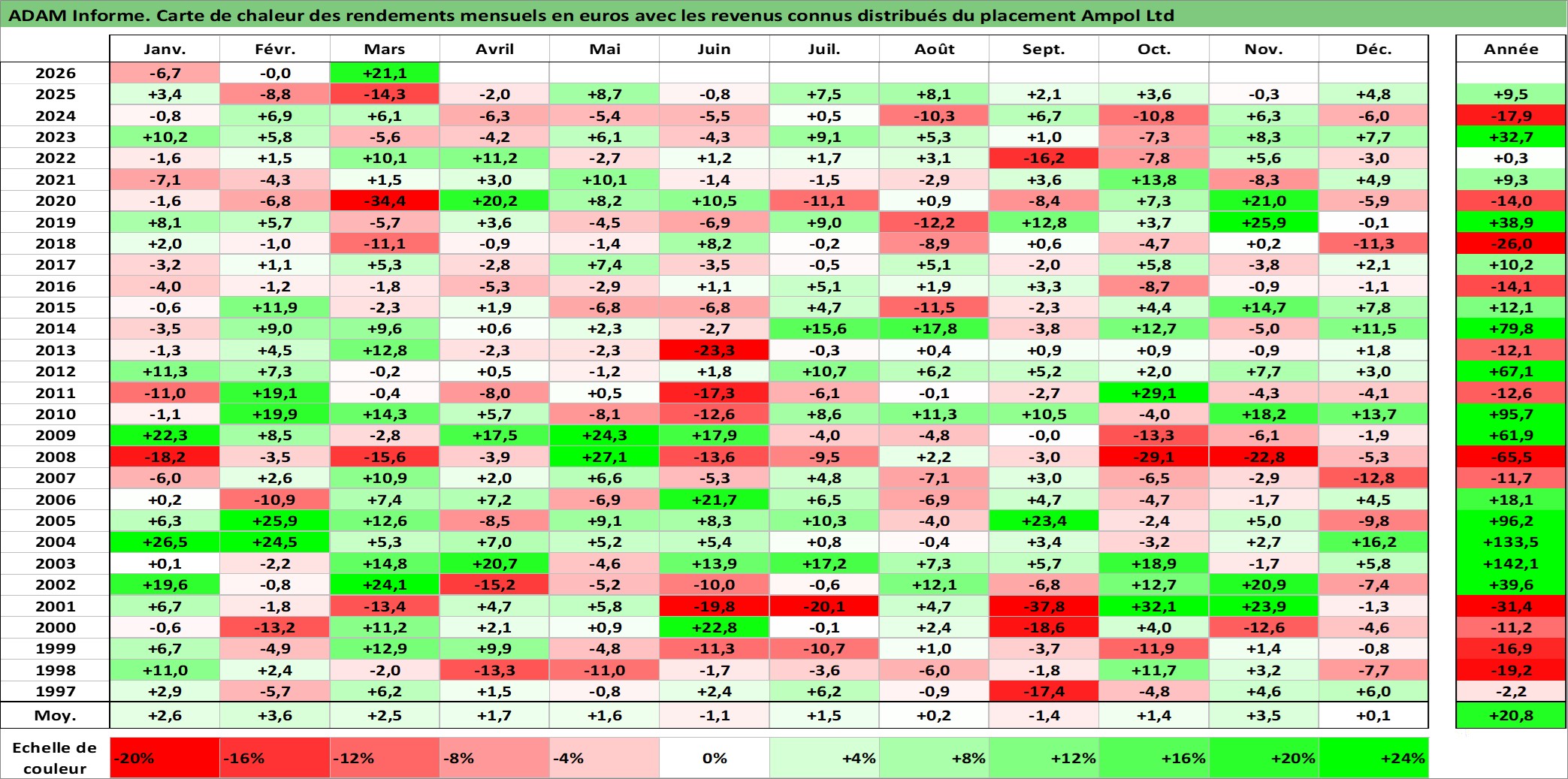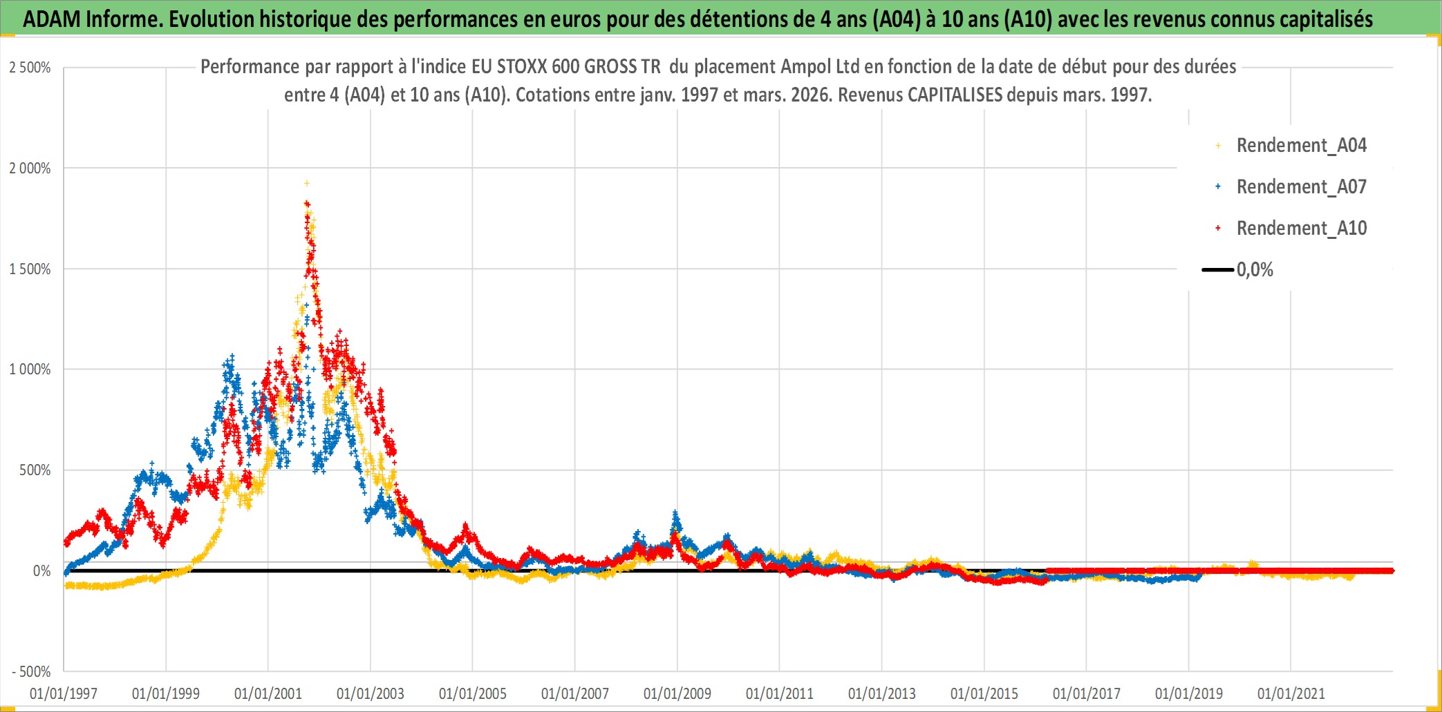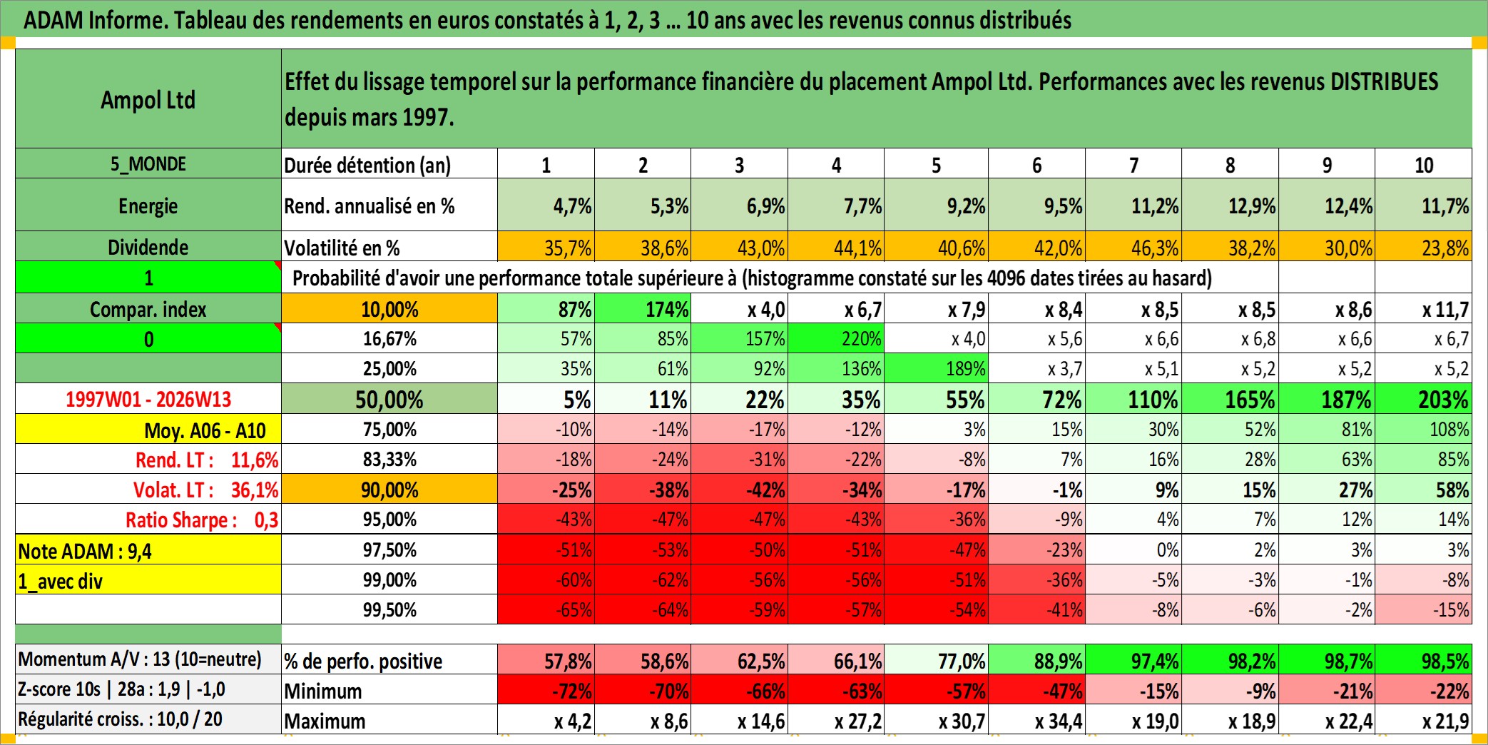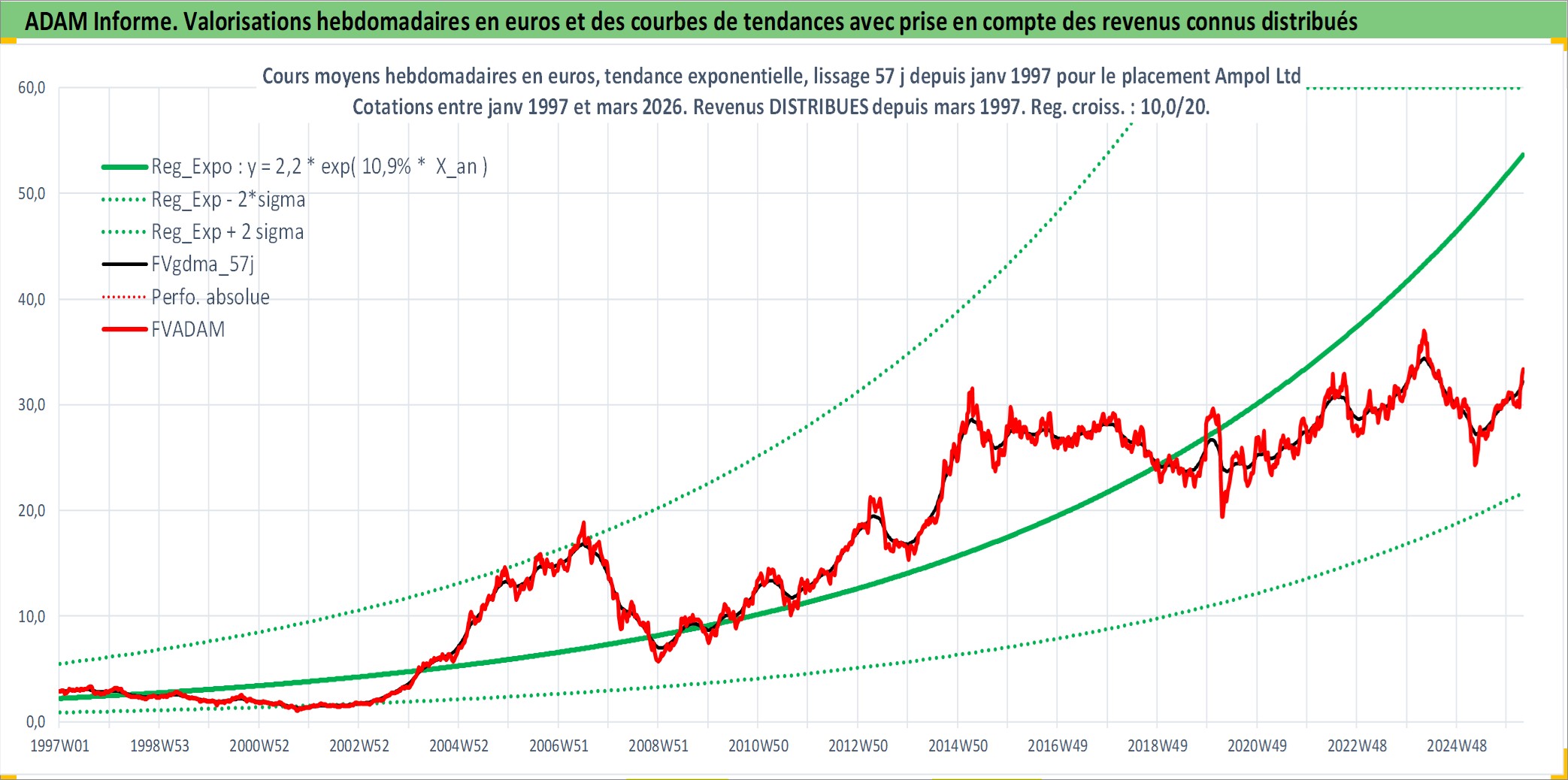 Site dédié aux investisseursPage dédiée sur site financeAnalyse des valorisations hebdomadaires de l'action Ampol Ltd. Cet actif est cote en AUD. Les valorisations sont en contrevaleur EURO et couvrent les semaines 1997W01 a 2026W13. Les revenus de cet actif financier sont pris en compte depuis la semaine 1997W11. La note globale ESG de cet actif est estimee a 4.0 (apres rebasage entre 0 et 20).