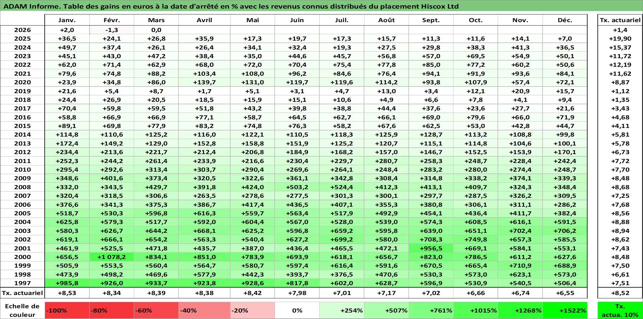 Dernière perfo 10 ans en %
