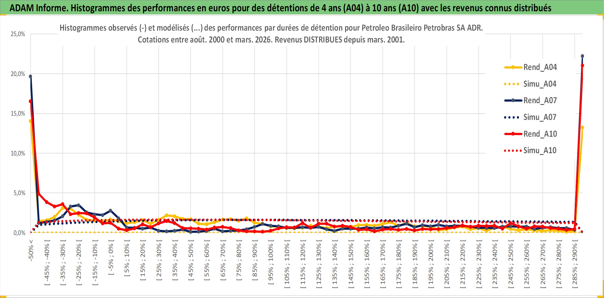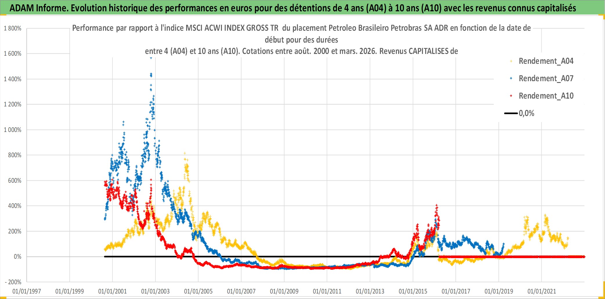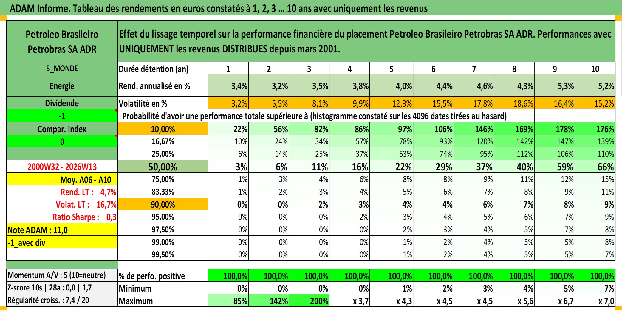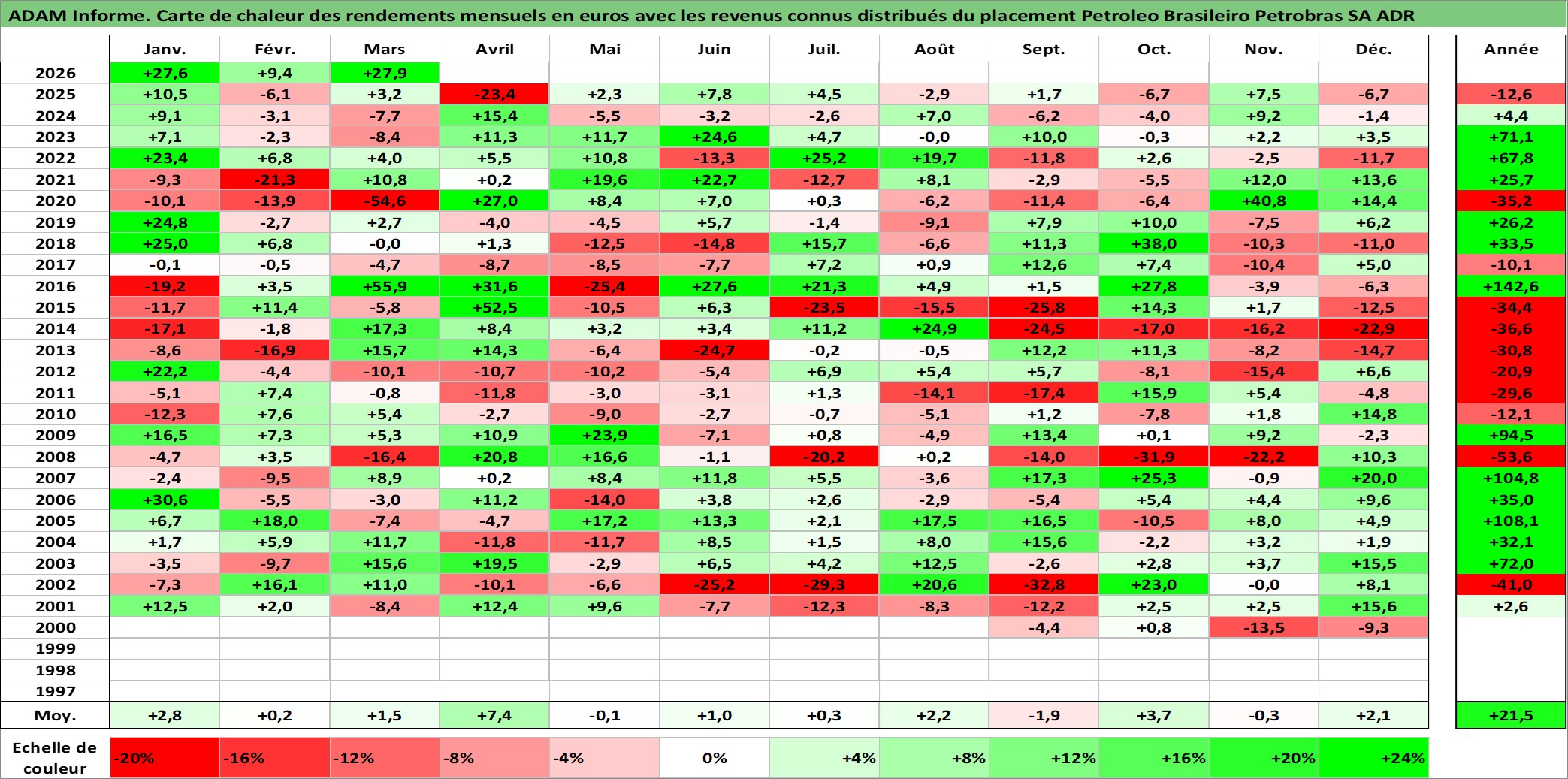 Site dédié aux investisseursPage dédiée sur site financeAnalyse des valorisations hebdomadaires de l'action Petroleo Brasileiro Petrobras SA ADR. Cet actif est cote en USD. Les valorisations sont en contrevaleur EURO et couvrent les semaines 2000W32 a 2026W13. Les revenus de cet actif financier sont pris en compte depuis la semaine 2001W12. La note ESG de cet actif n'est pas connue.