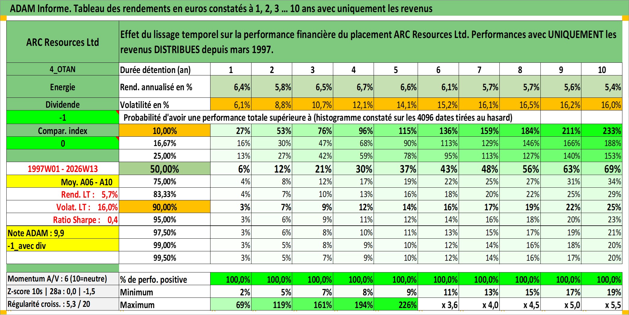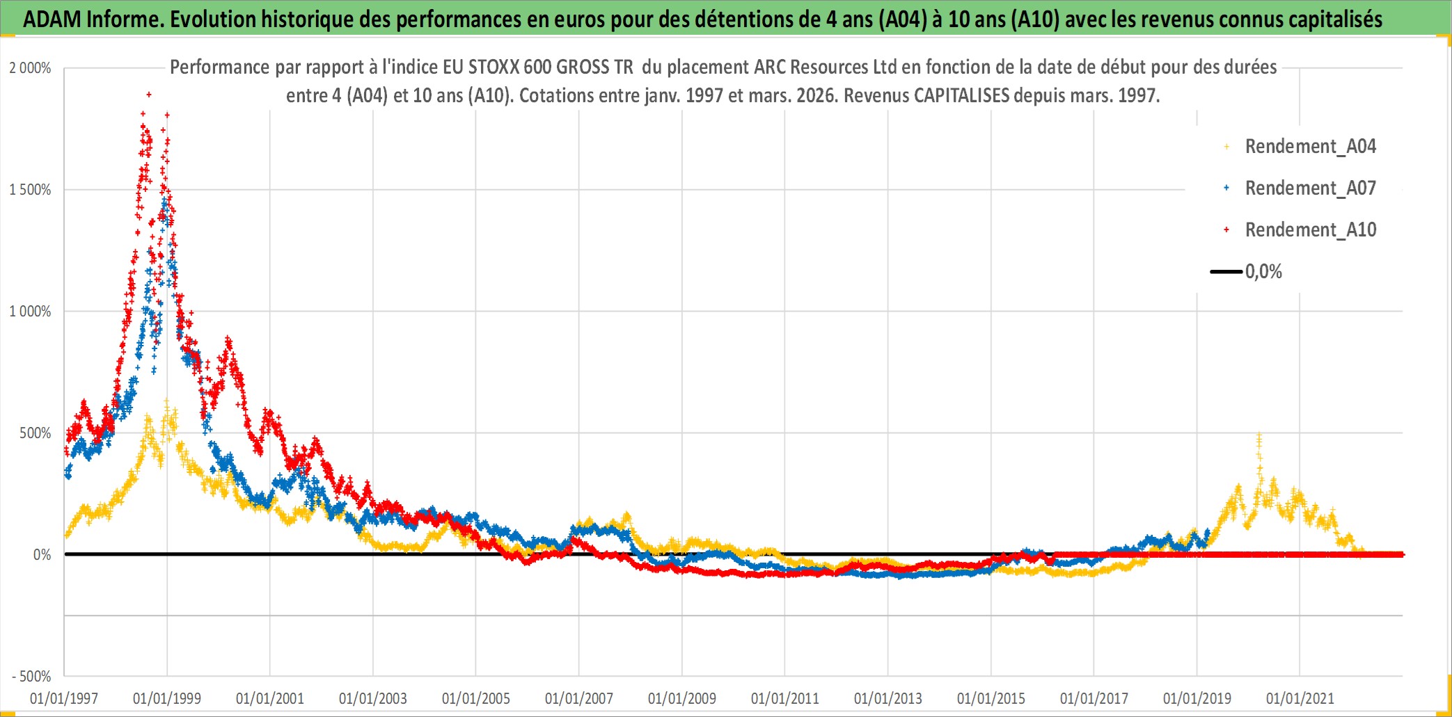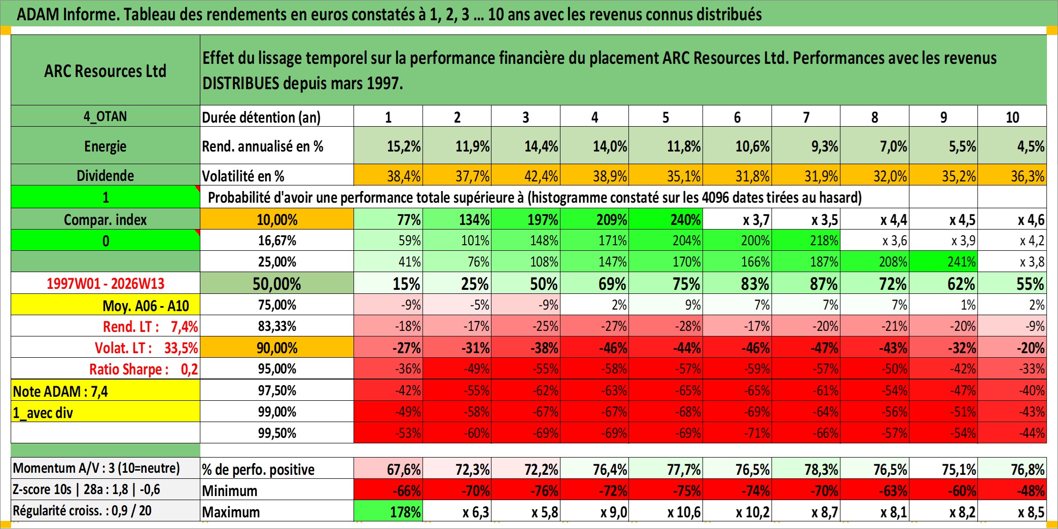 Site dédié aux investisseursPage dédiée sur site financeAnalyse des valorisations hebdomadaires de l'action ARC Resources Ltd. Cet actif est cote en CAD. Les valorisations sont en contrevaleur EURO et couvrent les semaines 1997W01 a 2026W13. Les revenus de cet actif financier sont pris en compte depuis la semaine 1997W13. La note globale ESG de cet actif est estimee a 3.0 (apres rebasage entre 0 et 20).