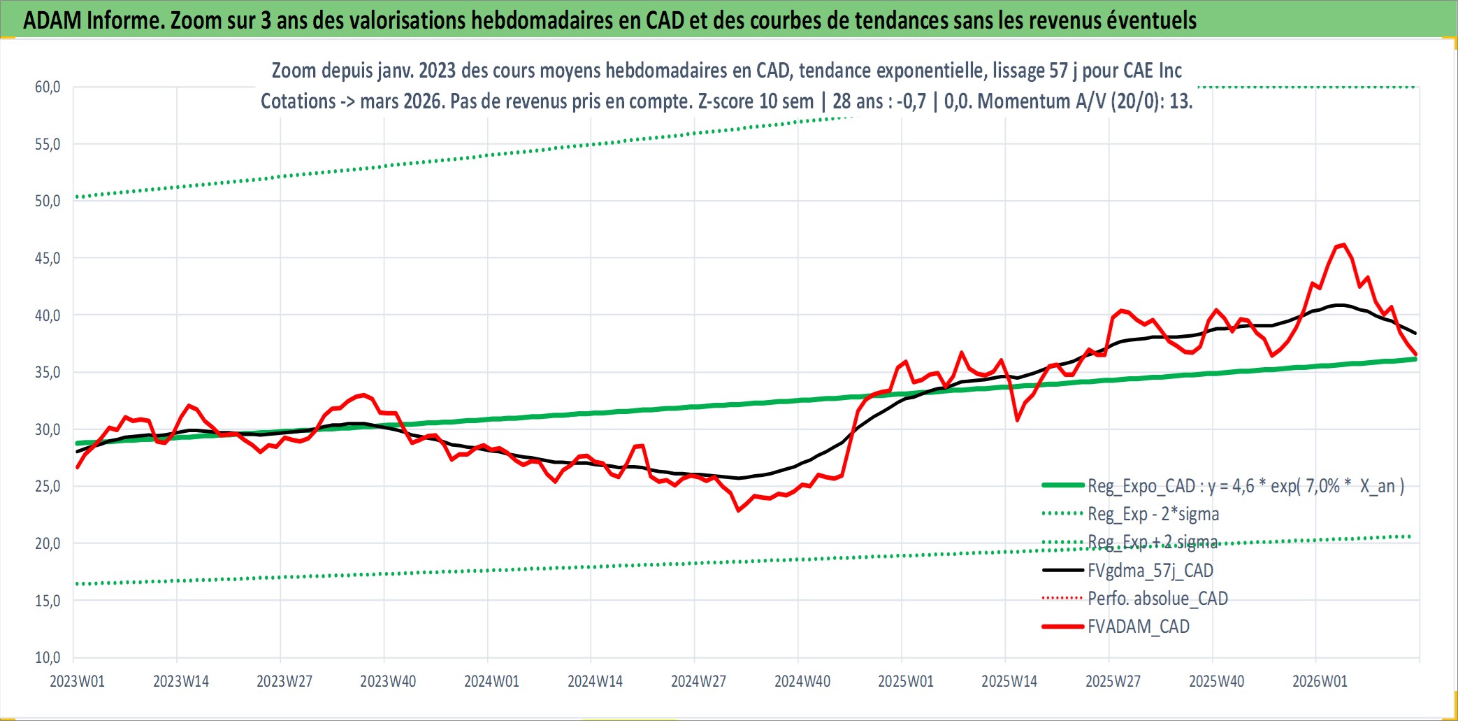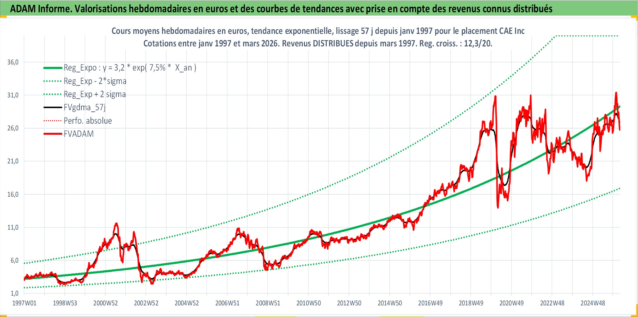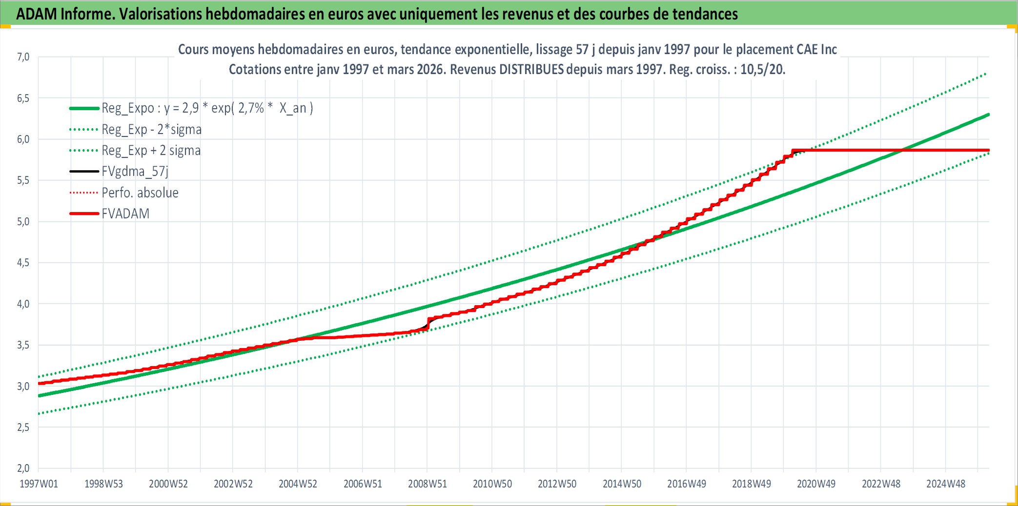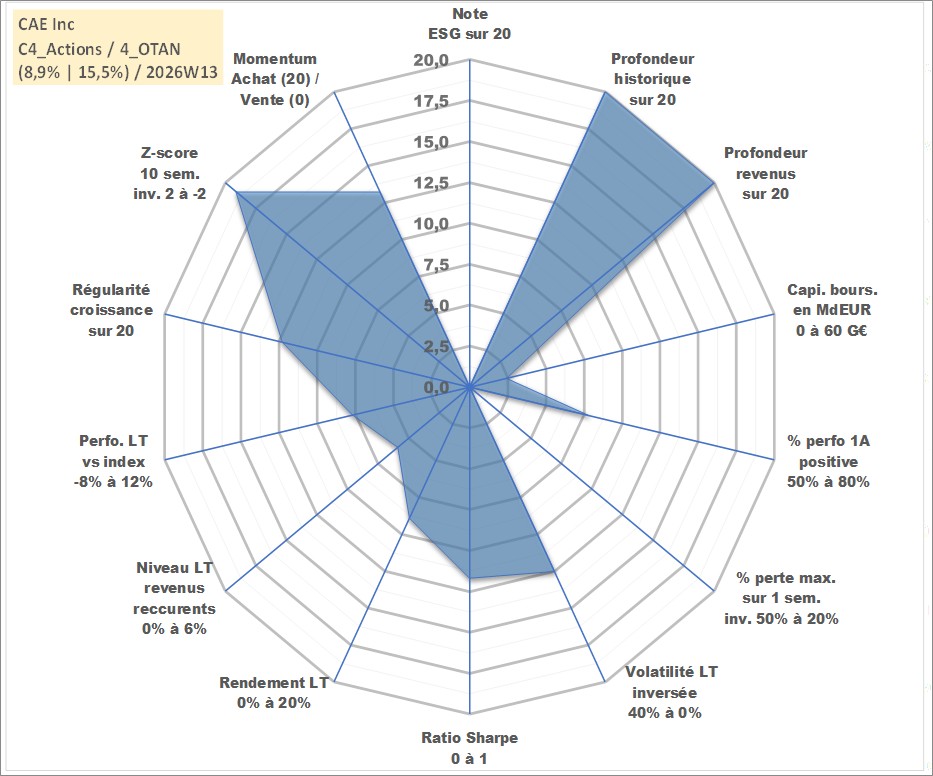 Site dédié aux investisseursPage dédiée sur site financeAnalyse des valorisations hebdomadaires de l'action CAE Inc. Cet actif est cote en CAD. Les valorisations sont en contrevaleur EURO et couvrent les semaines 1997W01 a 2026W13. Les revenus de cet actif financier sont pris en compte depuis la semaine 1997W11. La note ESG de cet actif n'est pas connue.