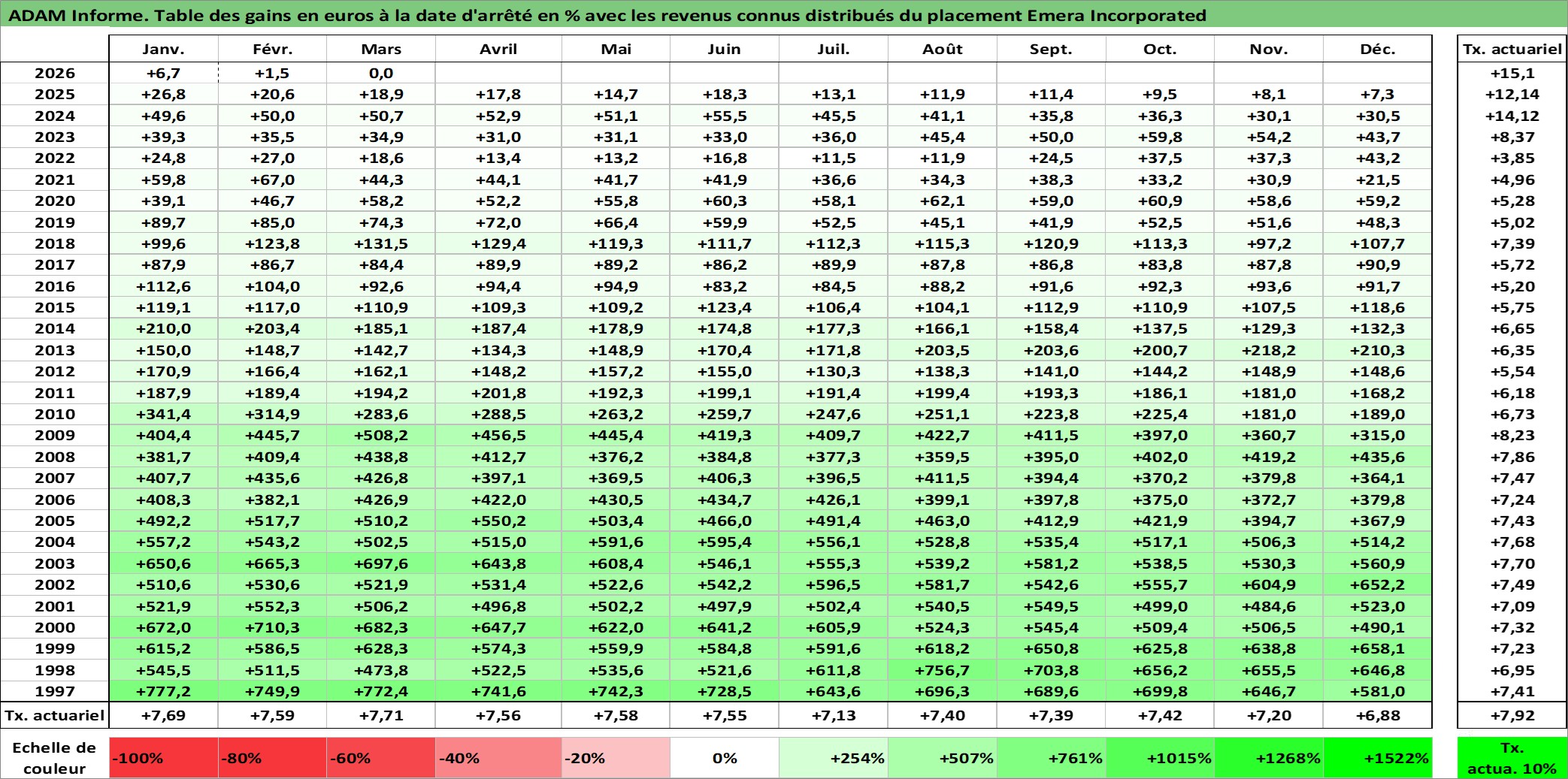 Dernière perfo 10 ans en %