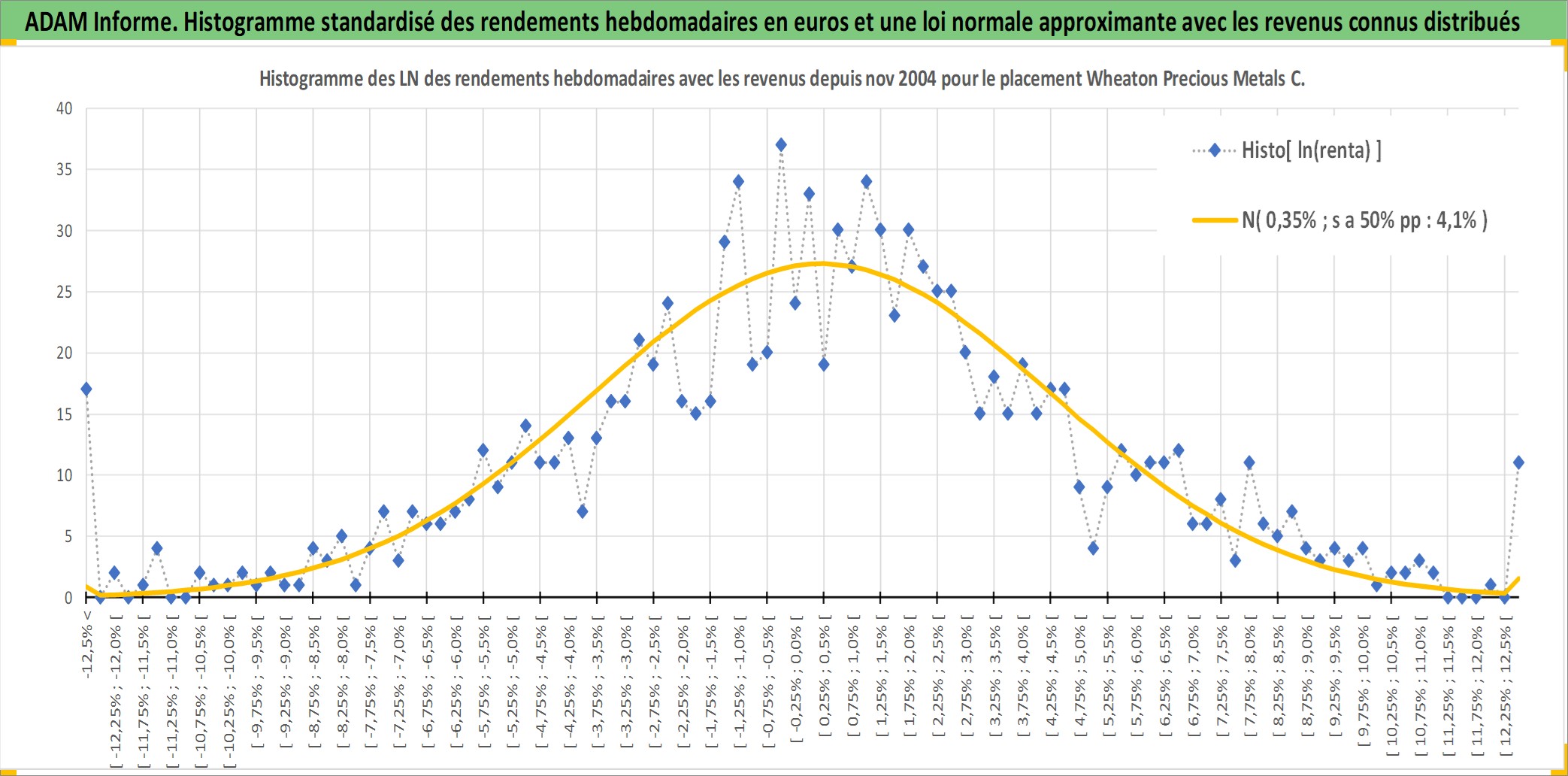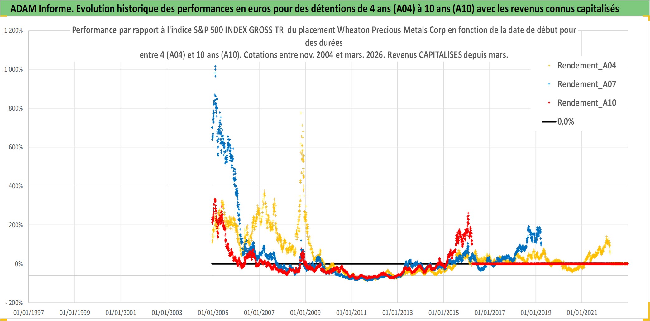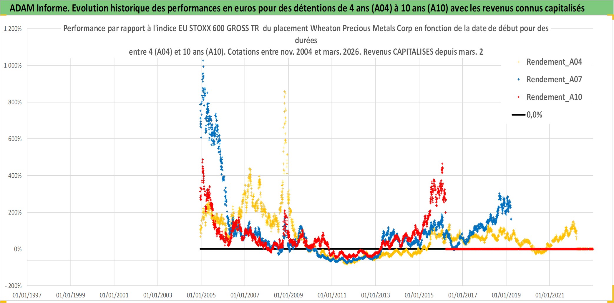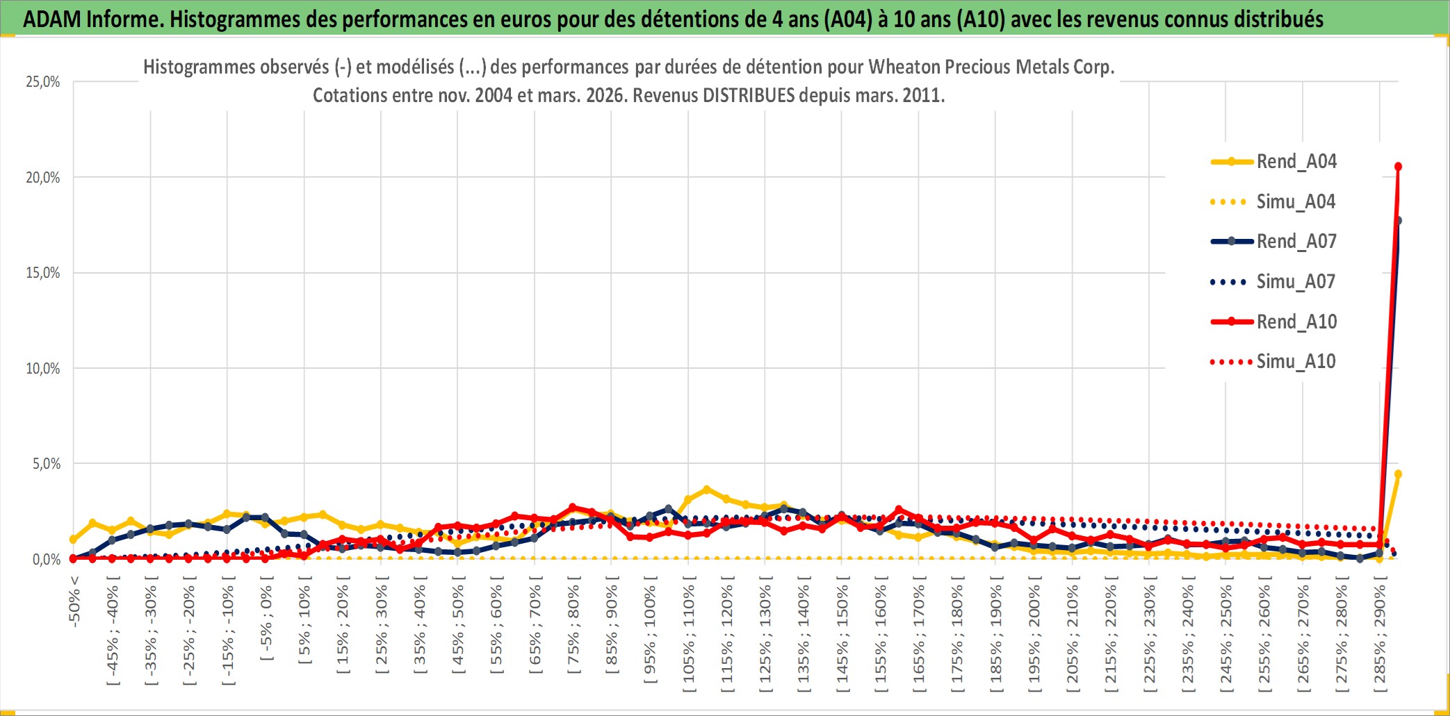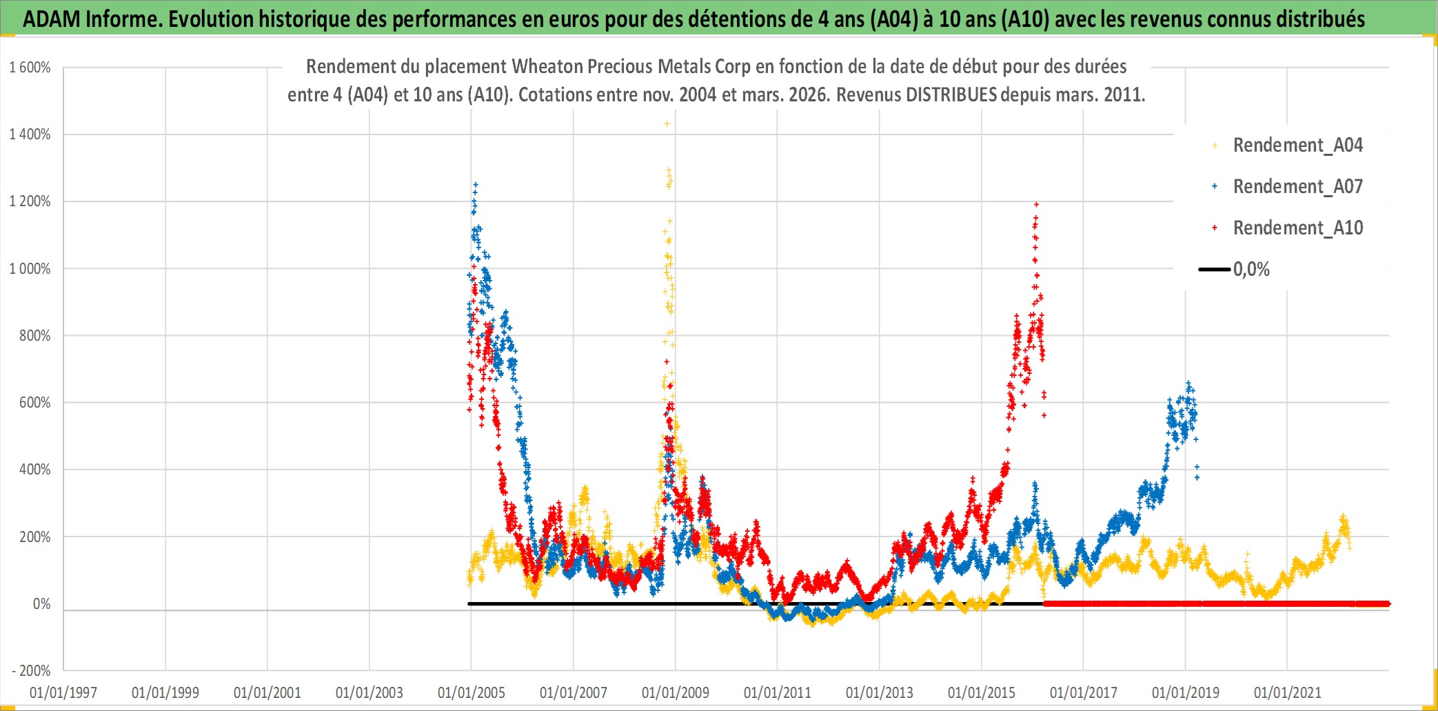 Site dédié aux investisseursPage dédiée sur site financeAnalyse des valorisations hebdomadaires de l'action Wheaton Precious Metals Corp. Cet actif est cote en CAD. Les valorisations sont en contrevaleur EURO et couvrent les semaines 2004W49 a 2026W13. Les revenus de cet actif financier sont pris en compte depuis la semaine 2011W11. La note globale ESG de cet actif est estimee a 19.0 (apres rebasage entre 0 et 20).
