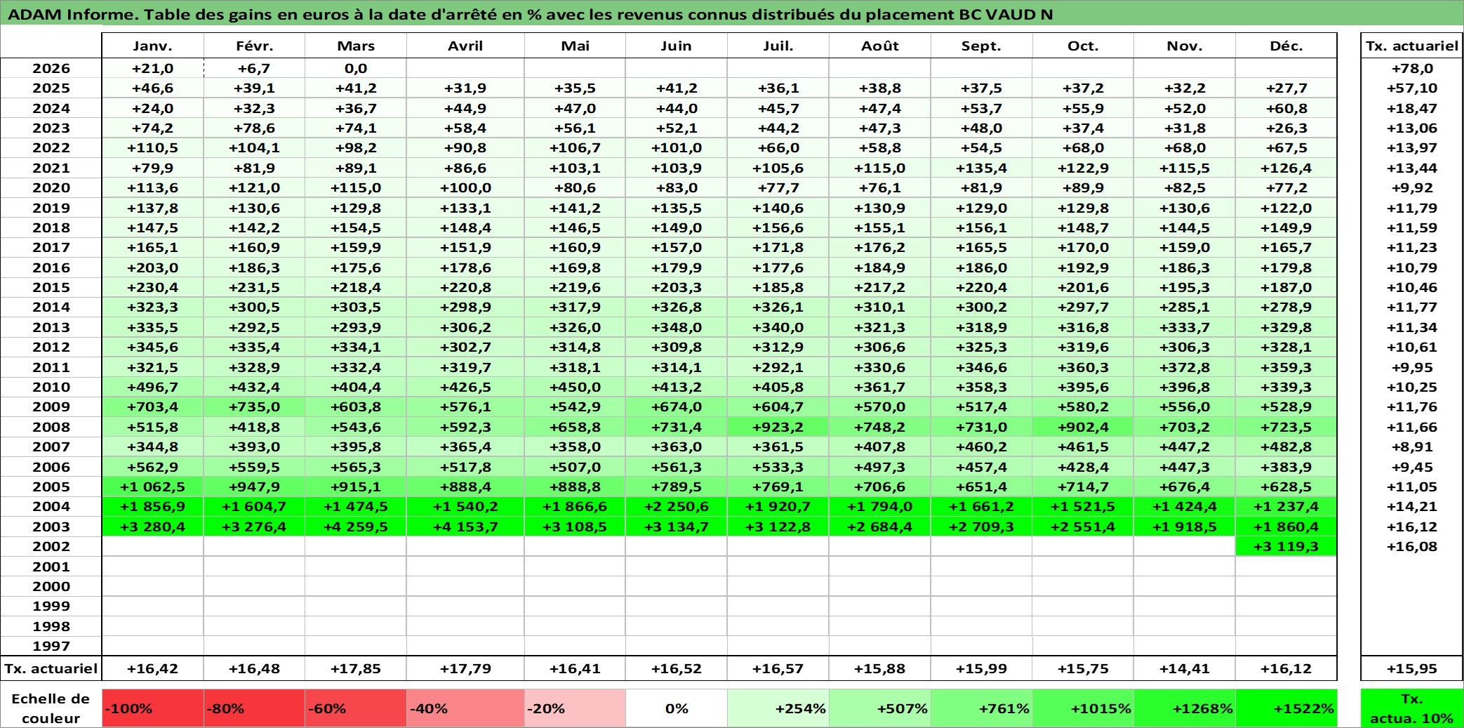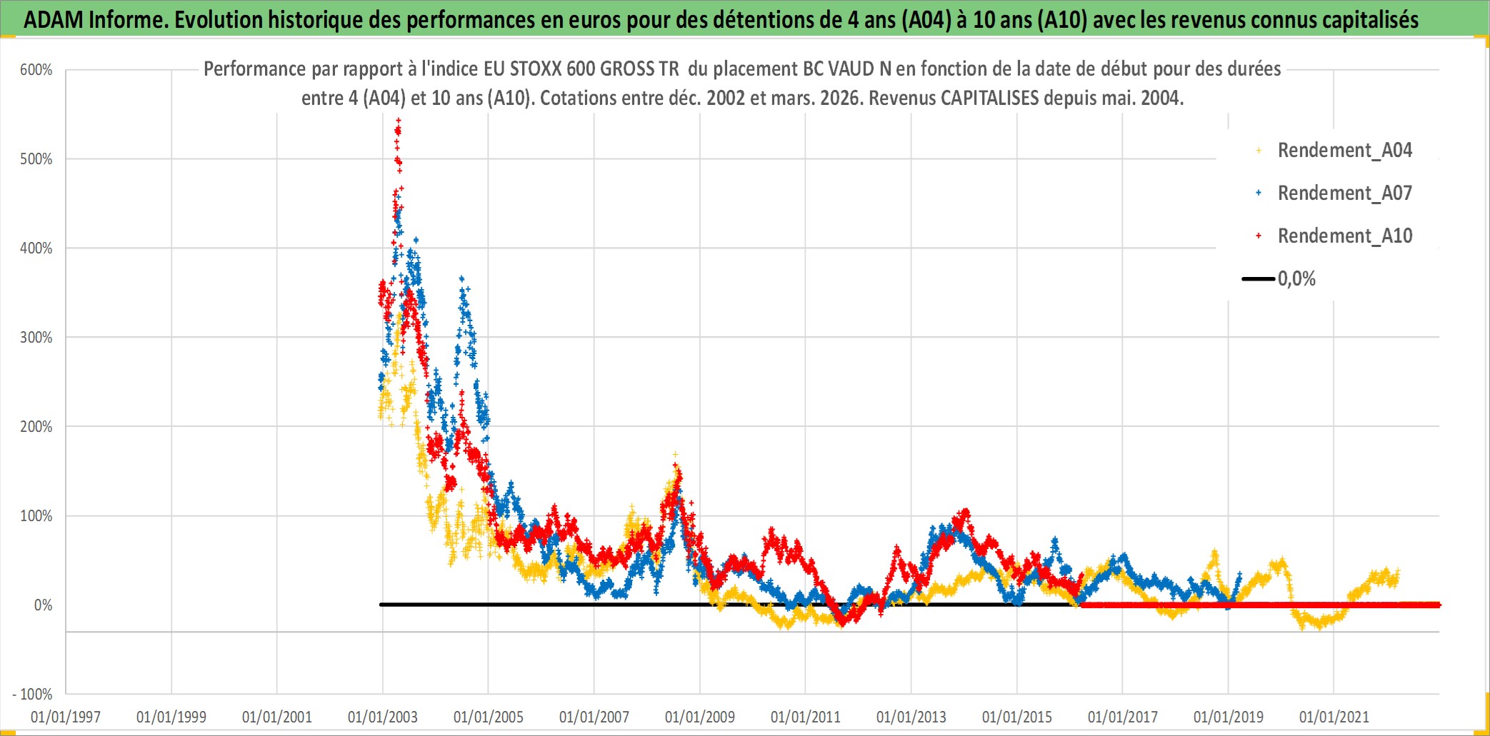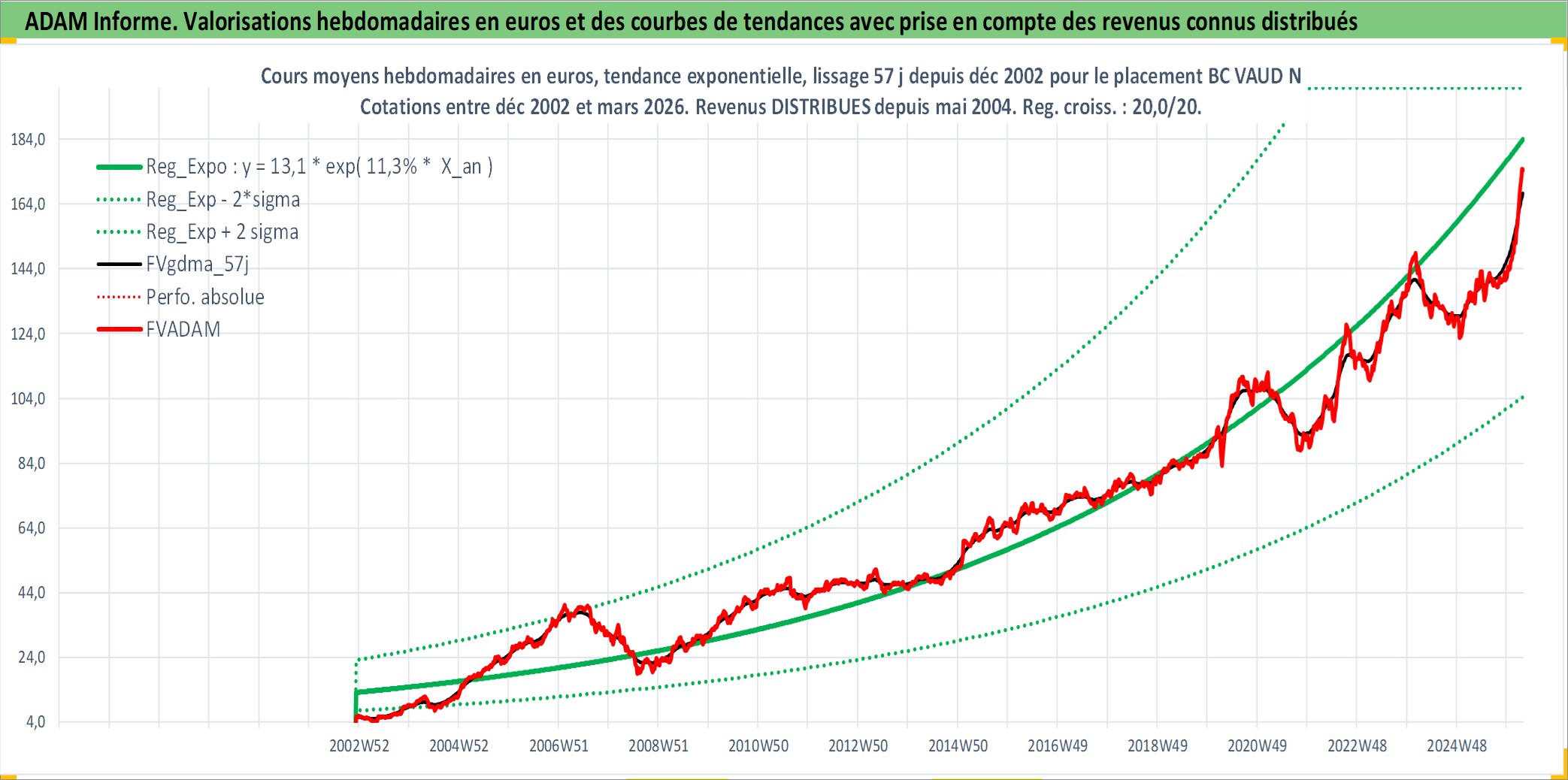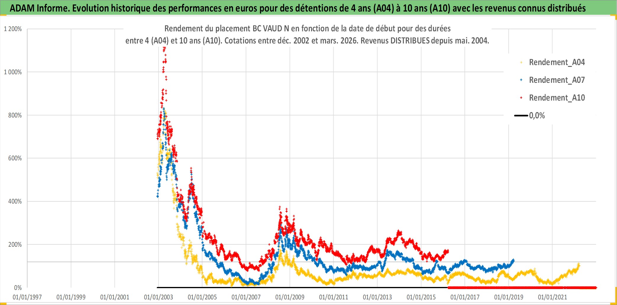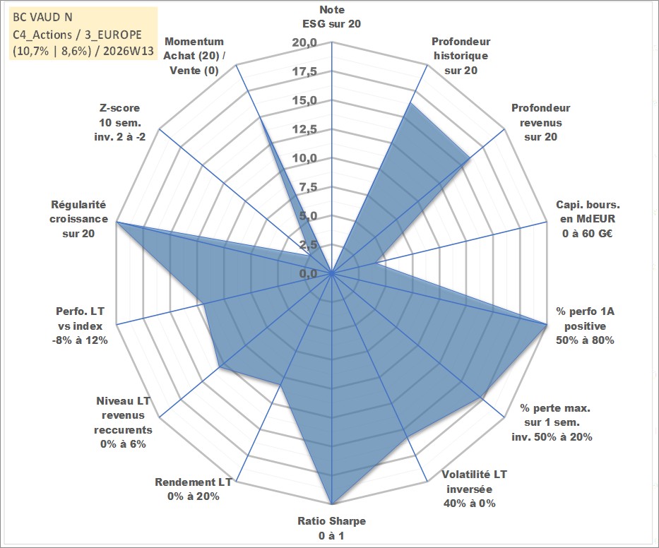 Site dédié aux investisseursPage dédiée sur site financeAnalyse des valorisations hebdomadaires de l'action BC VAUD N. Cet actif est cote en CHF. Les valorisations sont en contrevaleur EURO et couvrent les semaines 2002W49 a 2026W13. Les revenus de cet actif financier sont pris en compte depuis la semaine 2004W19. La note ESG de cet actif n'est pas connue.