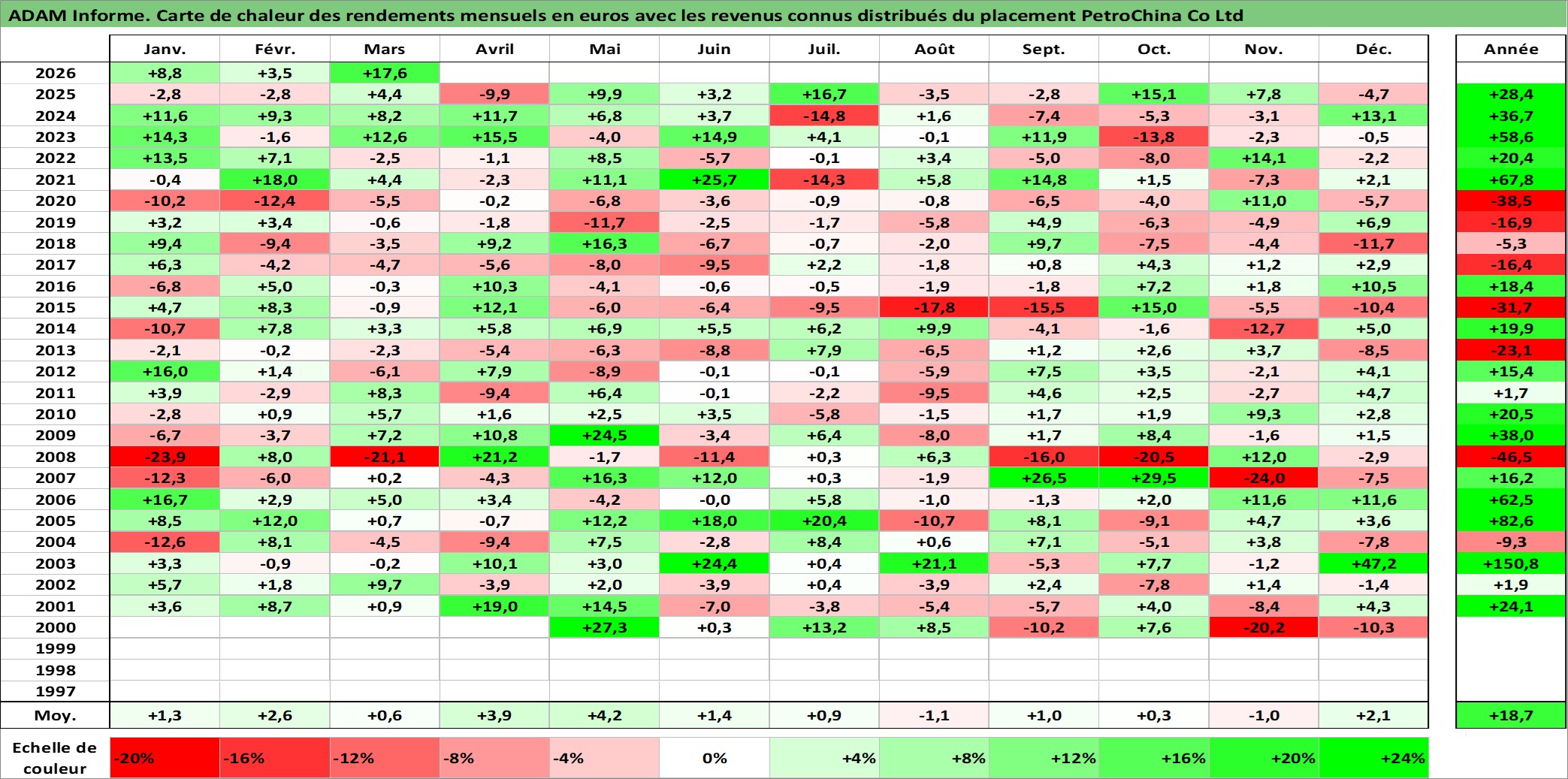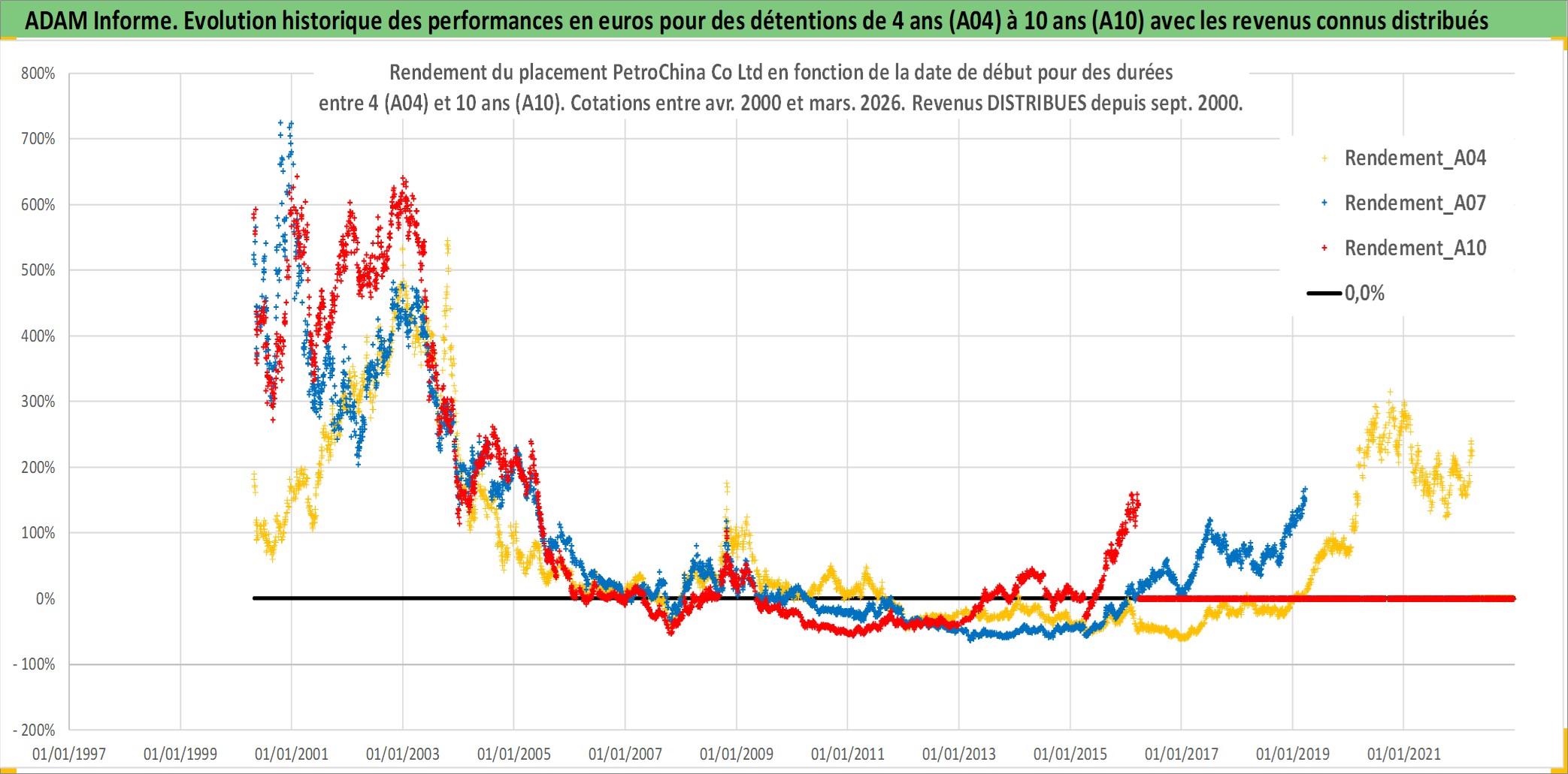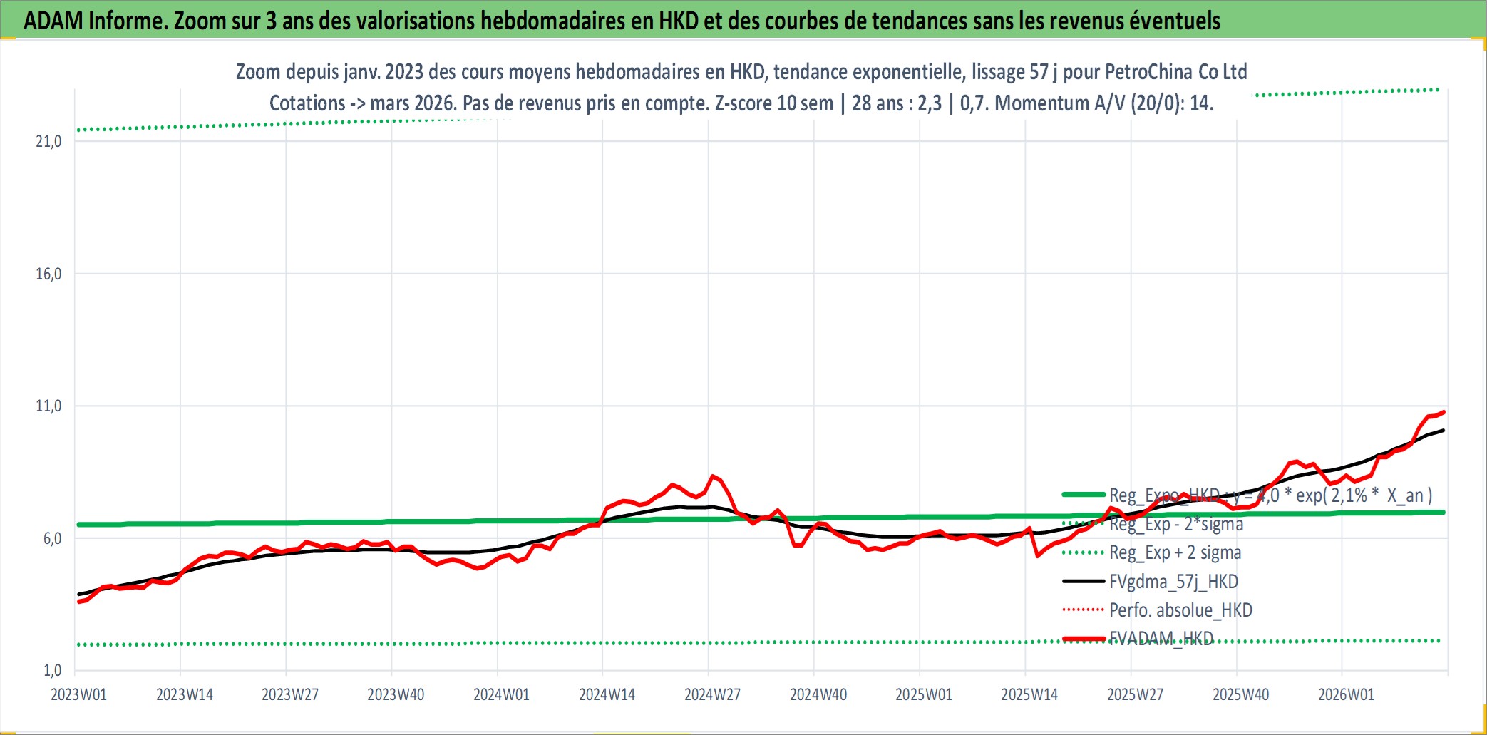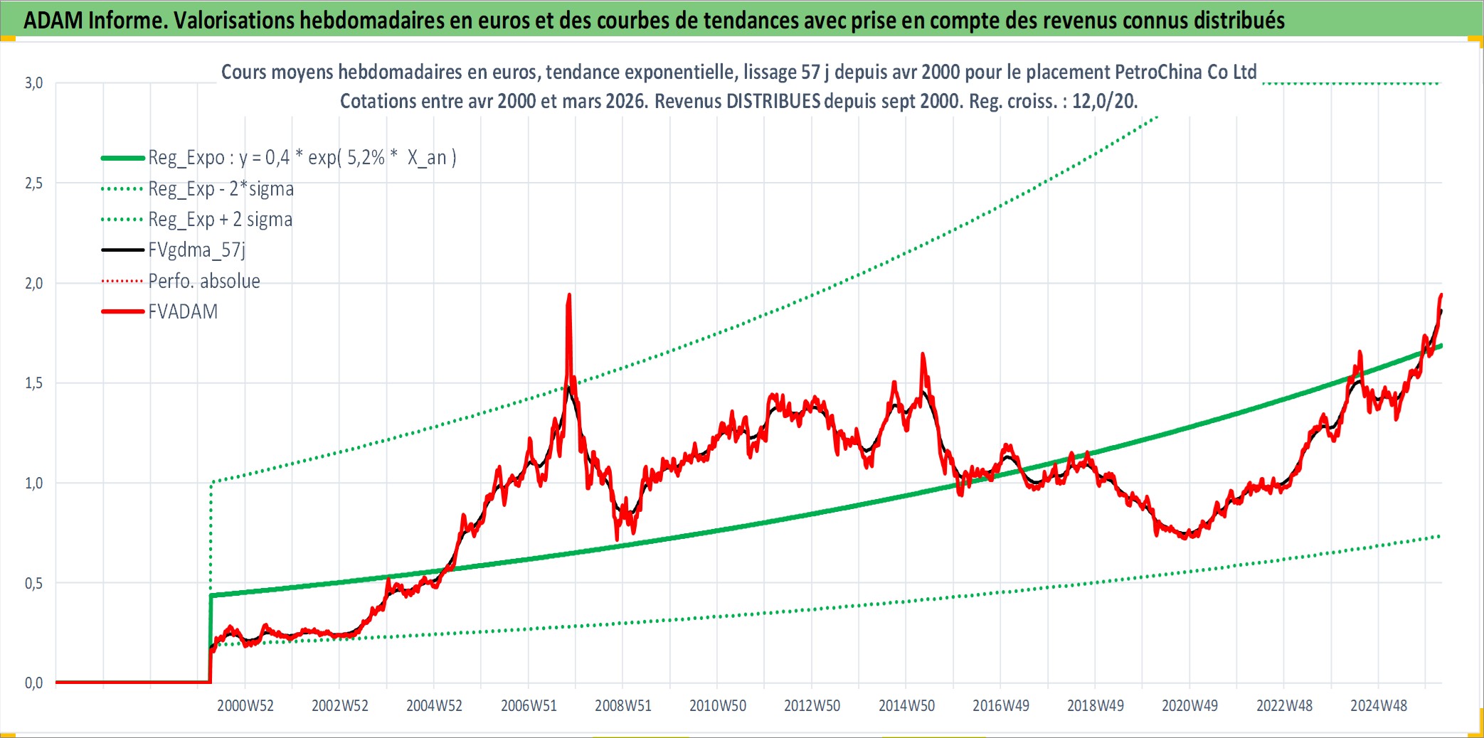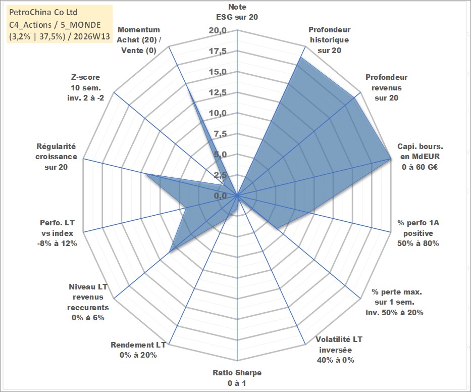 Site dédié aux investisseursPage dédiée sur site financeAnalyse des valorisations hebdomadaires de l'action PetroChina Co Ltd. Cet actif est cote en HKD. Les valorisations sont en contrevaleur EURO et couvrent les semaines 2000W14 a 2026W13. Les revenus de cet actif financier sont pris en compte depuis la semaine 2000W37. La note ESG de cet actif n'est pas connue.