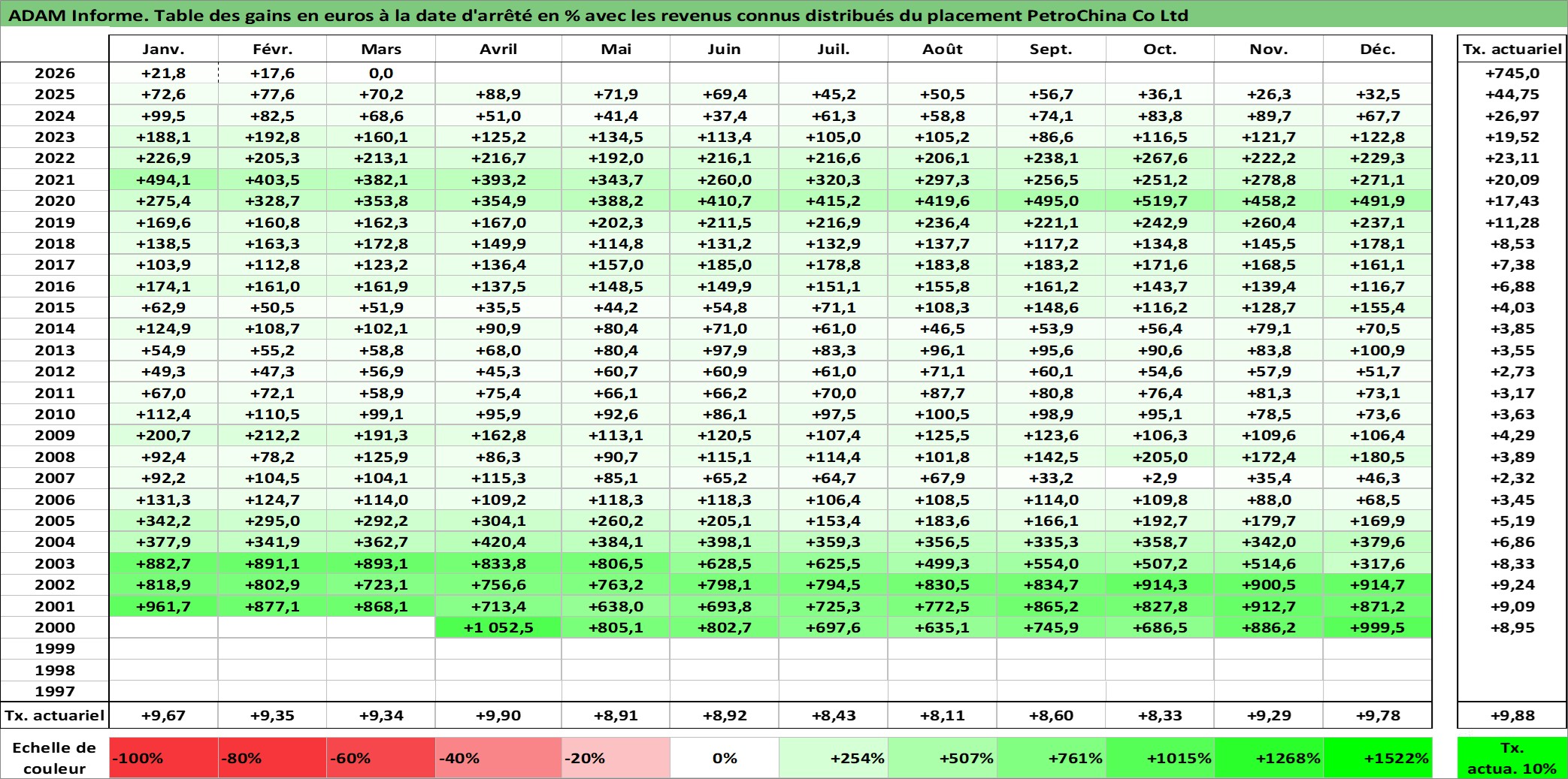 Dernière perfo 10 ans en %
