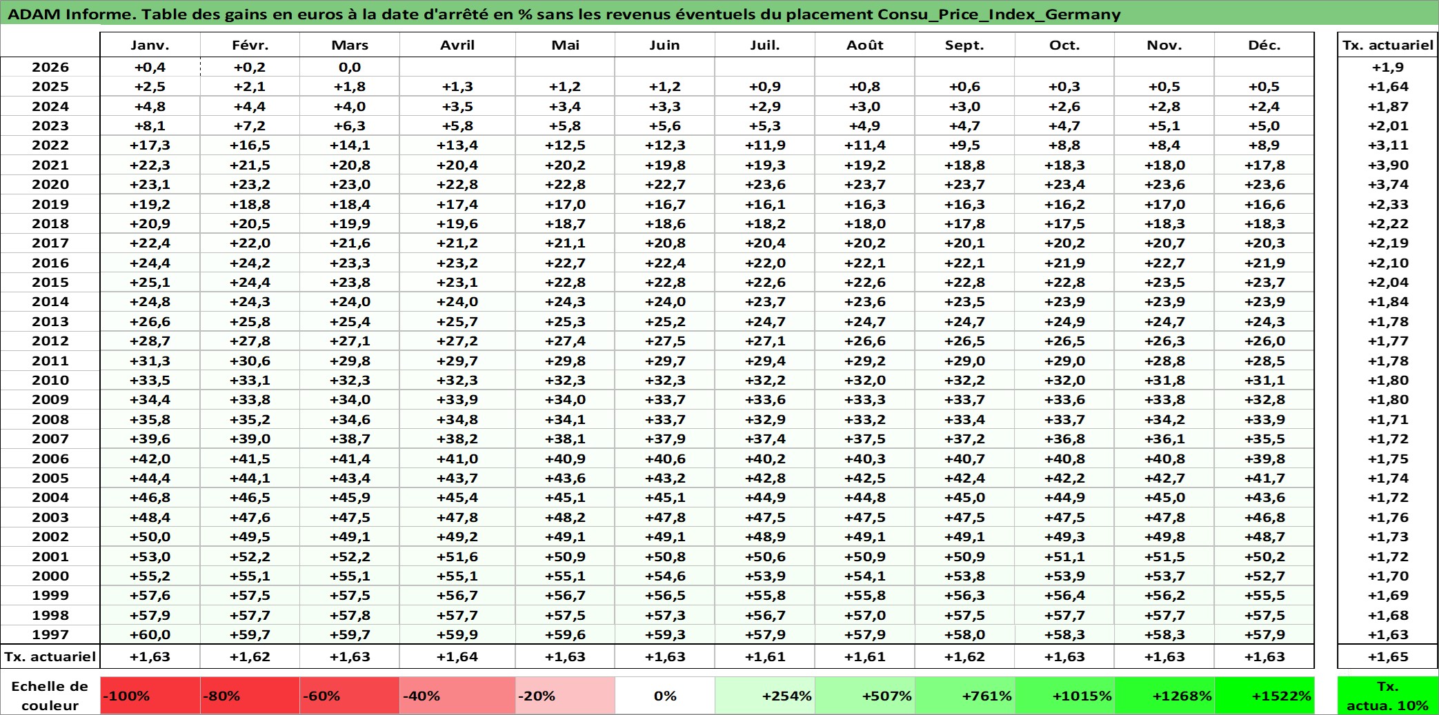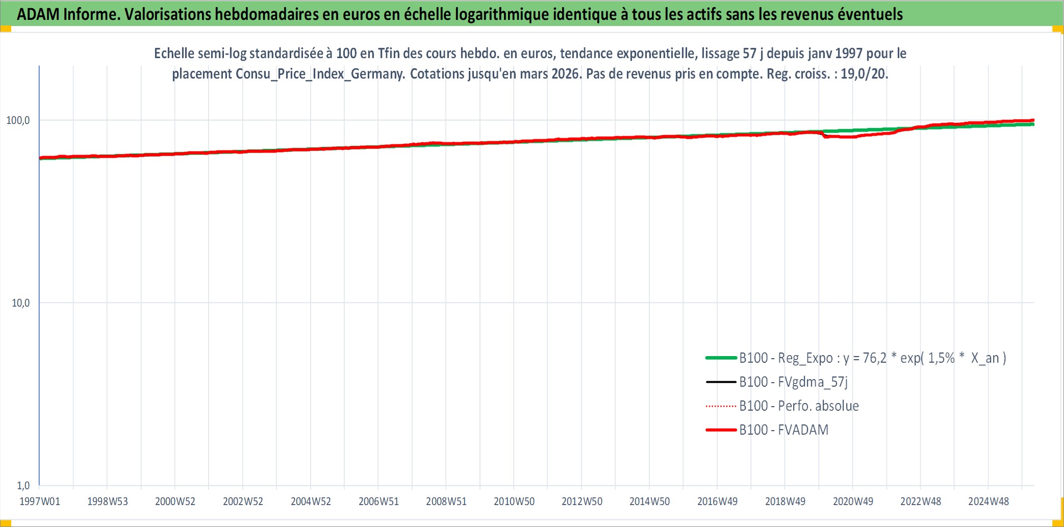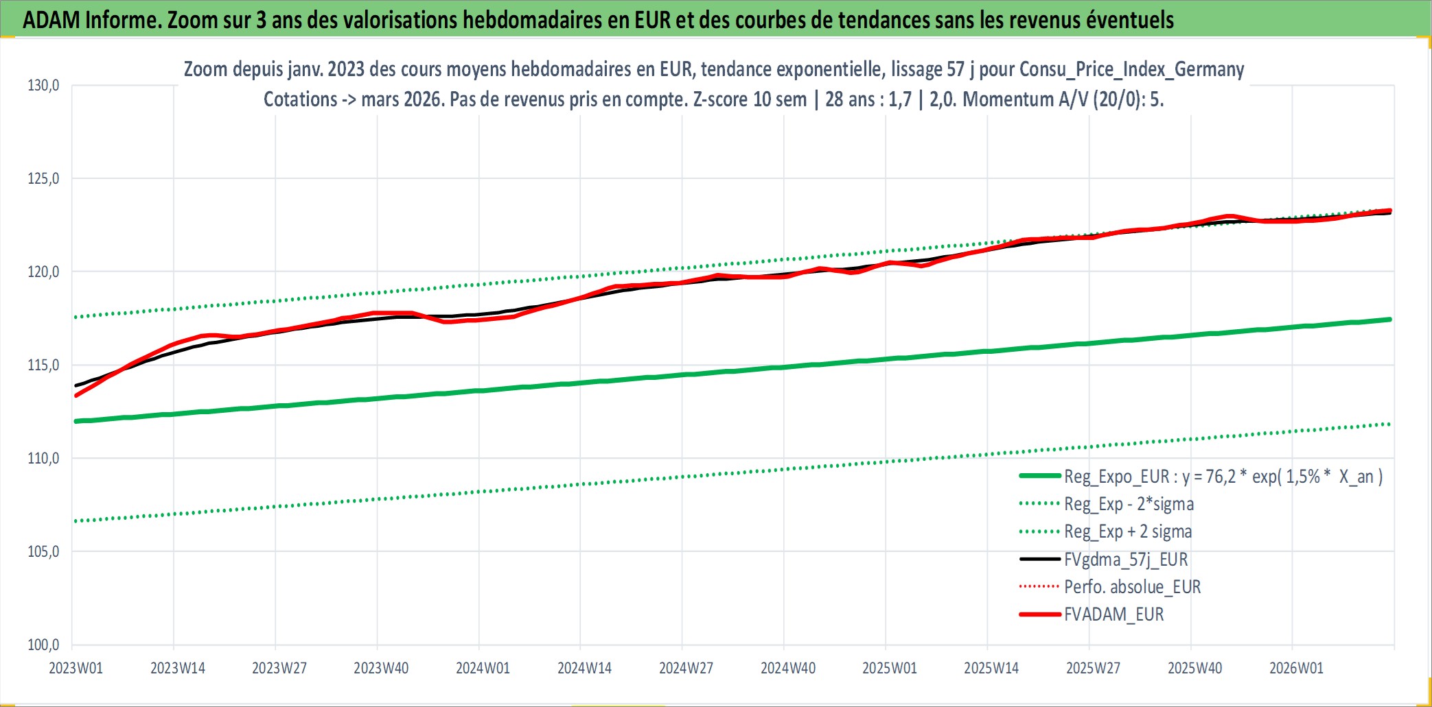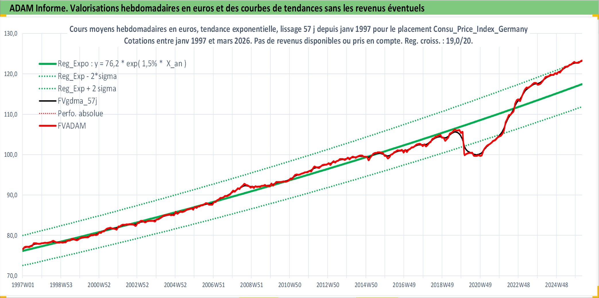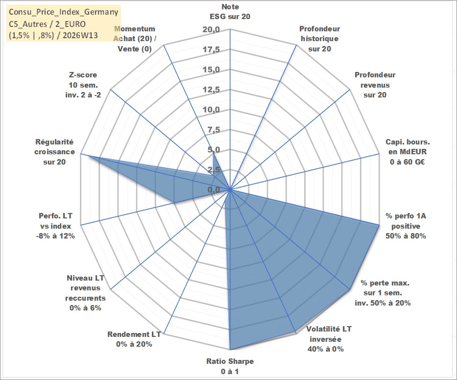 Site dédié aux investisseursPage dédiée sur site financeAnalyse des valorisations hebdomadaires de l'action Consu_Price_Index_Germany. Cet actif est cote en EUR. Les valorisations couvrent les semaines 1997W01 a 2026W13. Les revenus de cet actif financier ne sont pas connus car non existants ou non disponibles sur le site Yahoo Finance. La note ESG de cet actif n'est pas connue.