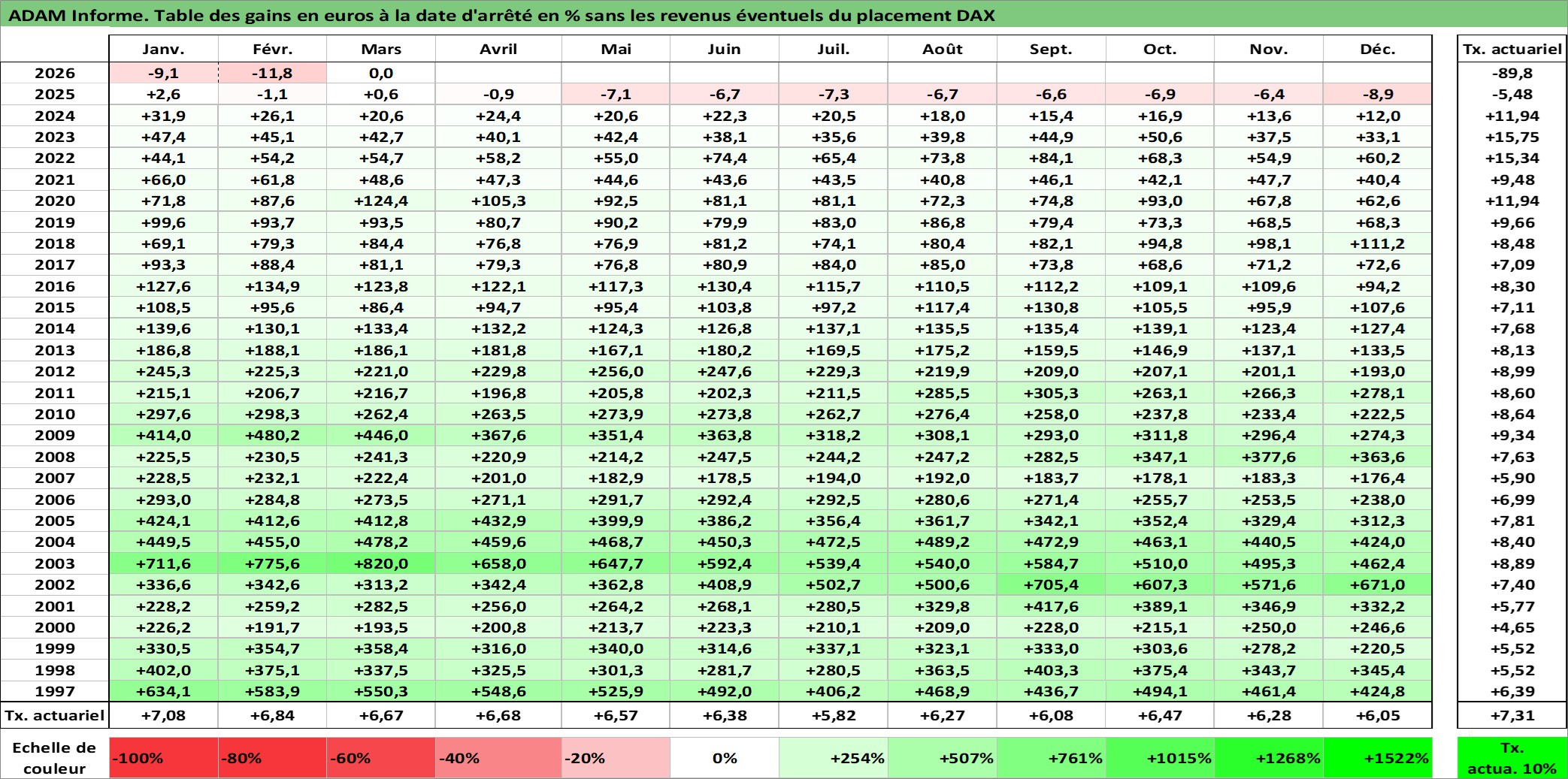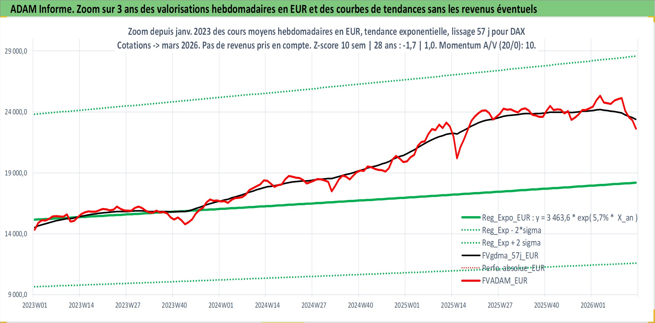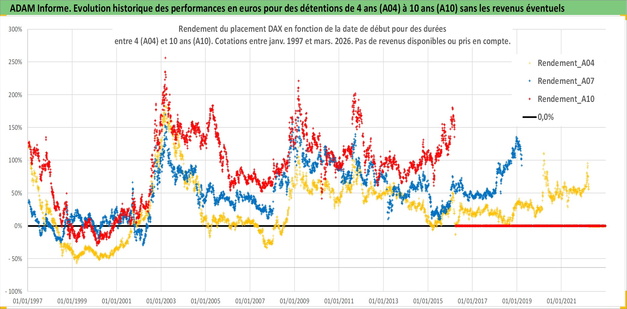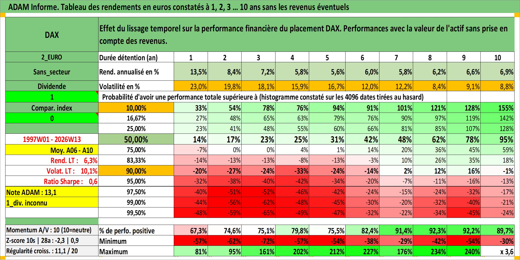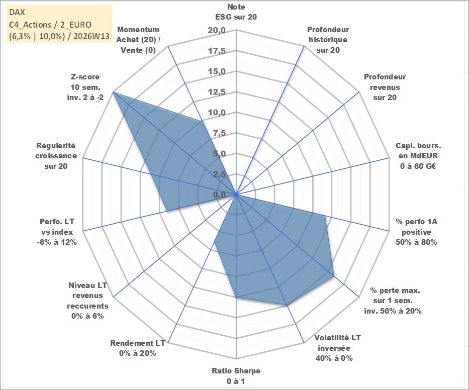 Site dédié aux investisseursPage dédiée sur site financeAnalyse des valorisations hebdomadaires de l'actif DAX. Cet actif est cote en EUR. Les valorisations couvrent les semaines 1997W01 a 2026W13. Les revenus de cet actif financier ne sont pas connus car non existants ou non disponibles sur le site Yahoo Finance. La note ESG de cet actif n'est pas connue.