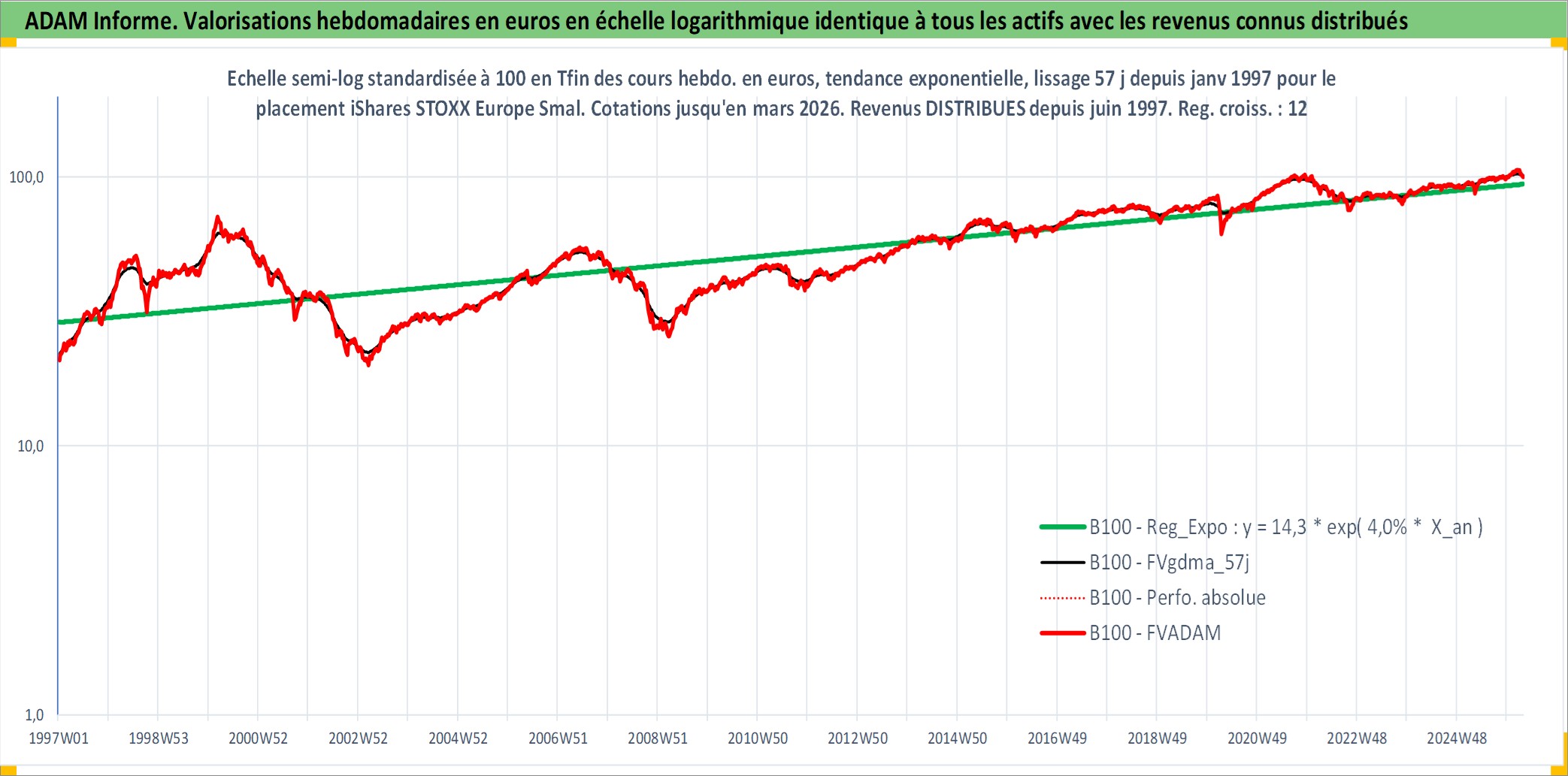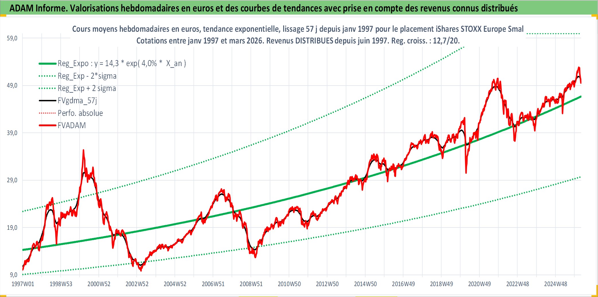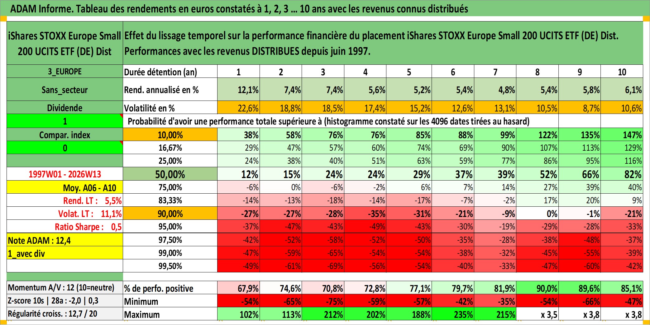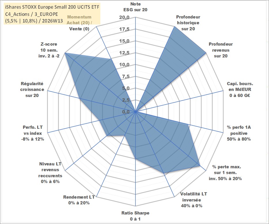 Site dédié aux investisseursPage dédiée sur site financeAnalyse des valorisations hebdomadaires du fonds iShares STOXX Europe Small 200 UCITS ETF (DE) Dist. Cet actif est cote en EUR. Les valorisations couvrent les semaines 1997W01 a 2026W13. Les revenus de cet actif financier sont pris en compte depuis la semaine 1997W24. La note ESG de cet actif n'est pas connue.