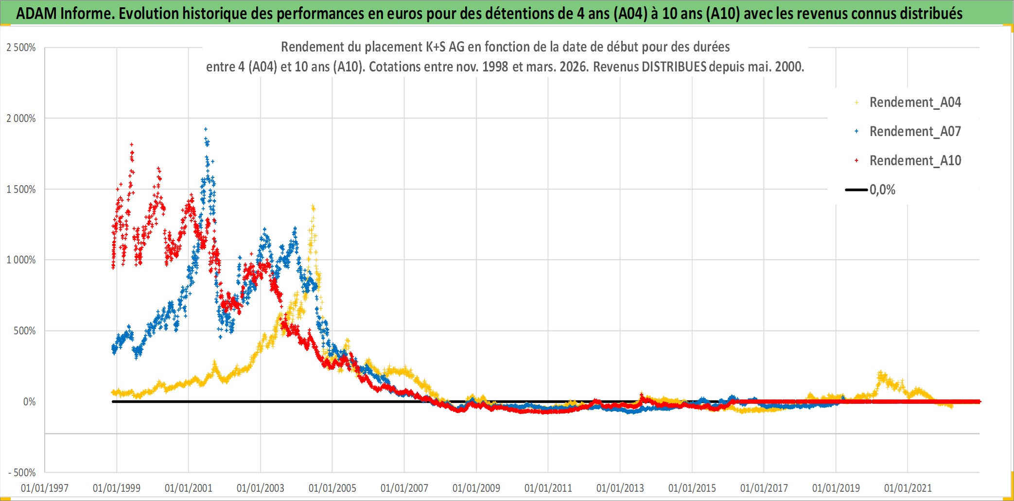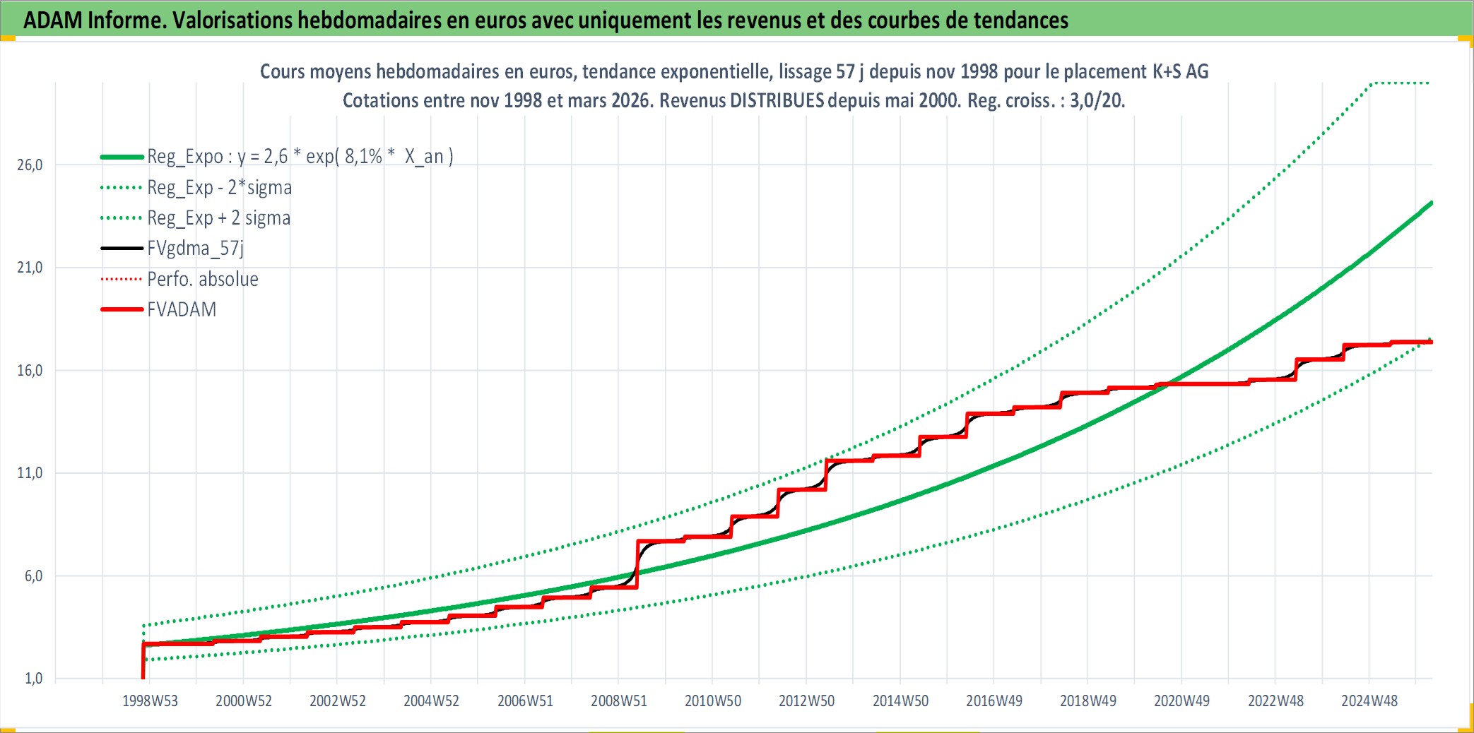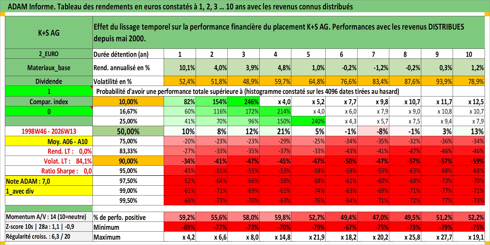 Site dédié aux investisseursPage dédiée sur site financeAnalyse des valorisations hebdomadaires de l'action K+S AG. Cet actif est cote en EUR. Les valorisations couvrent les semaines 1998W46 a 2026W13. Les revenus de cet actif financier sont pris en compte depuis la semaine 2000W19. La note ESG de cet actif n'est pas connue.