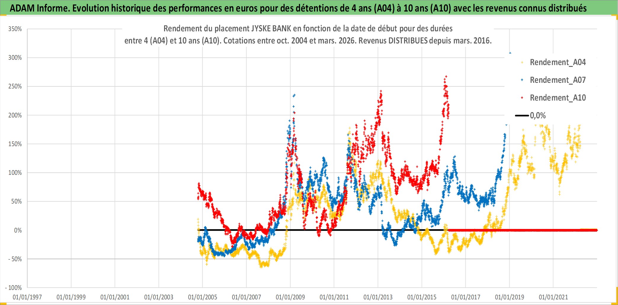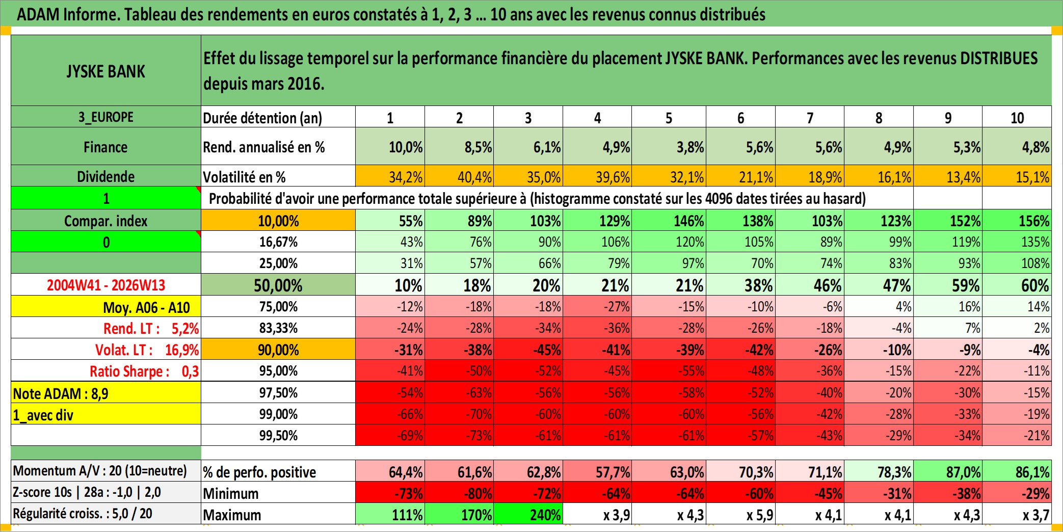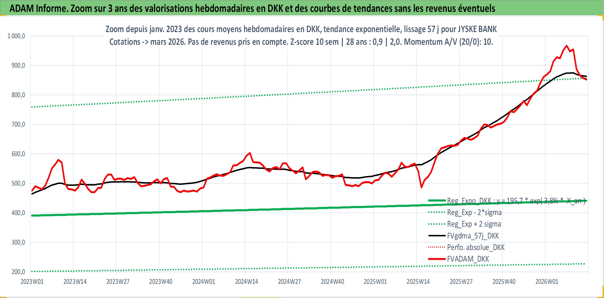 Site dédié aux investisseursPage dédiée sur site financeAnalyse des valorisations hebdomadaires de l'action JYSKE BANK. Cet actif est cote en DKK. Les valorisations sont en contrevaleur EURO et couvrent les semaines 2004W41 a 2026W13. Les revenus de cet actif financier sont pris en compte depuis la semaine 2016W11. La note ESG de cet actif n'est pas connue.