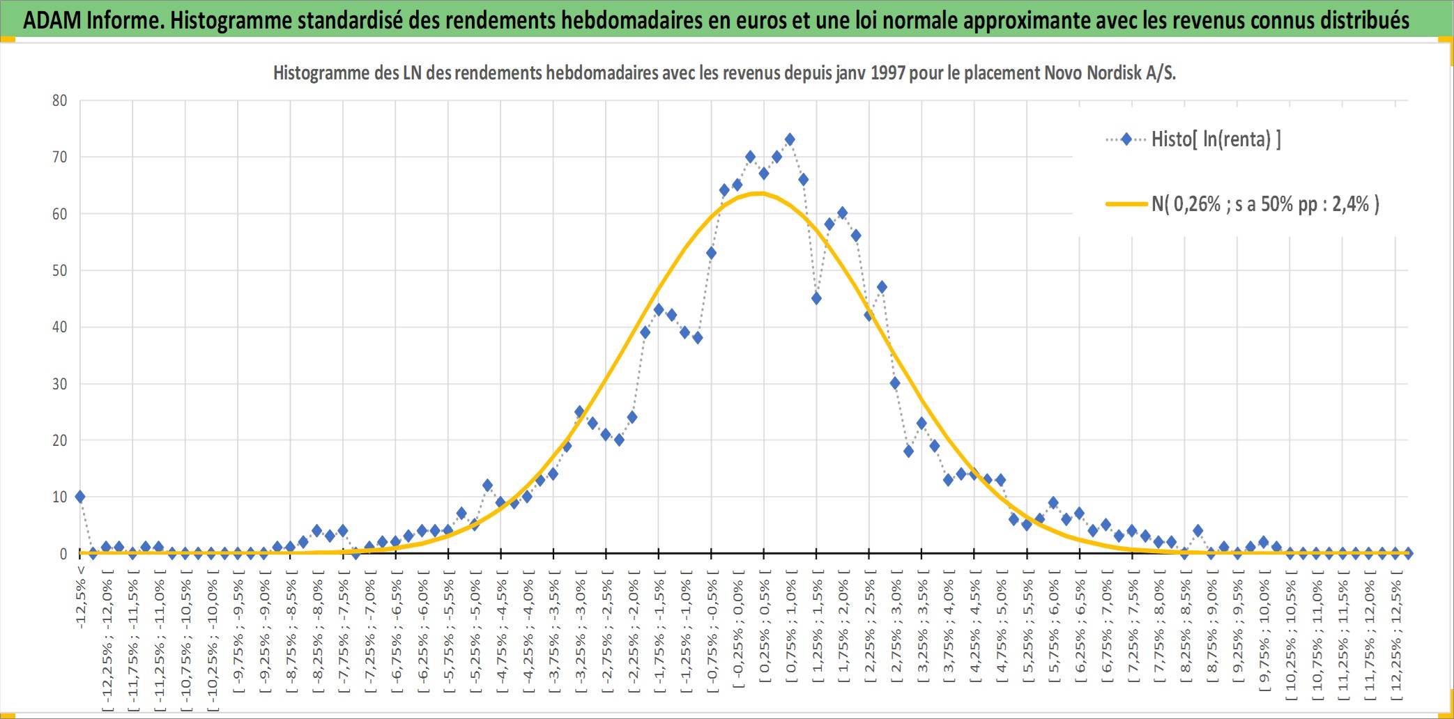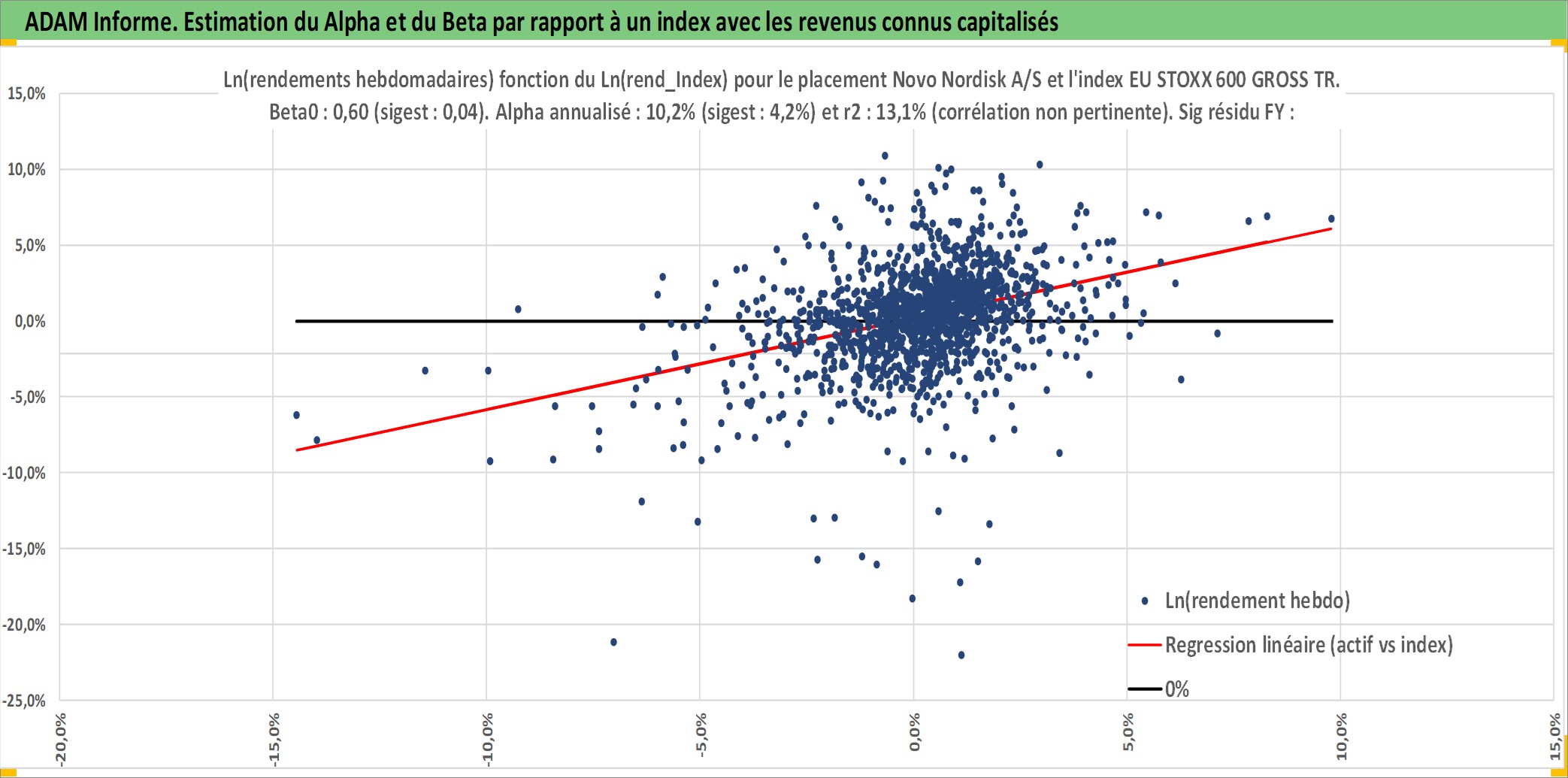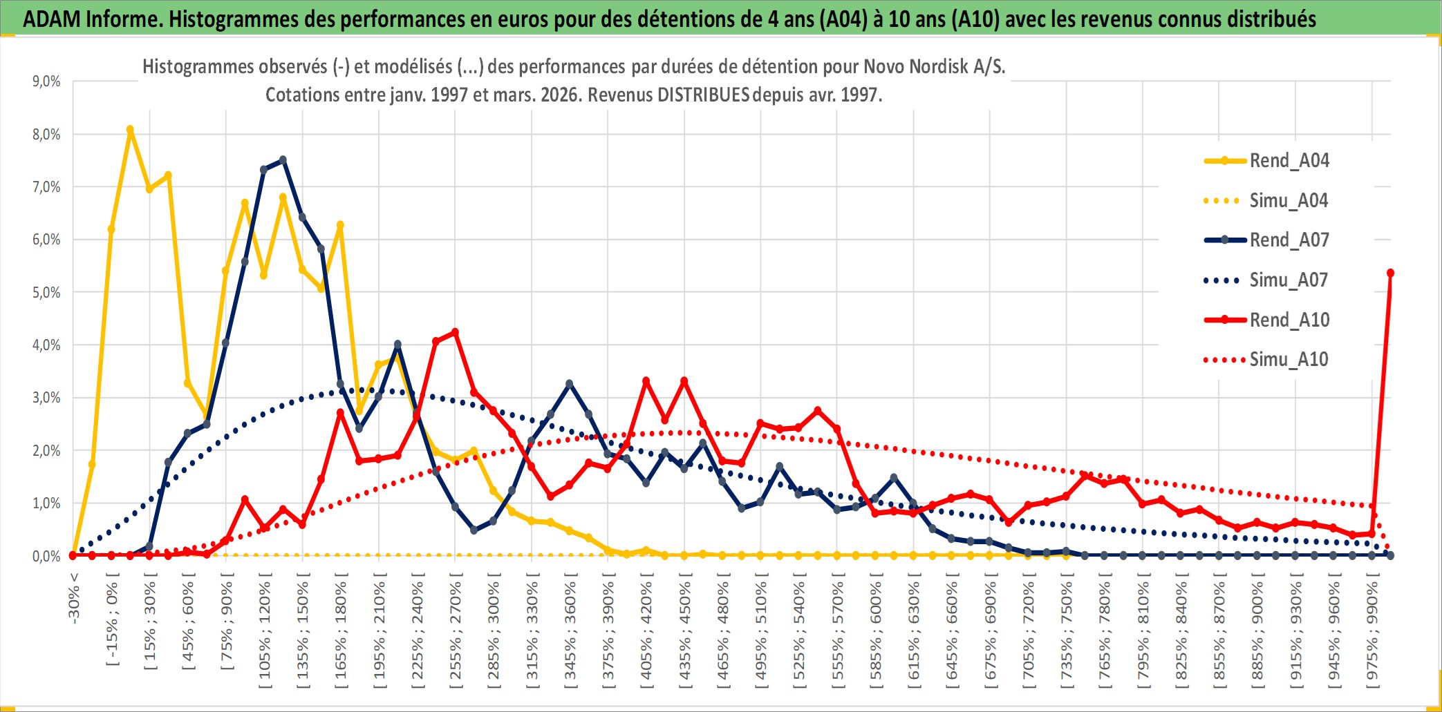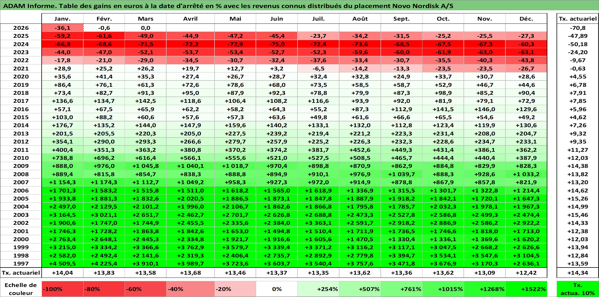 Site dédié aux investisseursPage dédiée sur site financeAnalyse des valorisations hebdomadaires de l'action Novo Nordisk A/S. Cet actif est cote en DKK. Les valorisations sont en contrevaleur EURO et couvrent les semaines 1997W01 a 2026W13. Les revenus de cet actif financier sont pris en compte depuis la semaine 1997W17. La note globale ESG de cet actif est estimee a 8.0 (apres rebasage entre 0 et 20).
