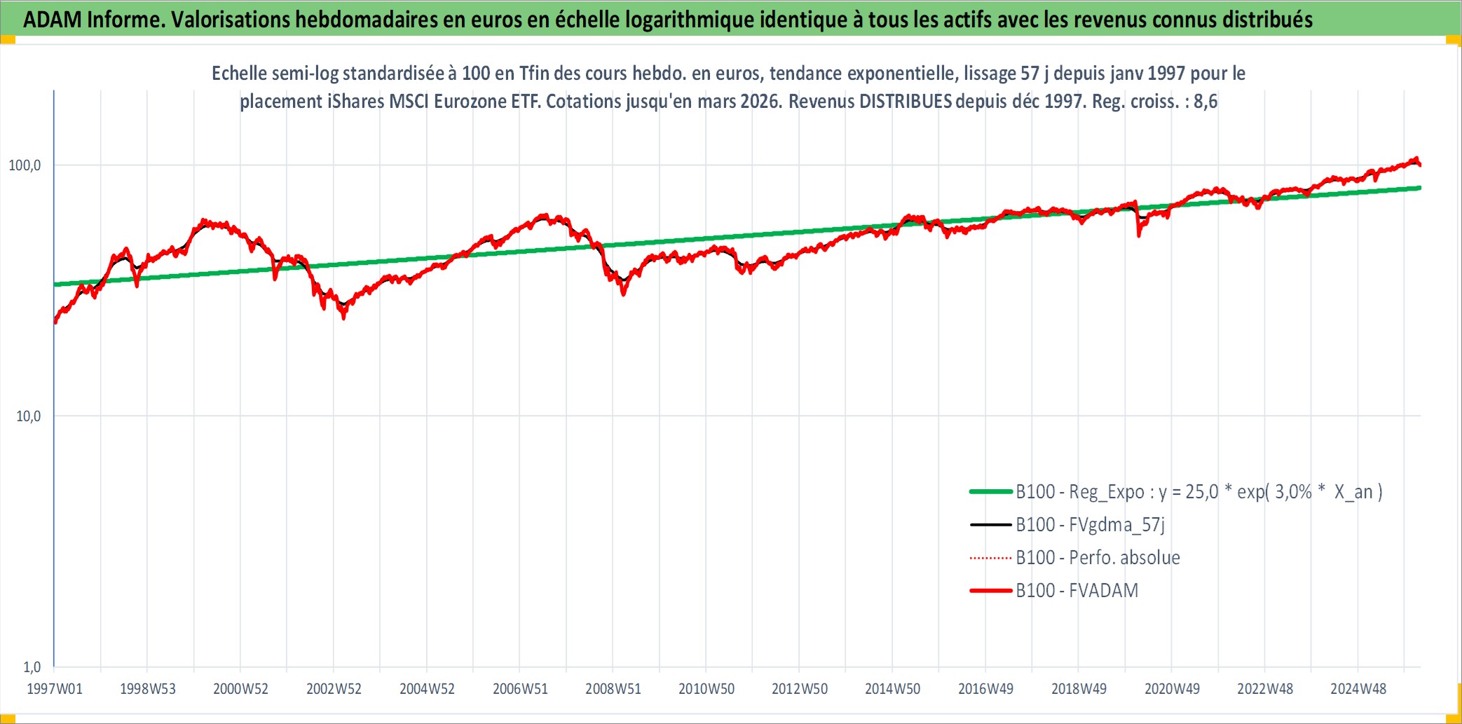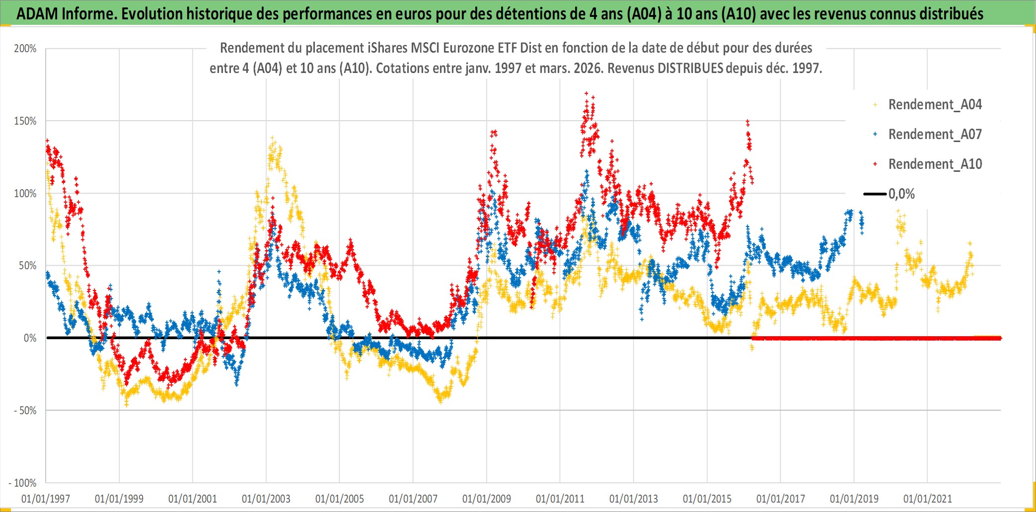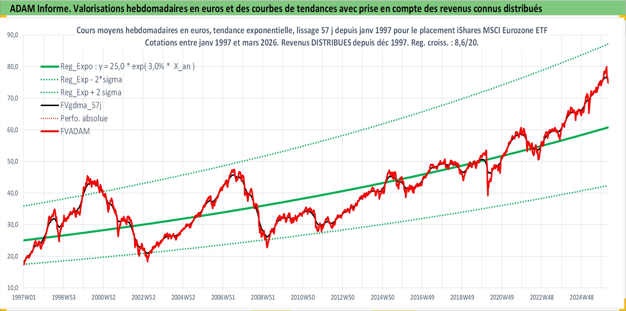 Site dédié aux investisseursPage dédiée sur site financeAnalyse des valorisations hebdomadaires du fonds iShares MSCI Eurozone ETF Dist. Cet actif est cote en USD. Les valorisations sont en contrevaleur EURO et couvrent les semaines 1997W01 a 2026W13. Les revenus de cet actif financier sont pris en compte depuis la semaine 1997W51. La note ESG de cet actif n'est pas connue.