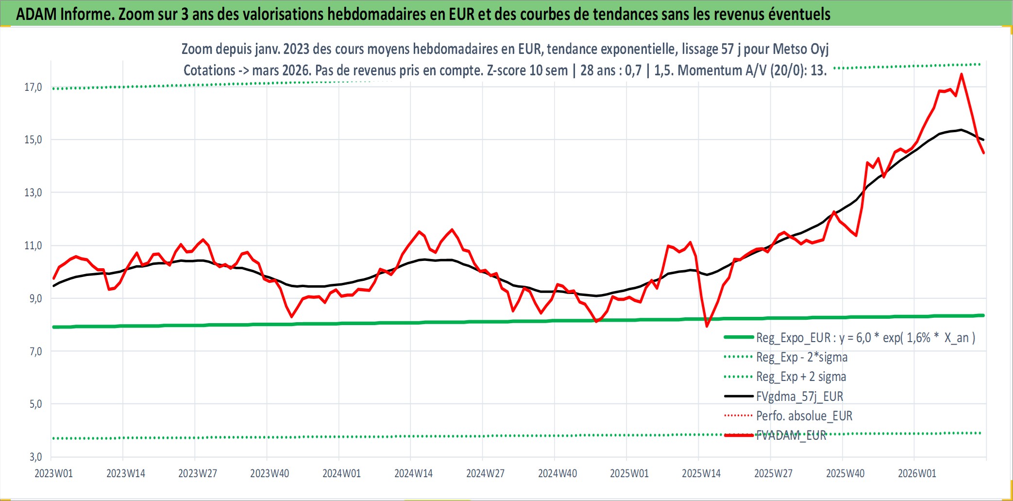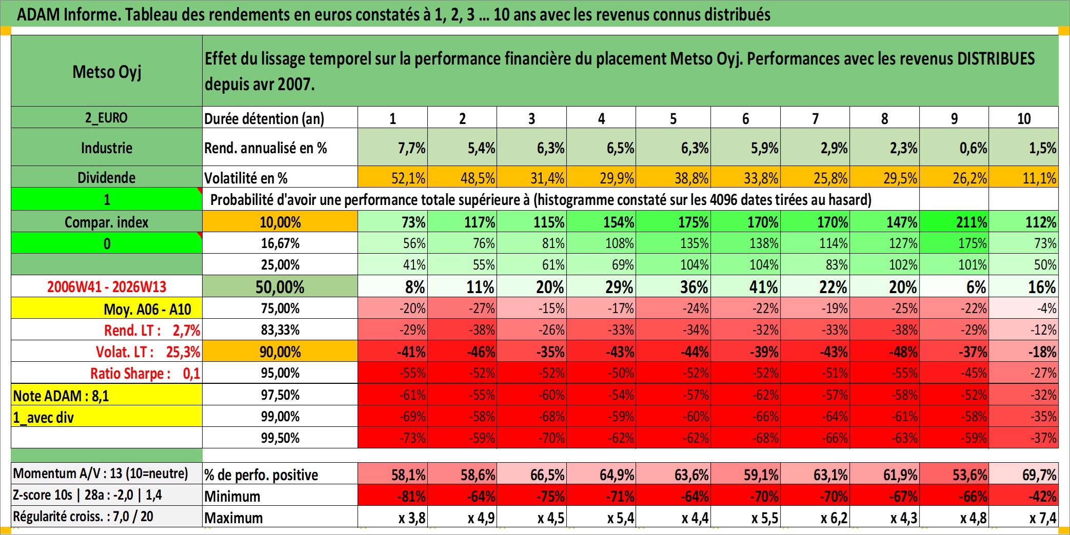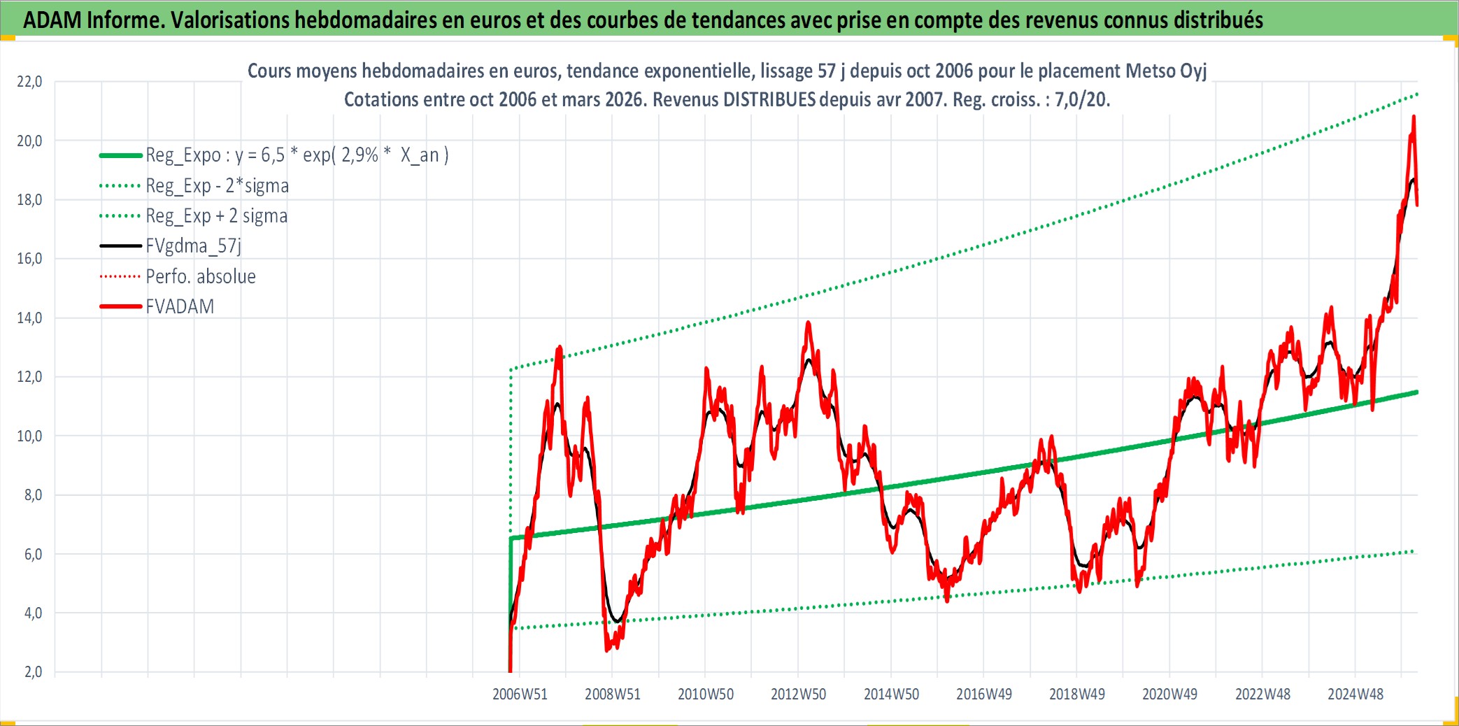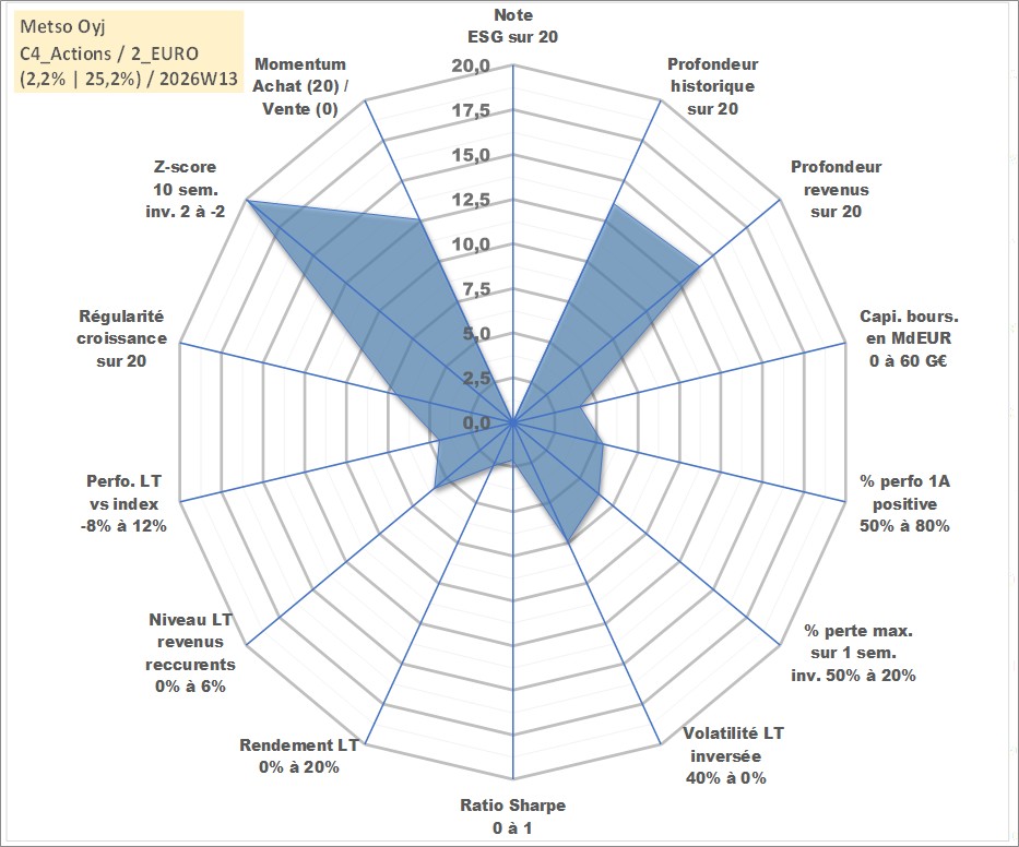Site dédié aux investisseursPage dédiée sur site financeAnalyse des valorisations hebdomadaires de l'action Metso Oyj. Cet actif est cote en EUR. Les valorisations couvrent les semaines 2006W41 a 2026W13. Les revenus de cet actif financier sont pris en compte depuis la semaine 2007W14. La note ESG de cet actif n'est pas connue.