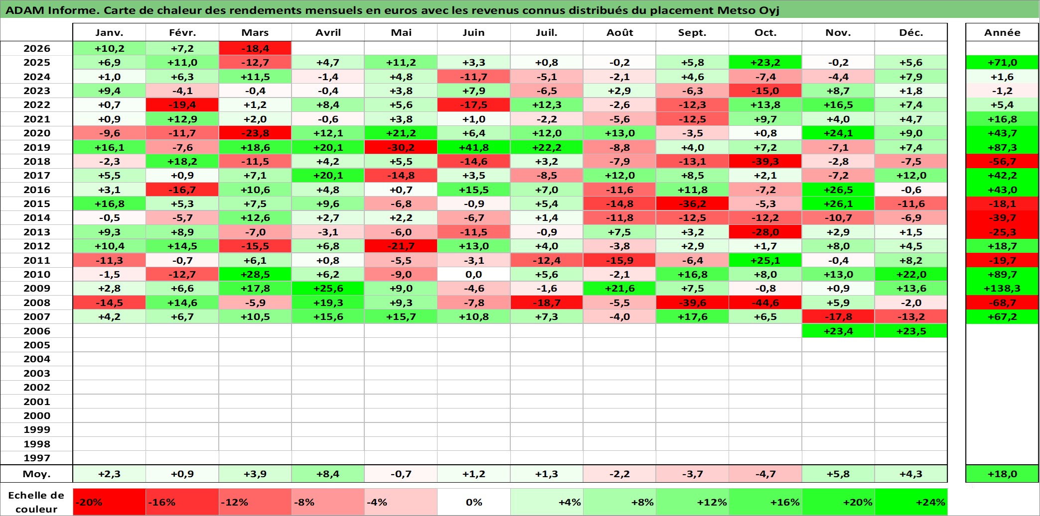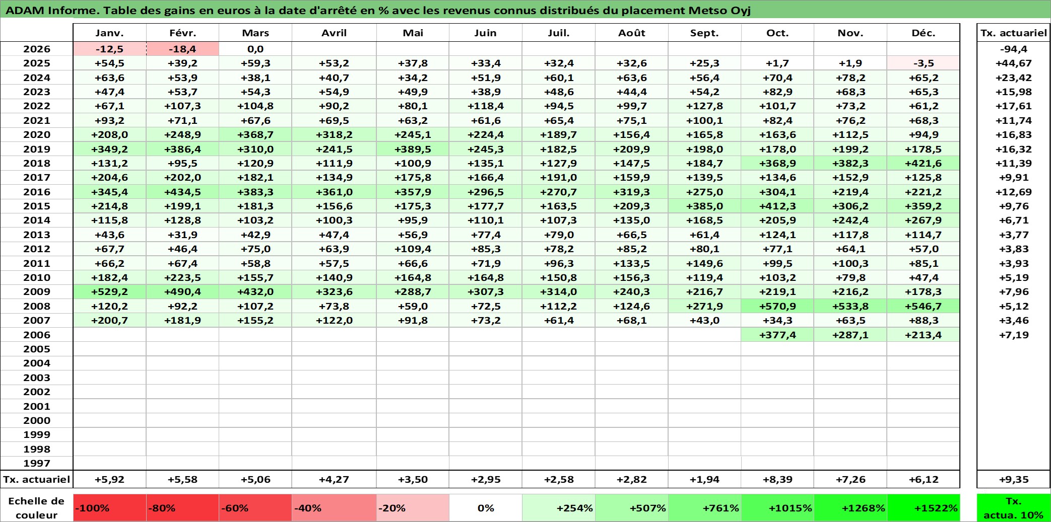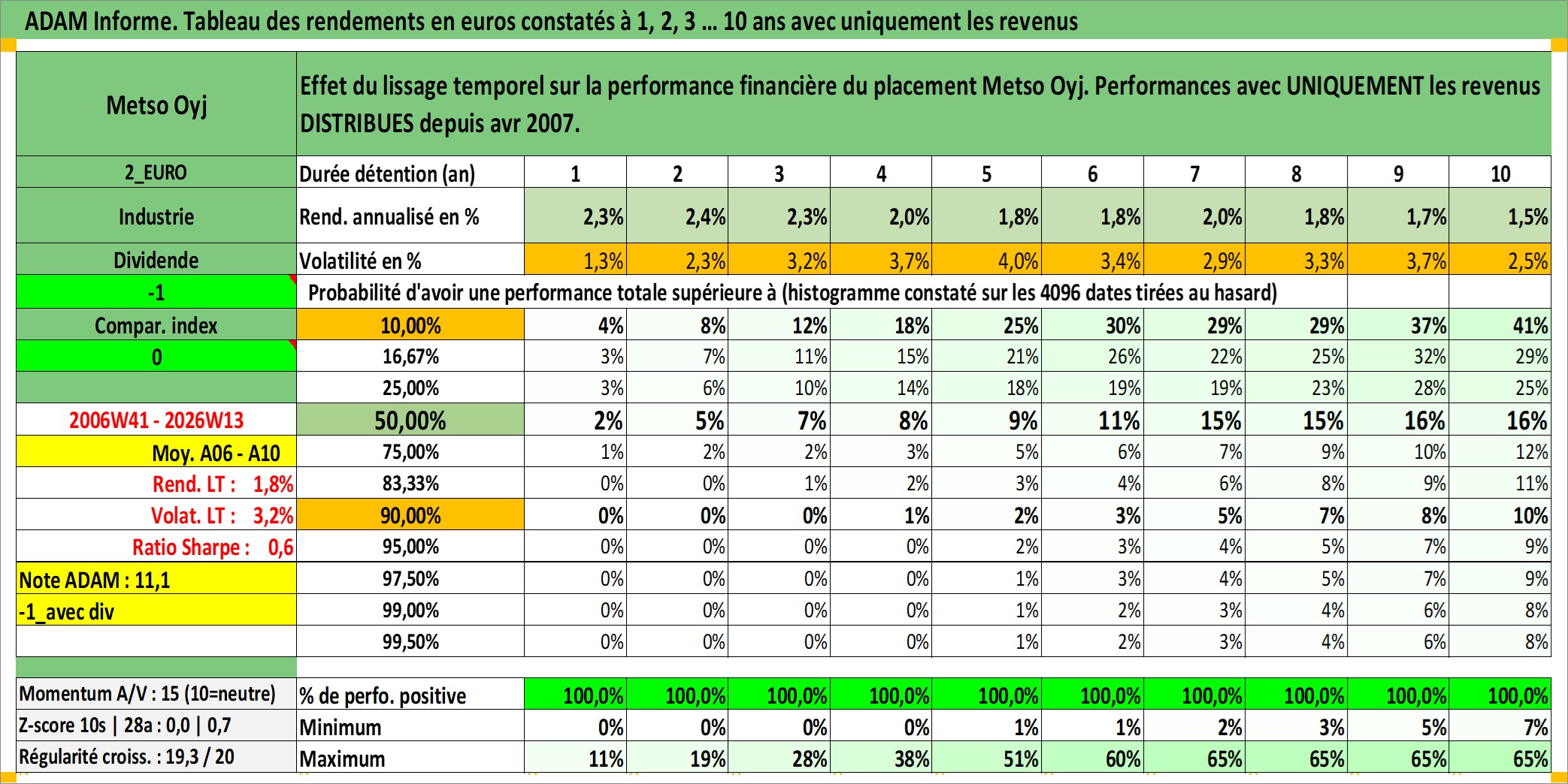 Site dédié aux investisseursPage dédiée sur site financeAnalyse des valorisations hebdomadaires de l'action Metso Oyj. Cet actif est cote en EUR. Les valorisations couvrent les semaines 2006W41 a 2026W13. Les revenus de cet actif financier sont pris en compte depuis la semaine 2007W14. La note ESG de cet actif n'est pas connue.