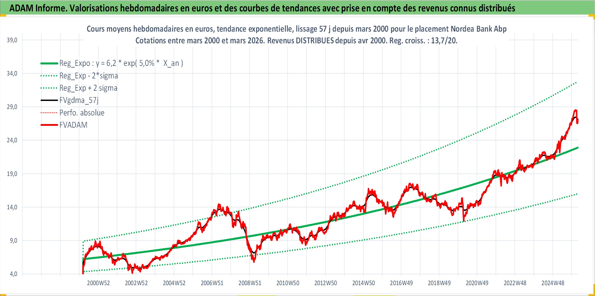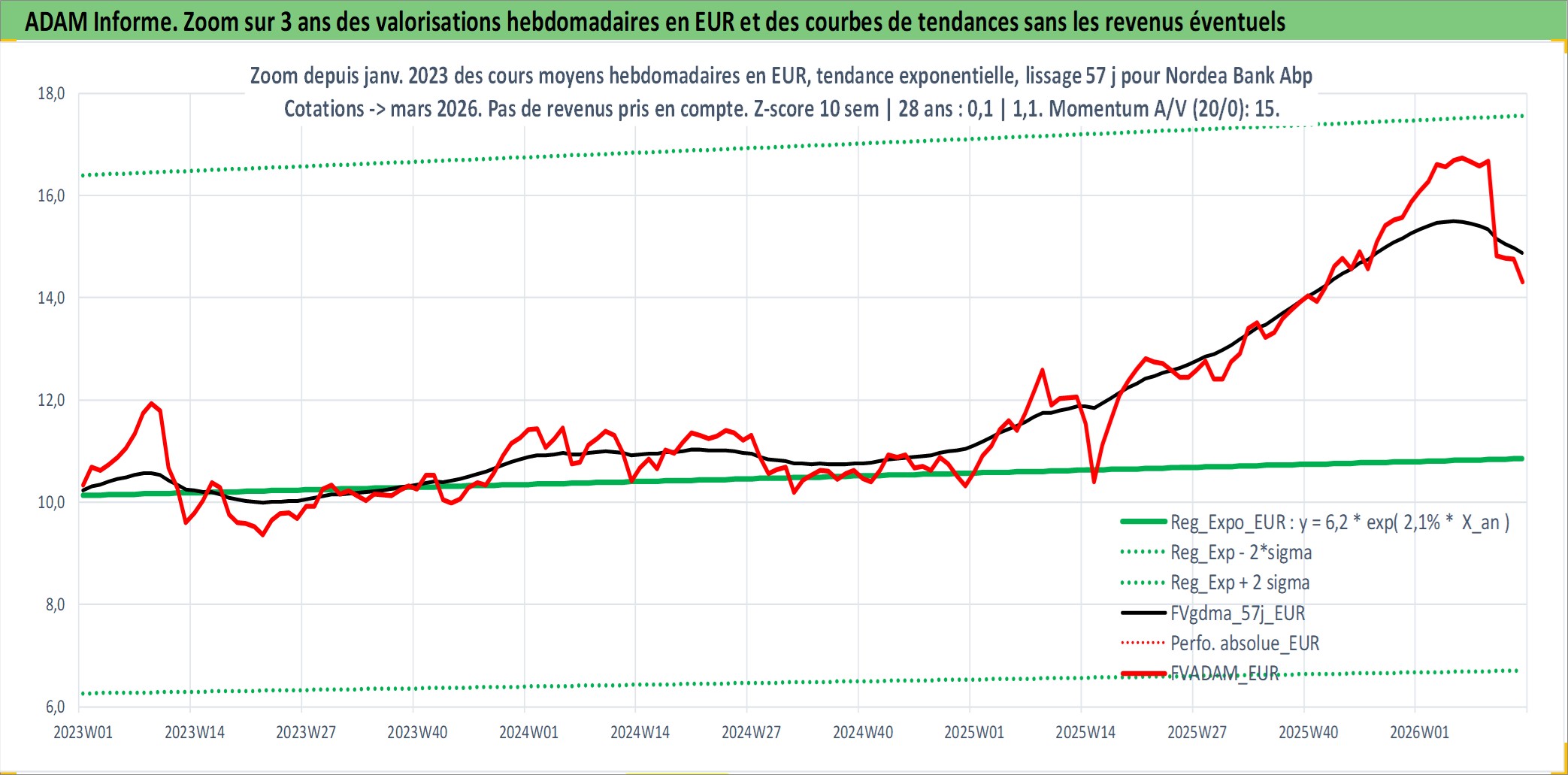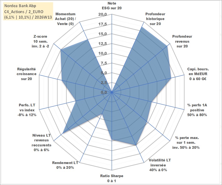 Site dédié aux investisseursPage dédiée sur site financeAnalyse des valorisations hebdomadaires de l'action Nordea Bank Abp. Cet actif est cote en EUR. Les valorisations couvrent les semaines 2000W10 a 2026W13. Les revenus de cet actif financier sont pris en compte depuis la semaine 2000W15. La note ESG de cet actif n'est pas connue.