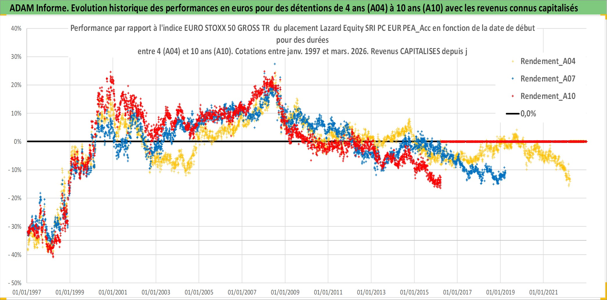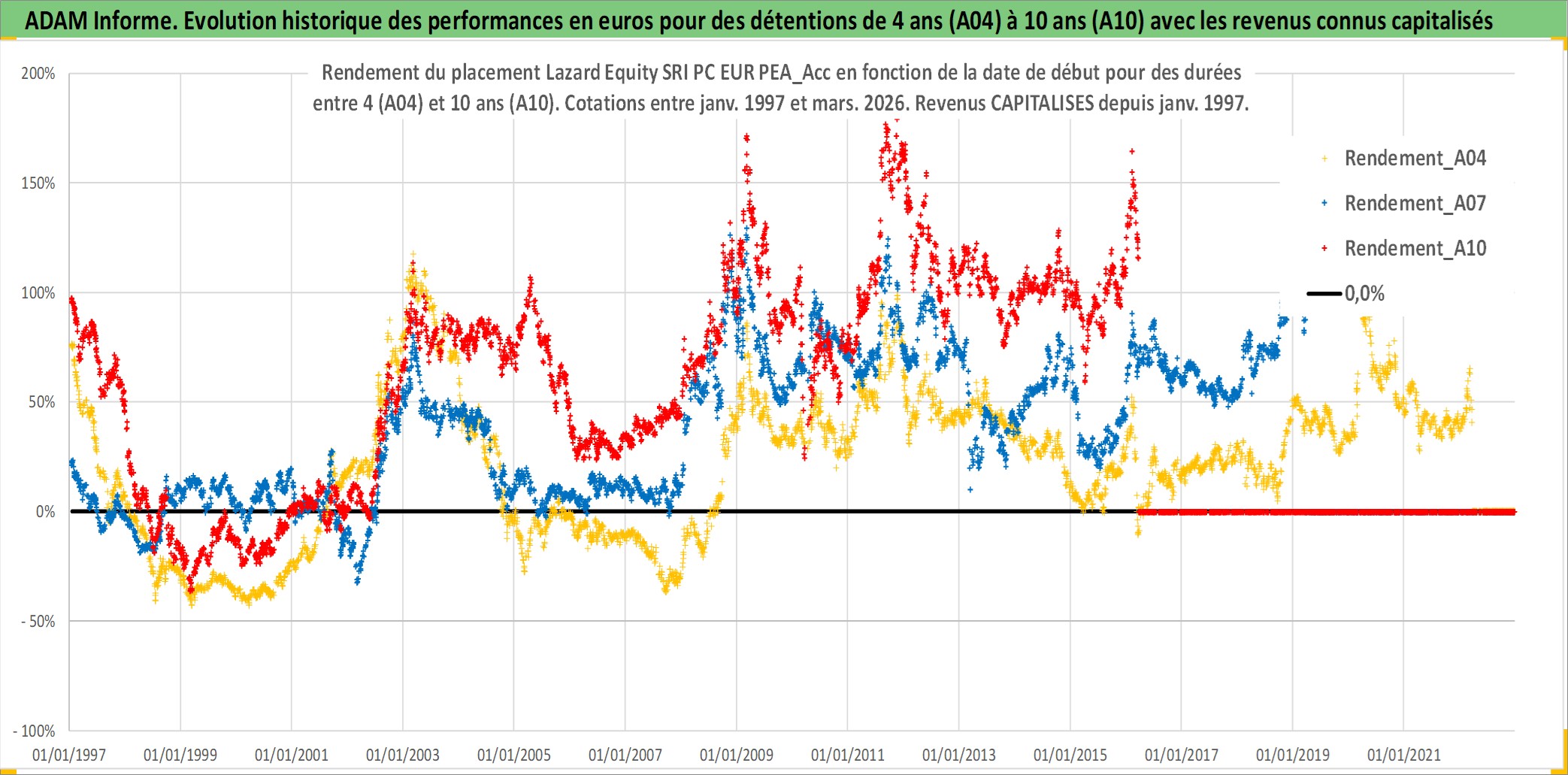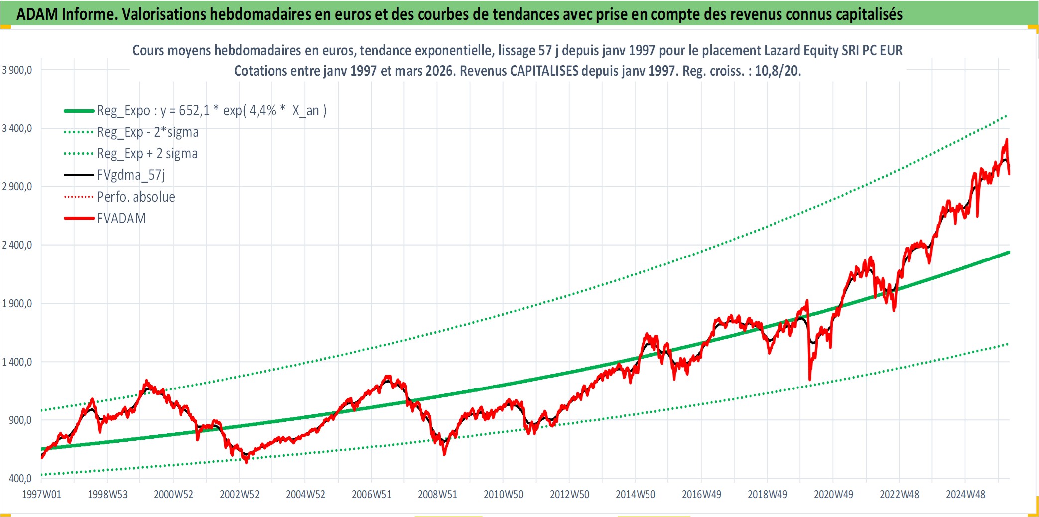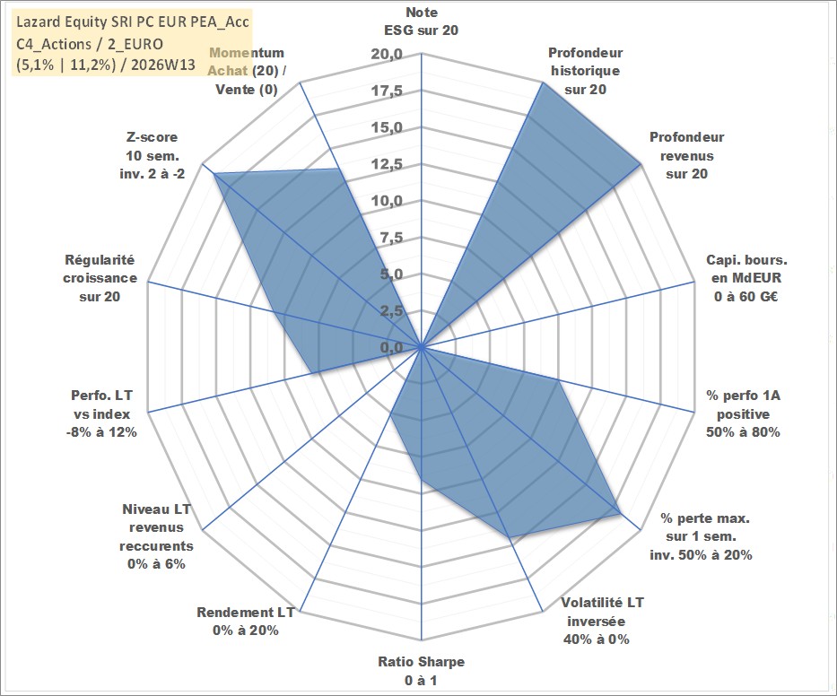Site dédié aux investisseursPage dédiée sur site financeAnalyse des valorisations hebdomadaires du fonds Lazard Equity SRI PC EUR PEA_Acc. Cet actif est cote en EUR. Les valorisations couvrent les semaines 1997W01 a 2026W13. Les revenus de cet actif financier sont pris en compte depuis la semaine 1997W01. La note ESG de cet actif n'est pas connue.