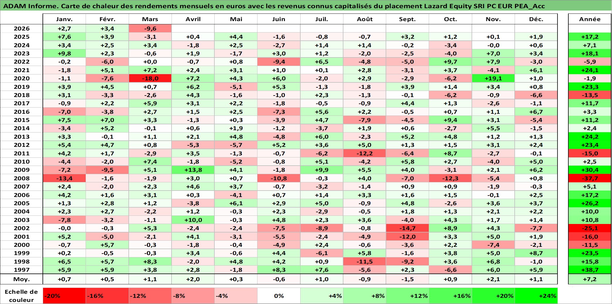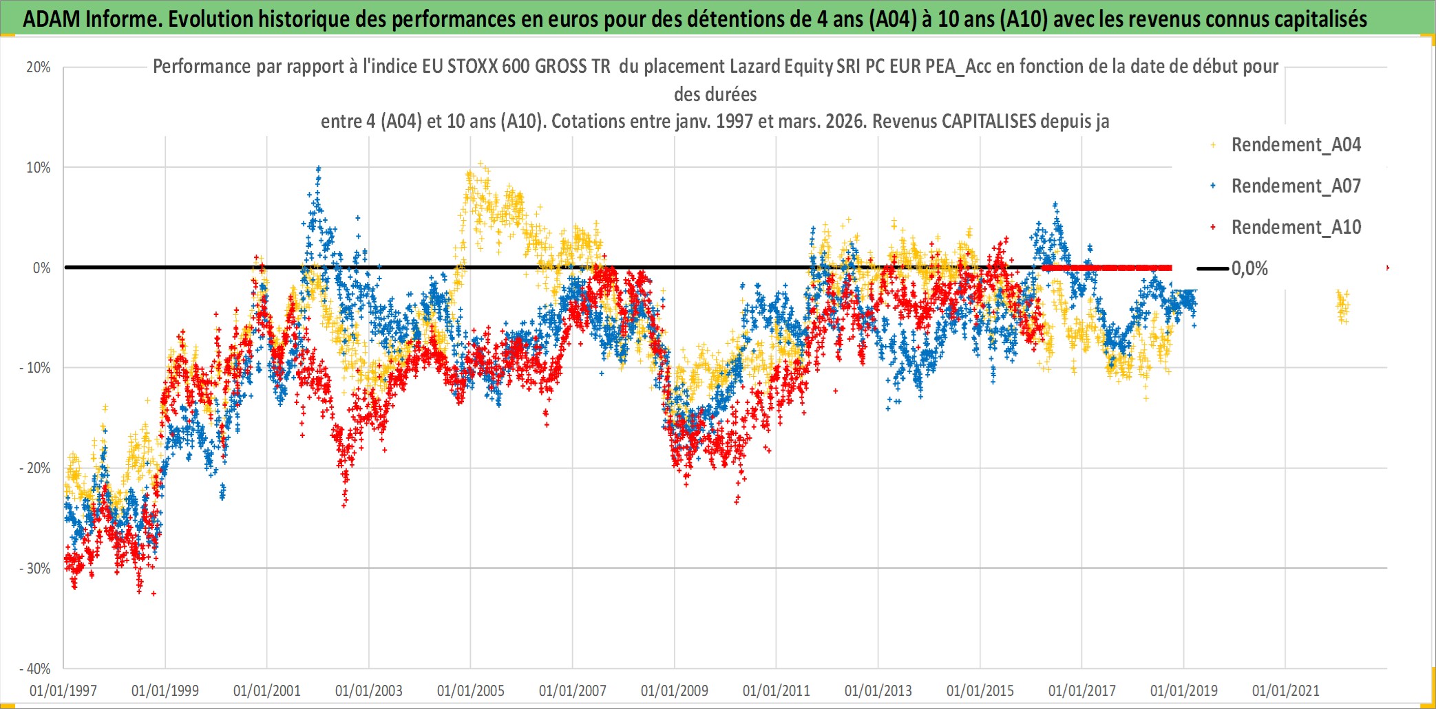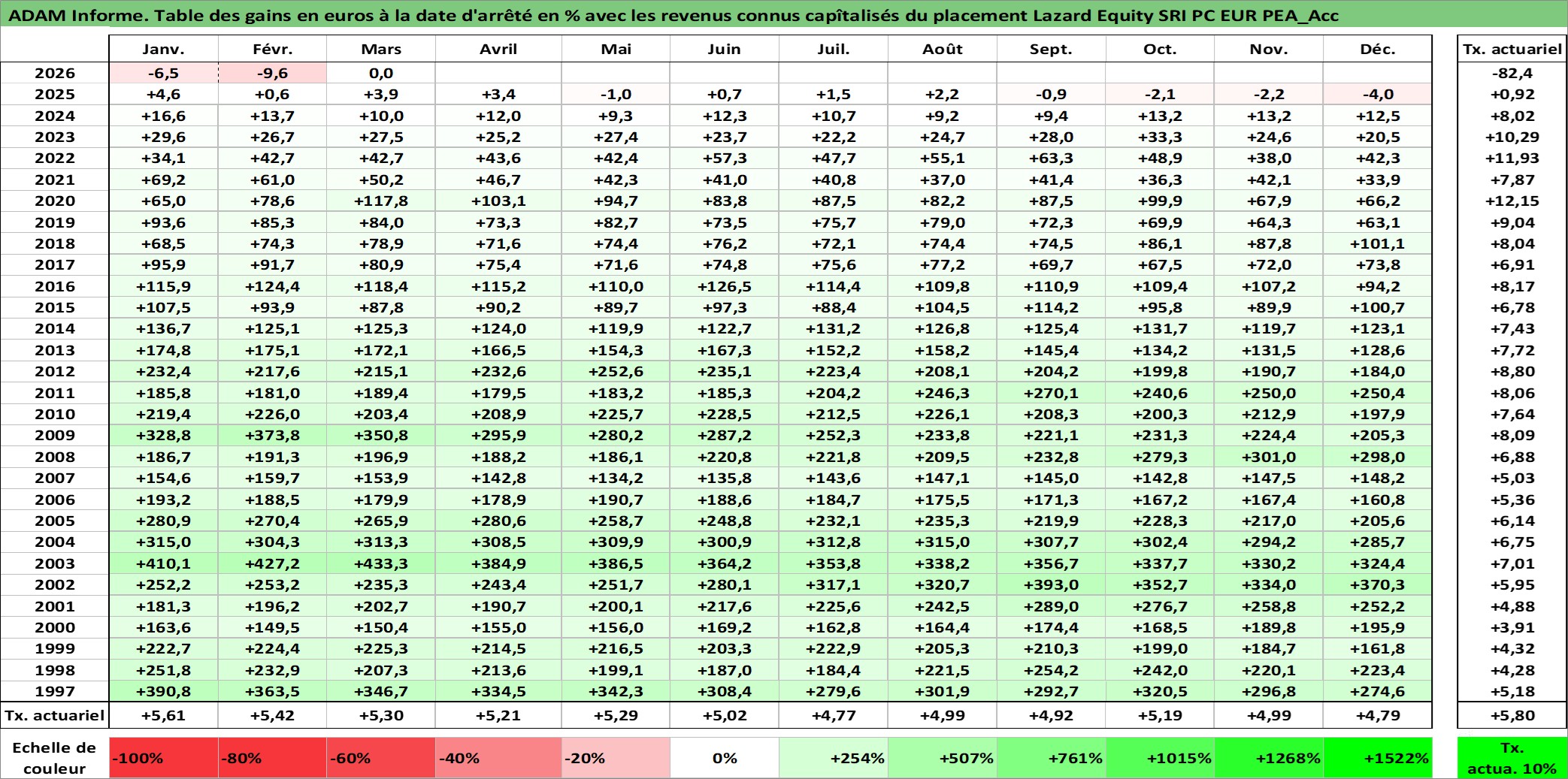 Site dédié aux investisseursPage dédiée sur site financeAnalyse des valorisations hebdomadaires du fonds Lazard Equity SRI PC EUR PEA_Acc. Cet actif est cote en EUR. Les valorisations couvrent les semaines 1997W01 a 2026W13. Les revenus de cet actif financier sont pris en compte depuis la semaine 1997W01. La note ESG de cet actif n'est pas connue.