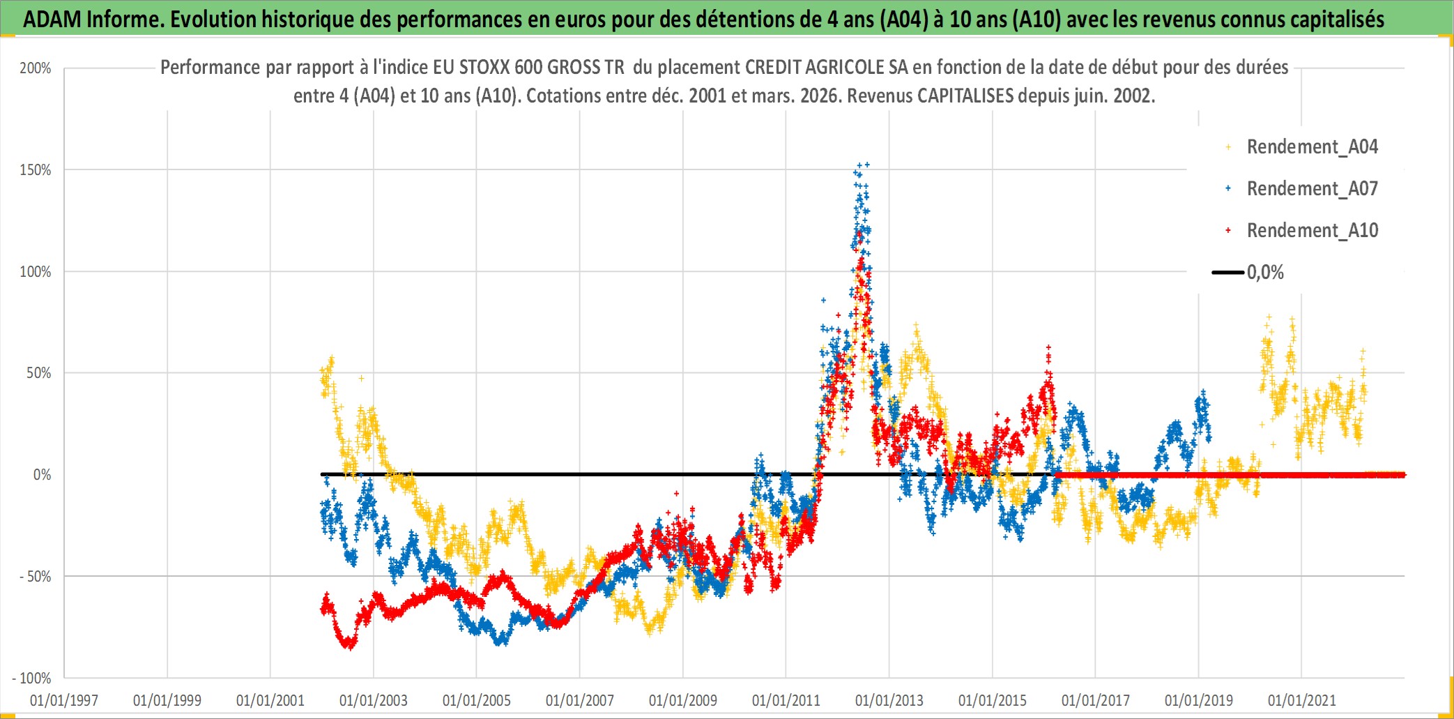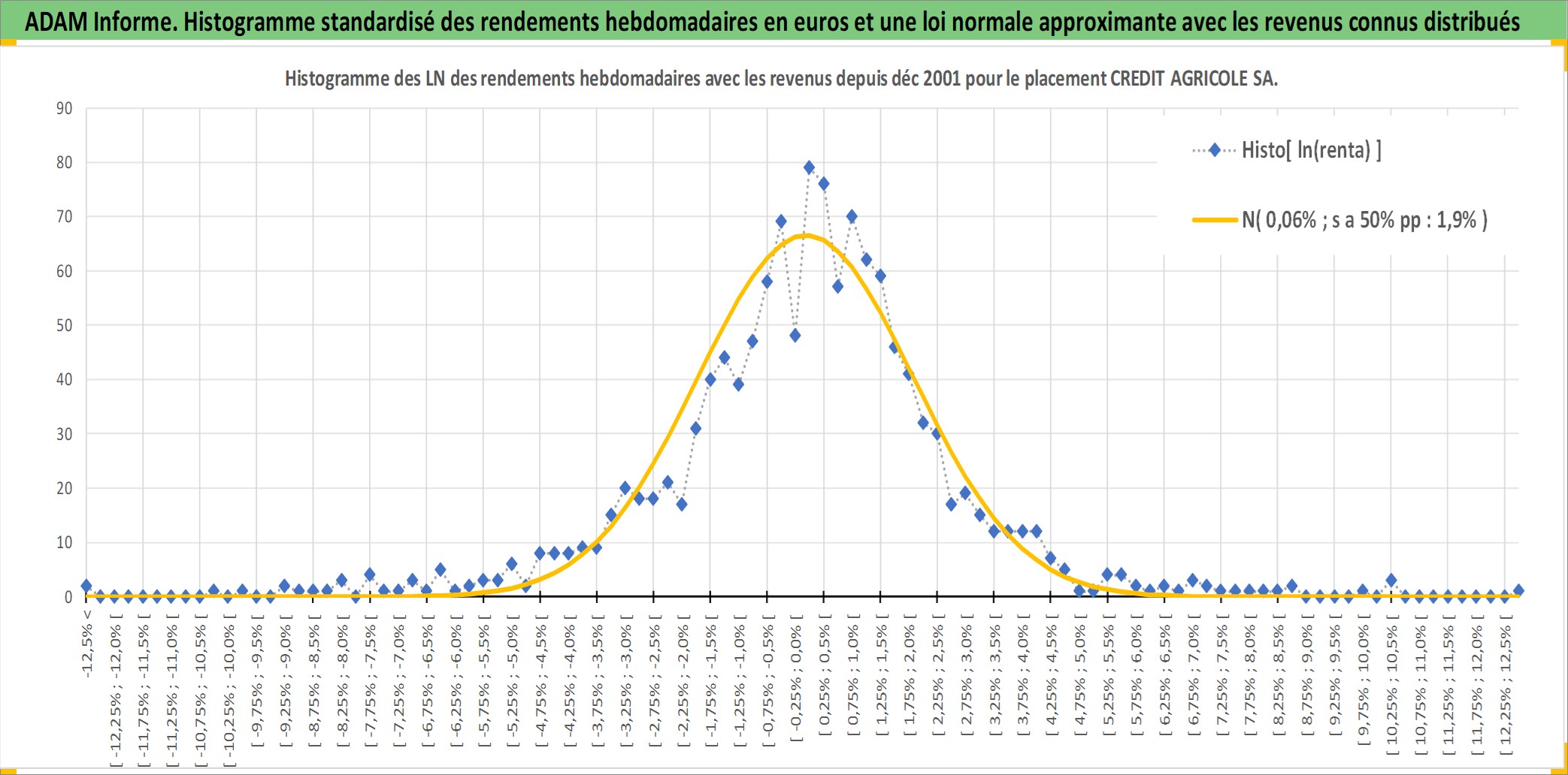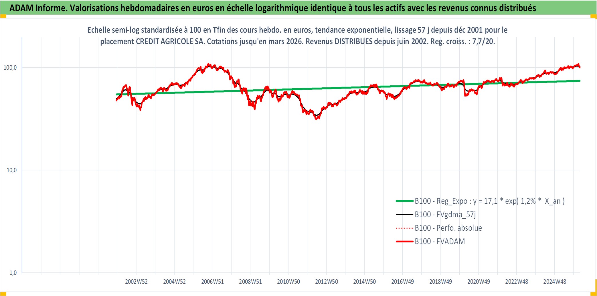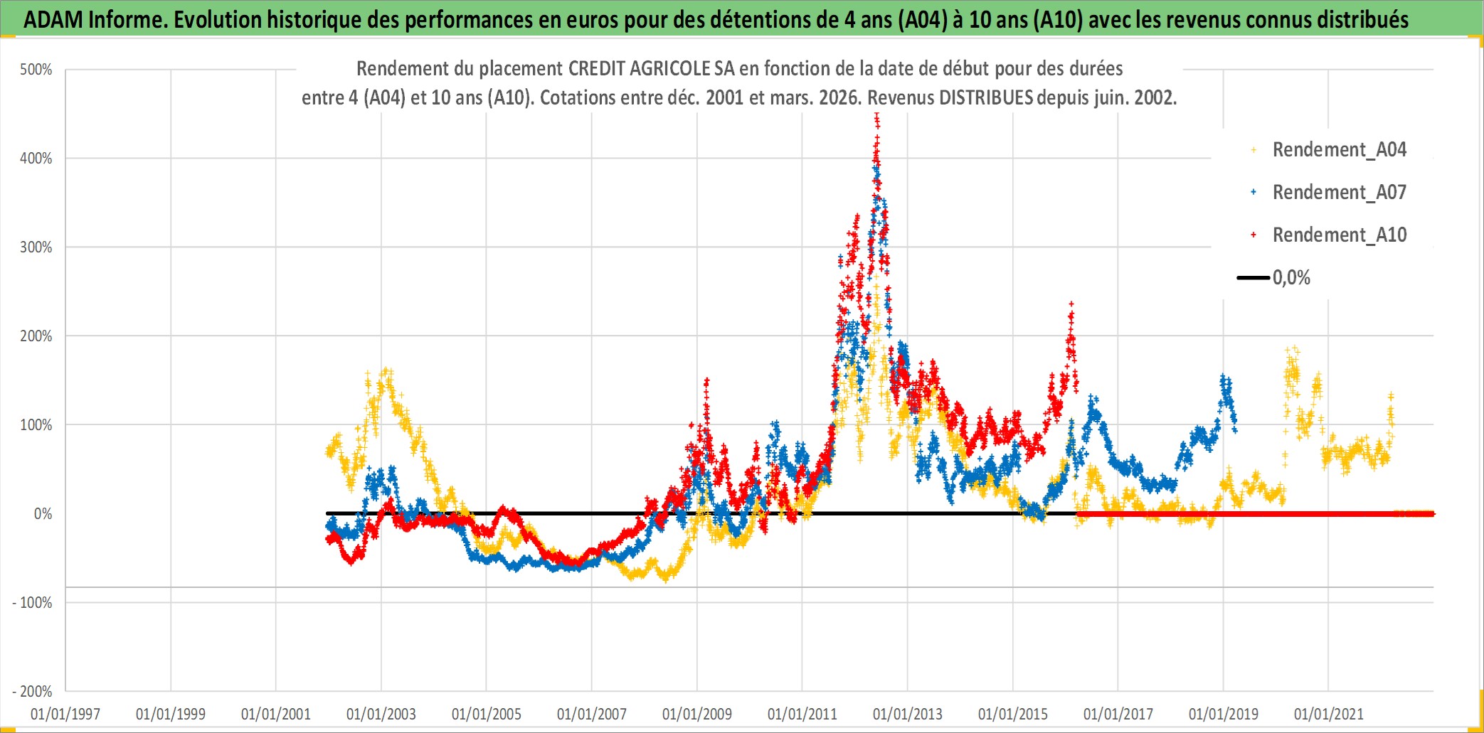 Site dédié aux investisseursPage dédiée sur site financeAnalyse des valorisations hebdomadaires de l'action CREDIT AGRICOLE SA. Cet actif est cote en EUR. Les valorisations couvrent les semaines 2001W50 a 2026W13. Les revenus de cet actif financier sont pris en compte depuis la semaine 2002W23. La note globale ESG de cet actif est estimee a 7.0 (apres rebasage entre 0 et 20).