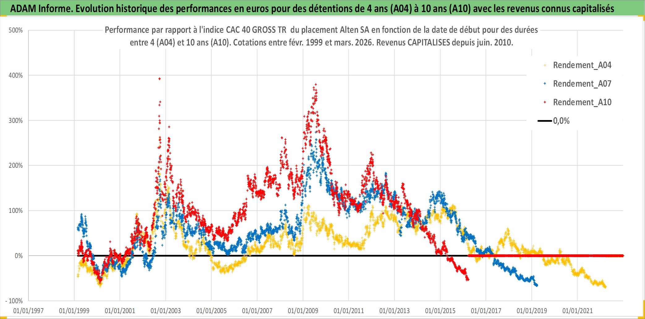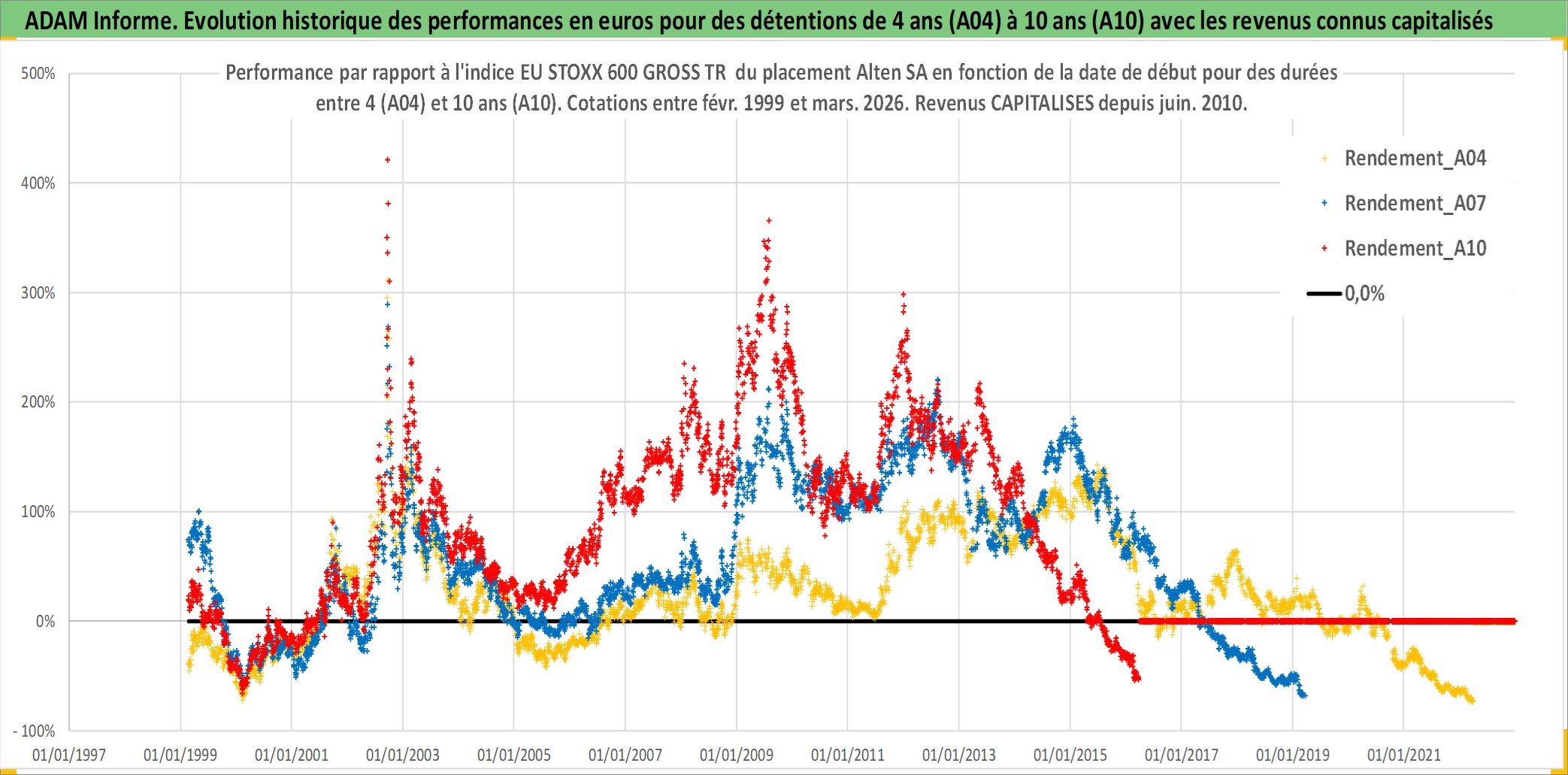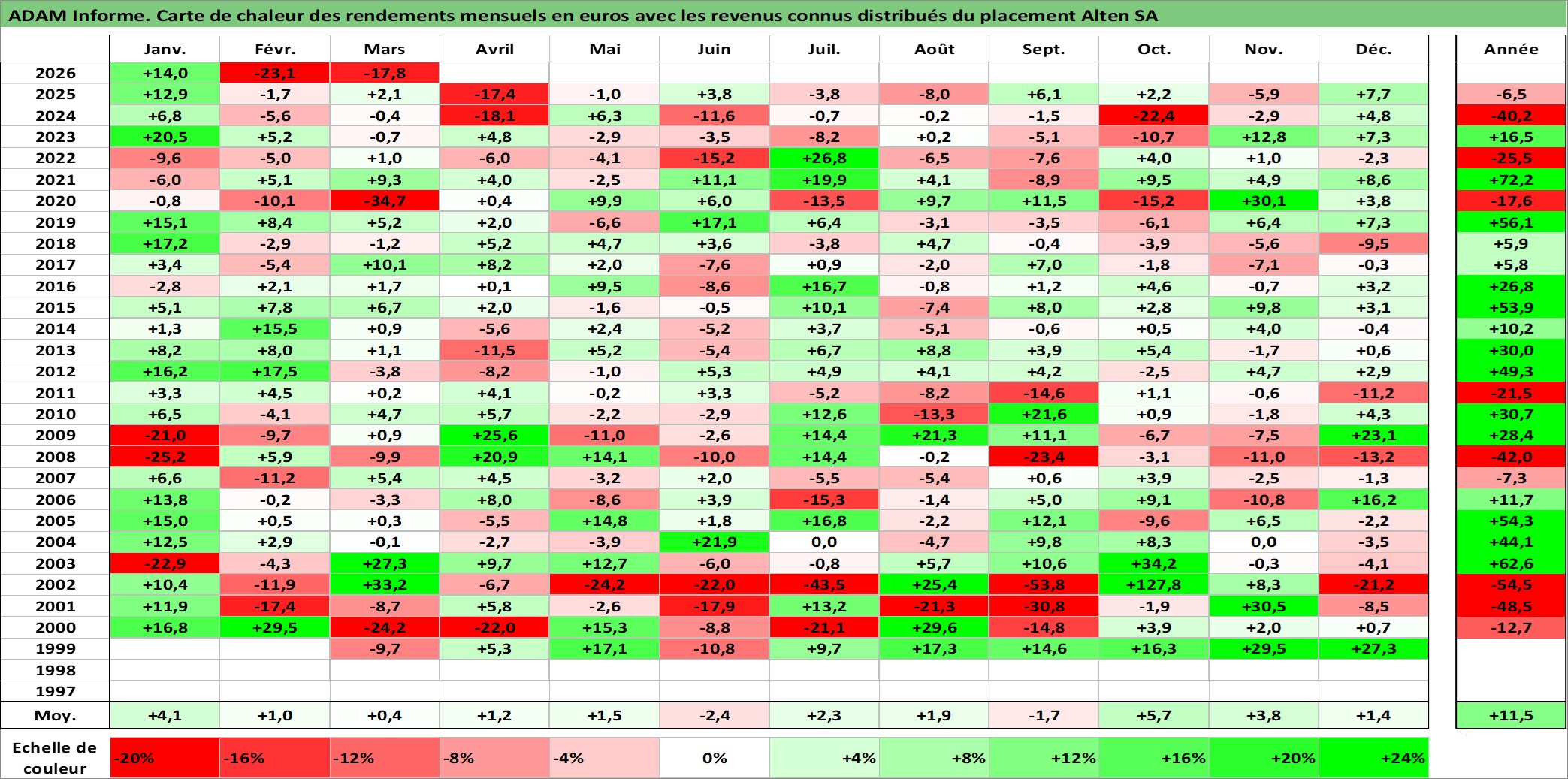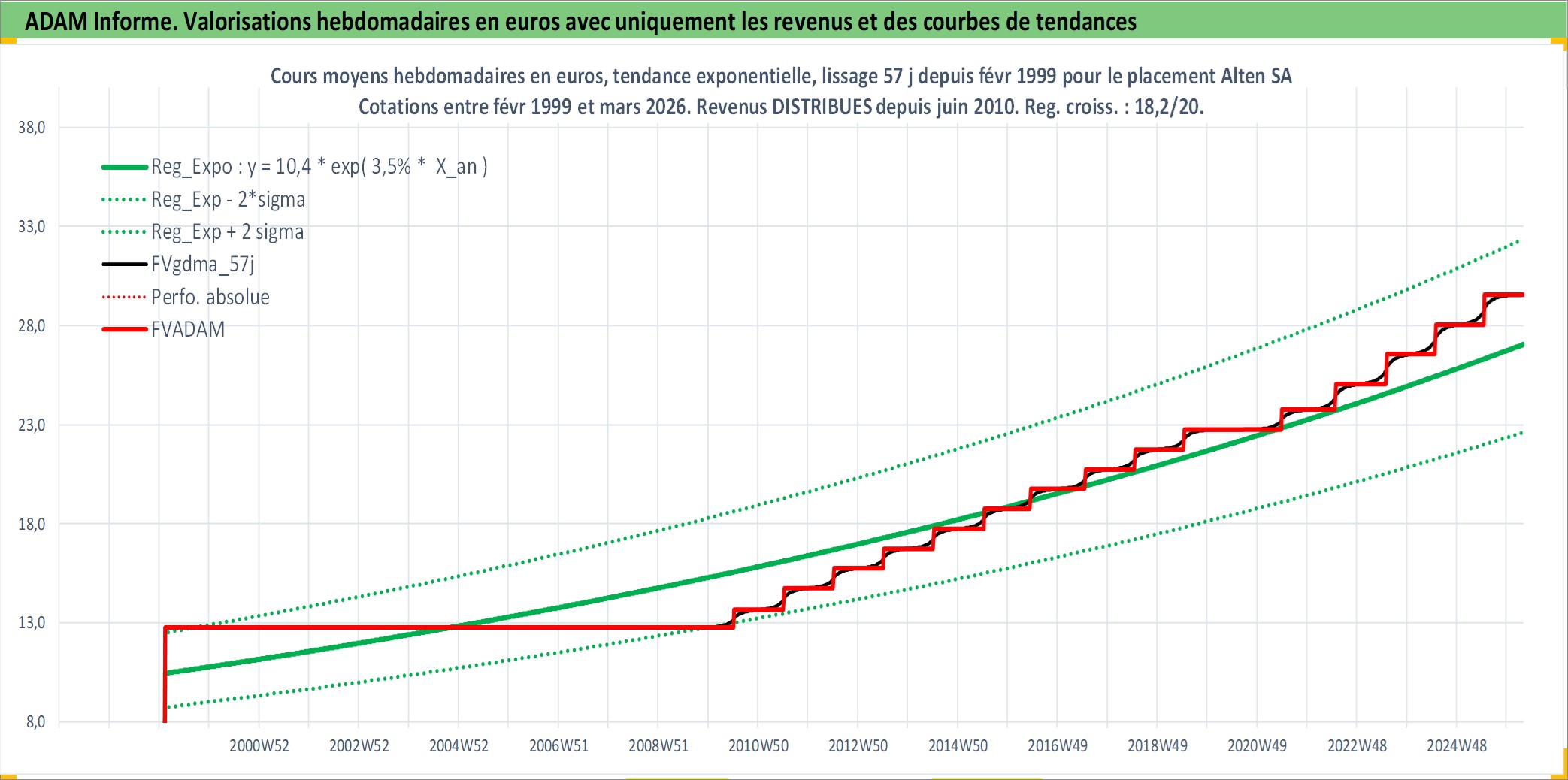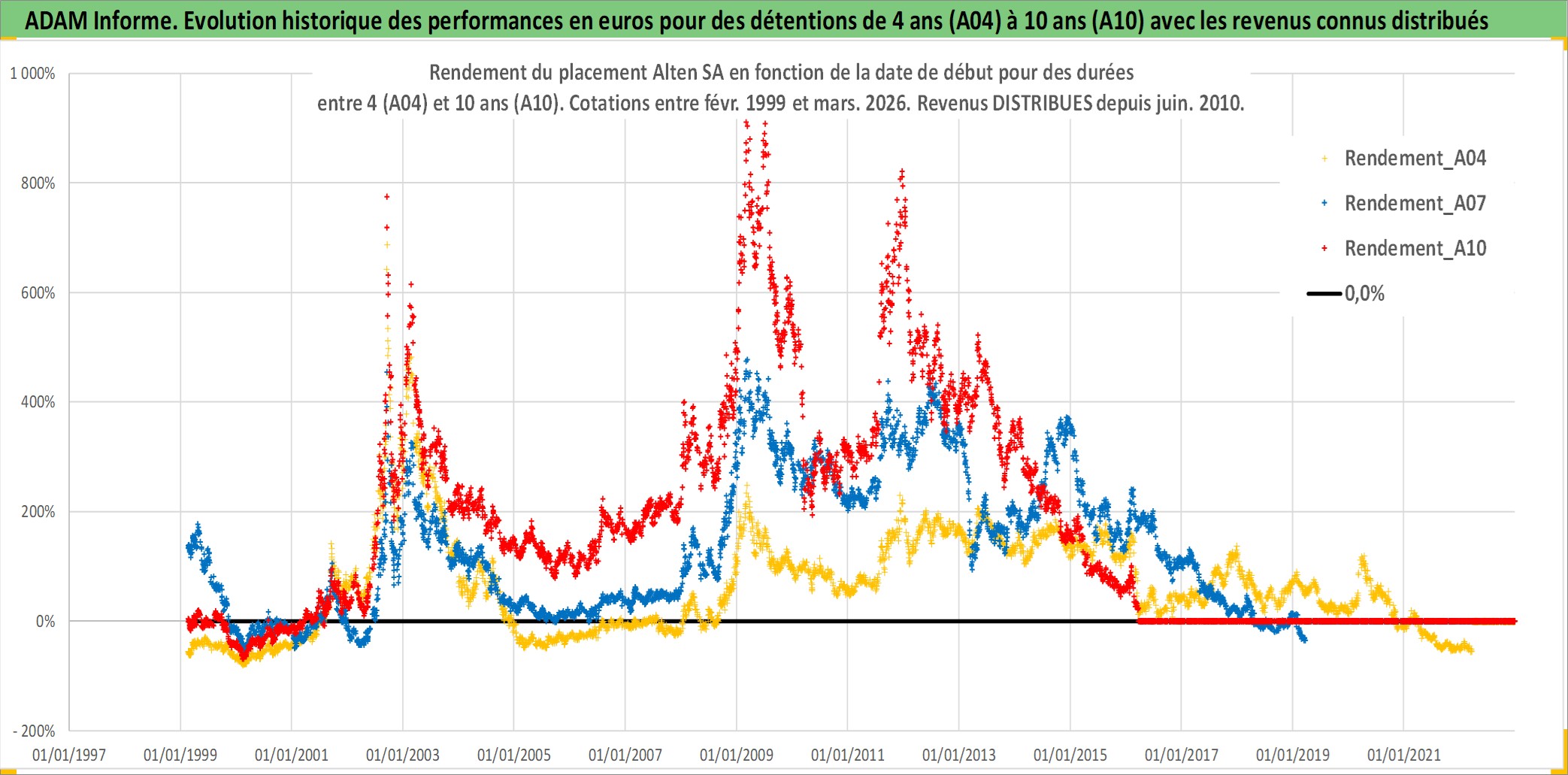 Site dédié aux investisseursPage dédiée sur site financeAnalyse des valorisations hebdomadaires de l'action Alten SA. Cet actif est cote en EUR. Les valorisations couvrent les semaines 1999W06 a 2026W13. Les revenus de cet actif financier sont pris en compte depuis la semaine 2010W25. La note ESG de cet actif n'est pas connue.