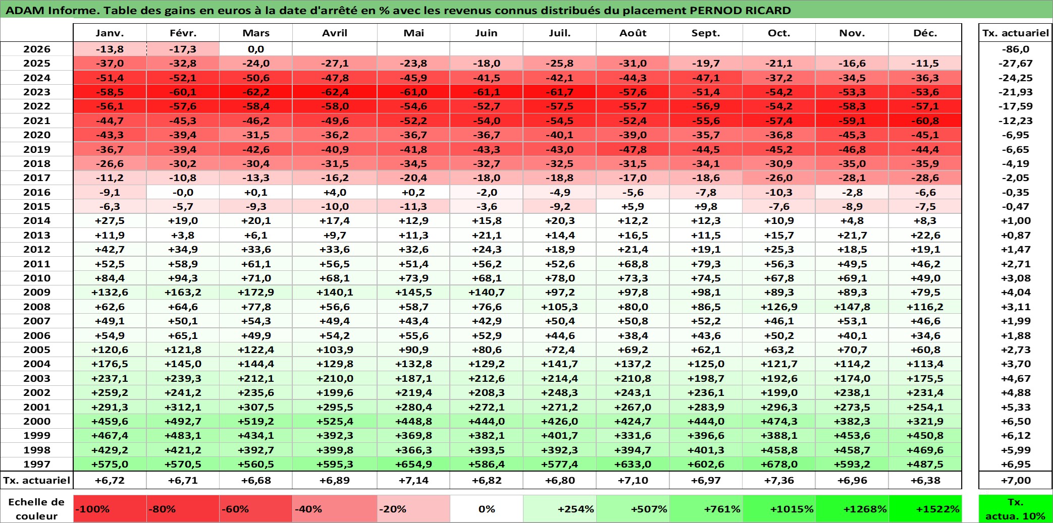 Dernière perfo 1 an en %