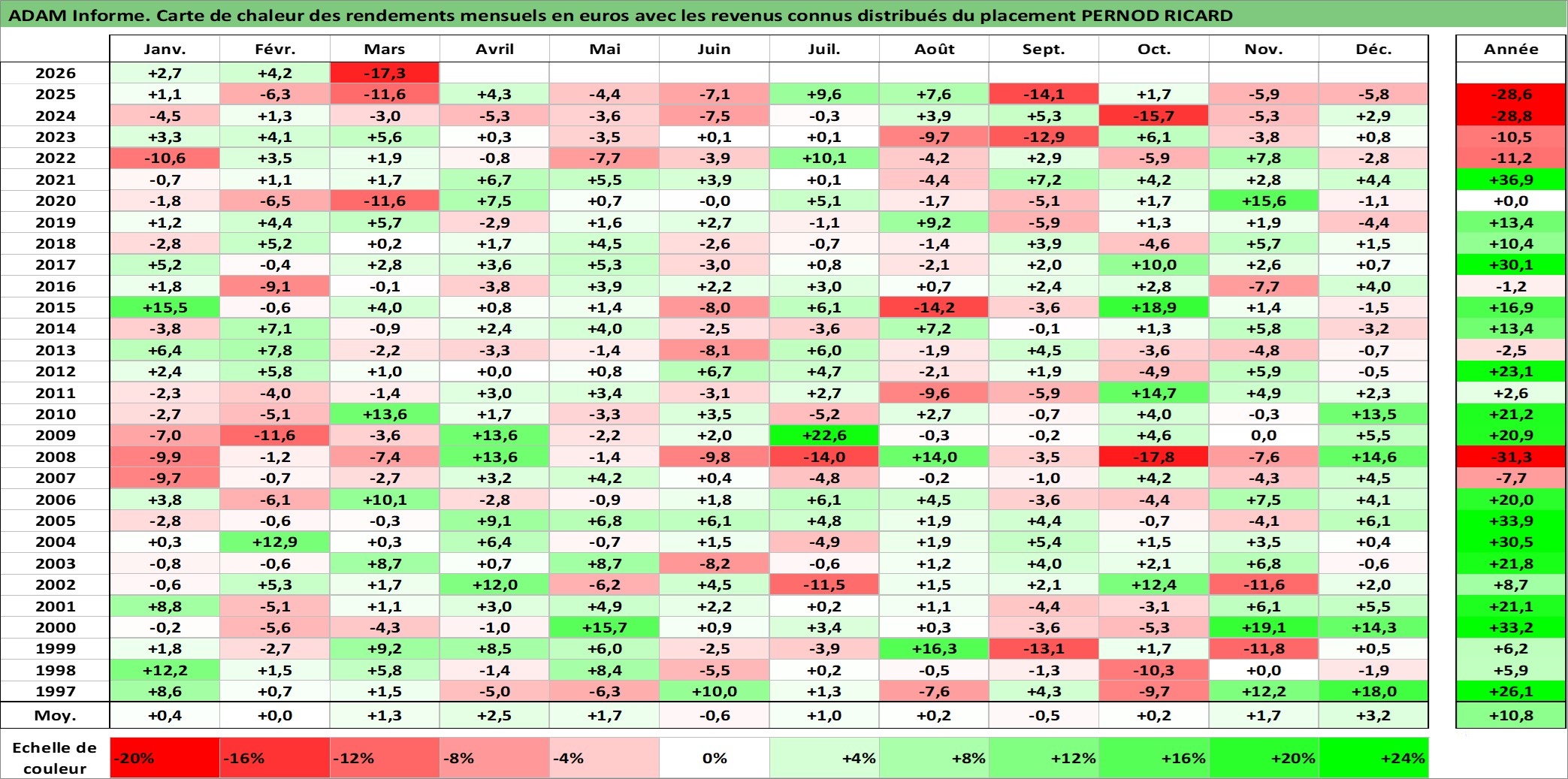 Dernière perfo 10 ans en %