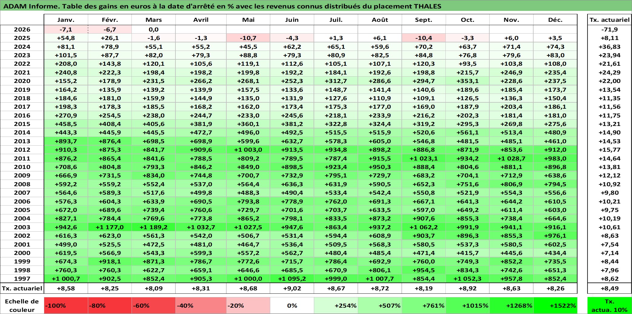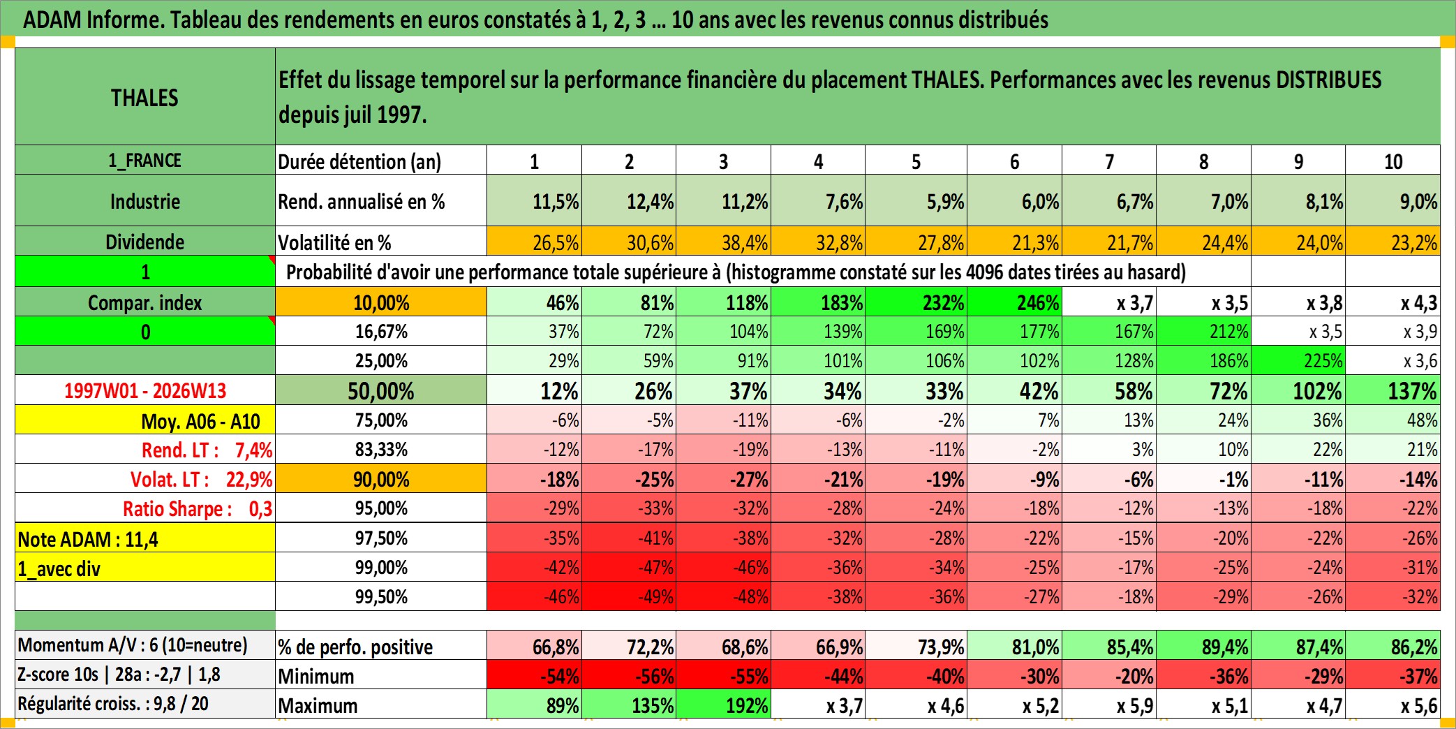 Dernière perfo 10 ans en %
