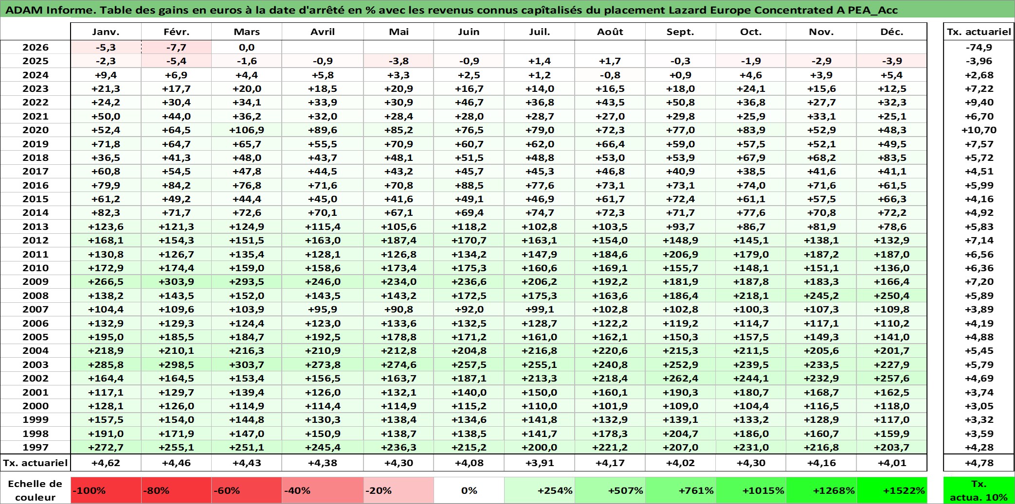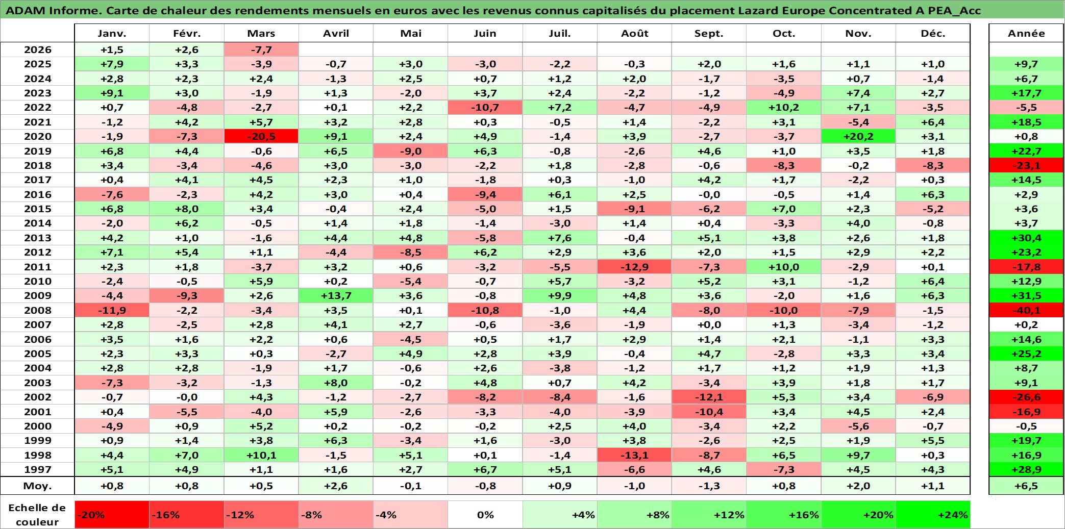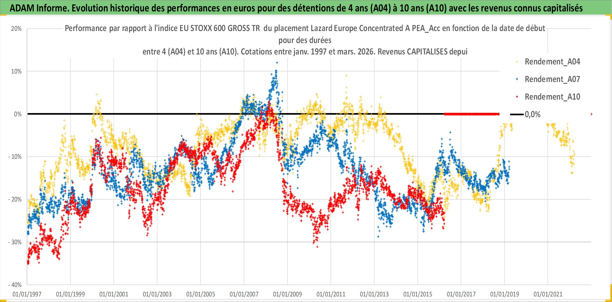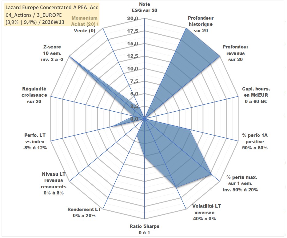Site dédié aux investisseursPage dédiée sur site financeAnalyse des valorisations hebdomadaires du fonds Lazard Europe Concentrated A PEA_Acc. Cet actif est cote en EUR. Les valorisations couvrent les semaines 1997W01 a 2026W13. Les revenus de cet actif financier sont pris en compte depuis la semaine 1997W01. La note ESG de cet actif n'est pas connue.