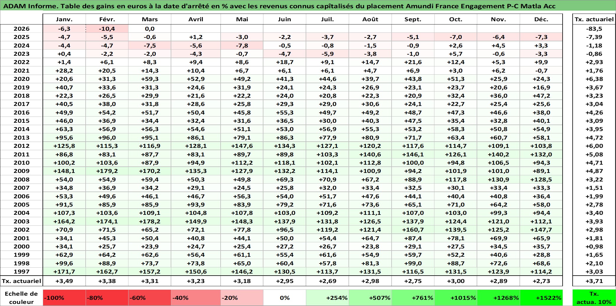 Dernière perfo 10 ans en %
