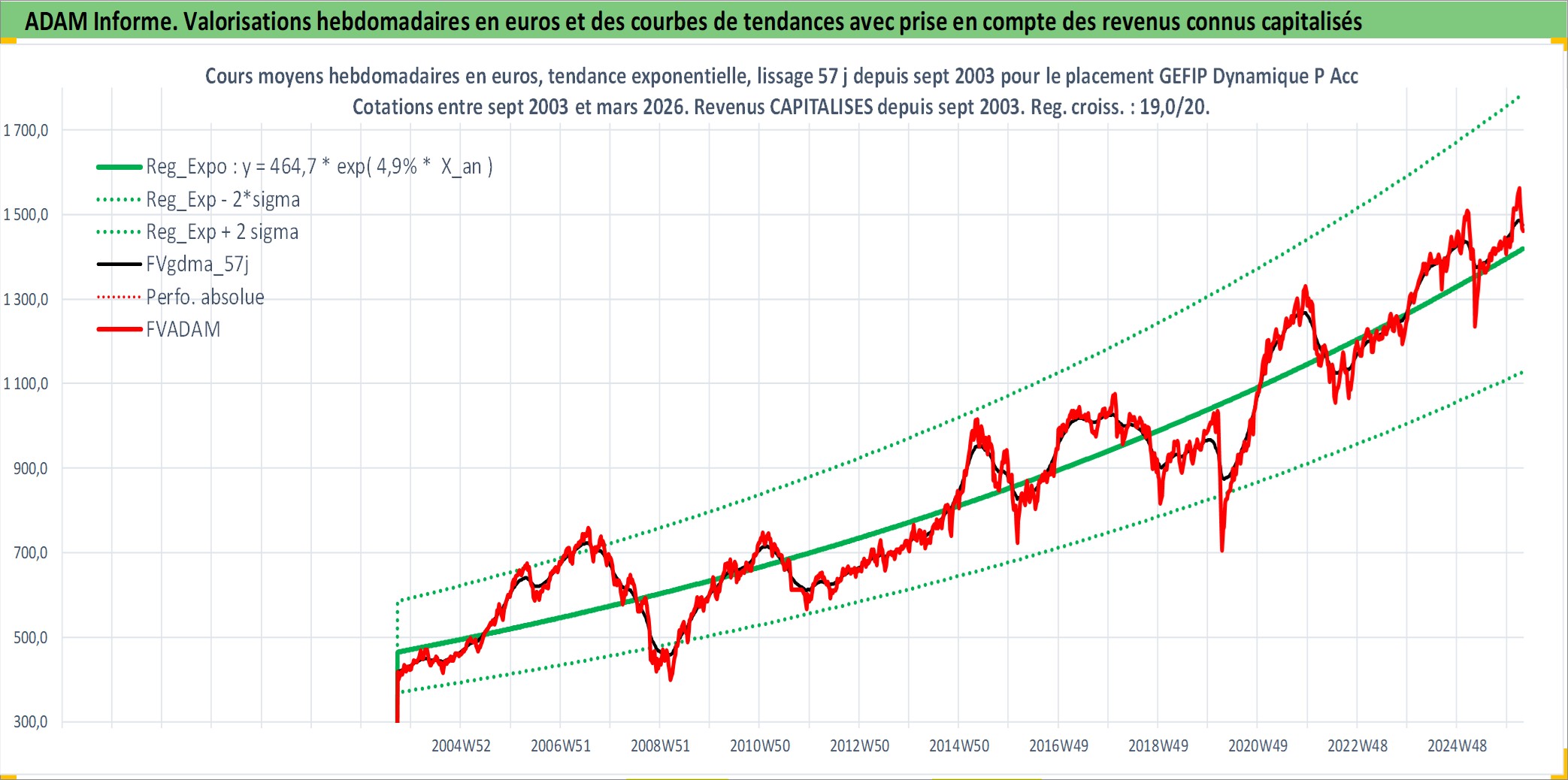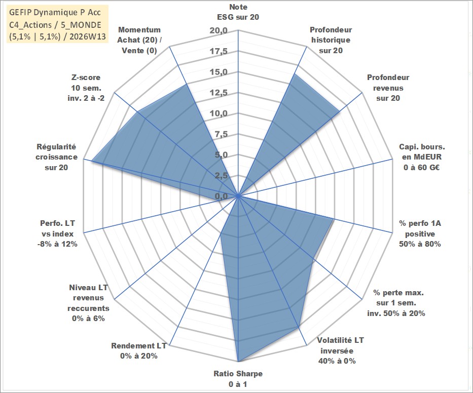 Site dédié aux investisseursPage dédiée sur site financeAnalyse des valorisations hebdomadaires du fonds GEFIP Dynamique P Acc. Cet actif est cote en EUR. Les valorisations couvrent les semaines 2003W38 a 2026W13. Les revenus de cet actif financier sont pris en compte depuis la semaine 2003W38. La note ESG de cet actif n'est pas connue.
