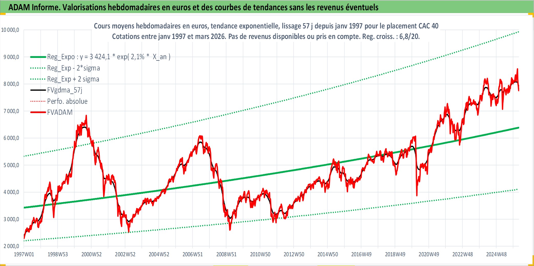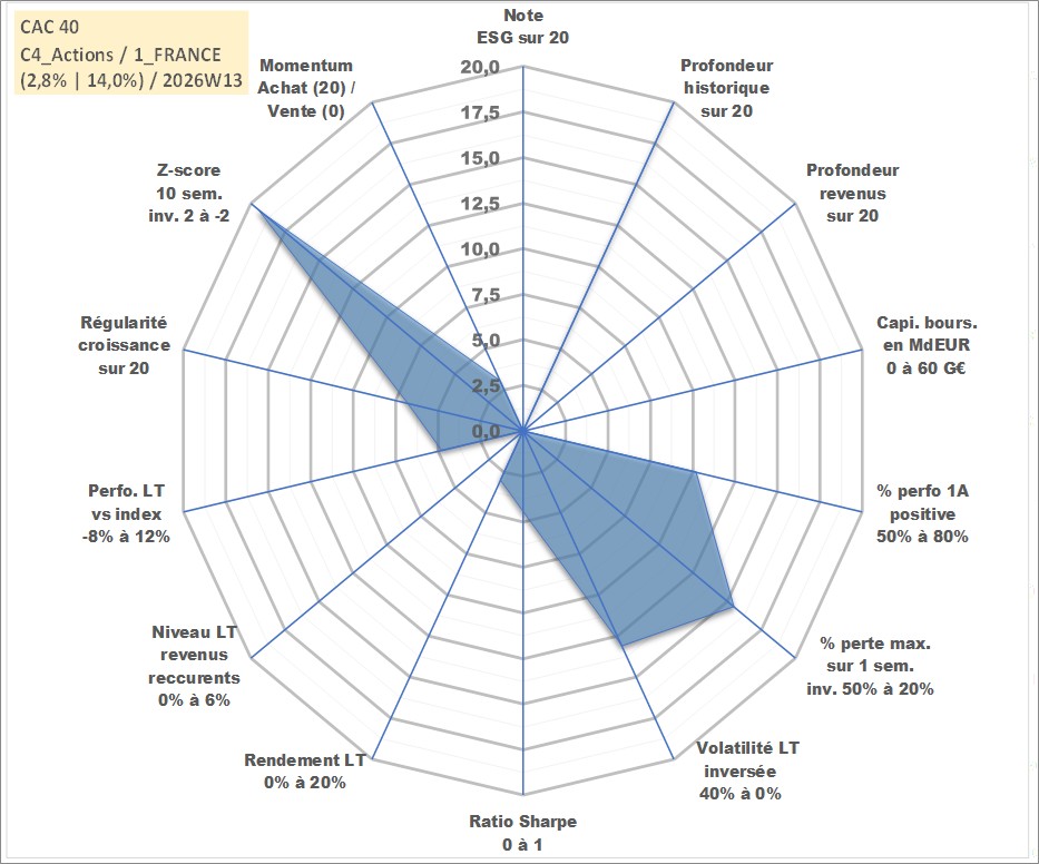 Site dédié aux investisseursPage dédiée sur site financeAnalyse des valorisations hebdomadaires de l'actif CAC 40. Cet actif est cote en EUR. Les valorisations couvrent les semaines 1997W01 a 2026W13. Les revenus de cet actif financier ne sont pas connus car non existants ou non disponibles sur le site Yahoo Finance. La note ESG de cet actif n'est pas connue.
