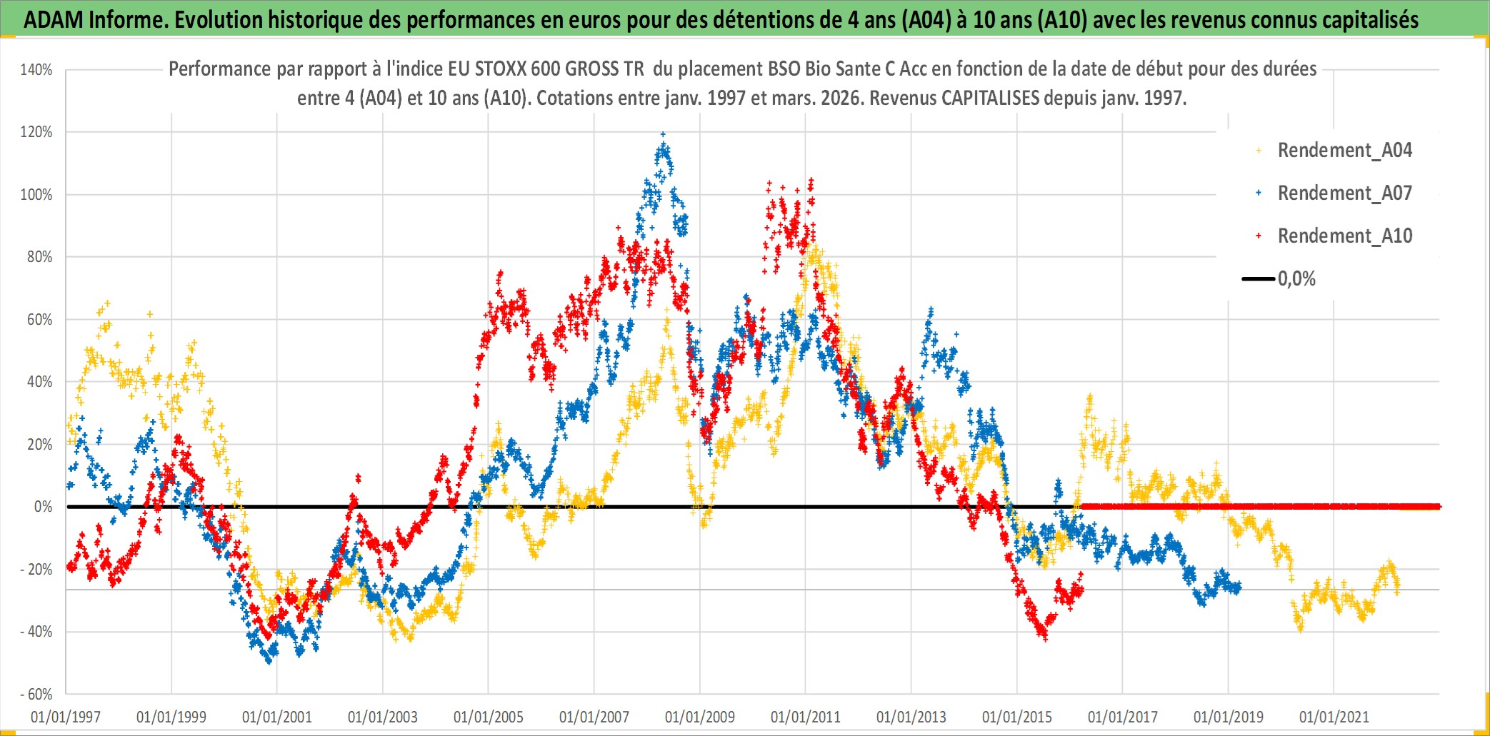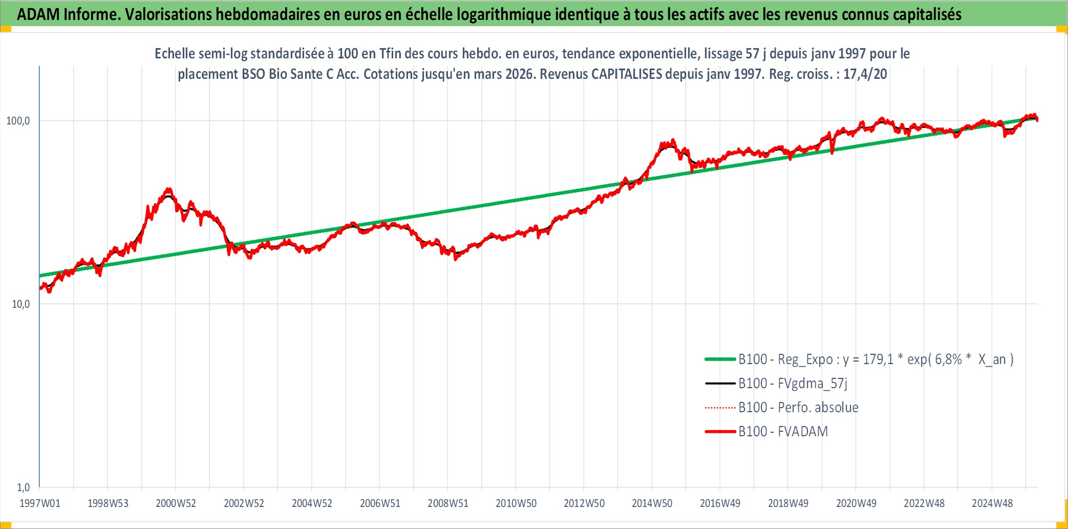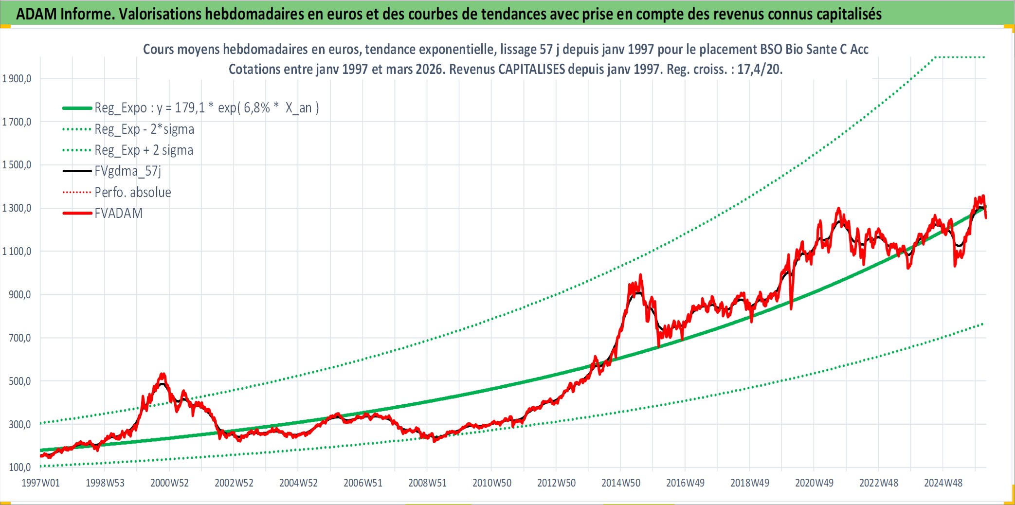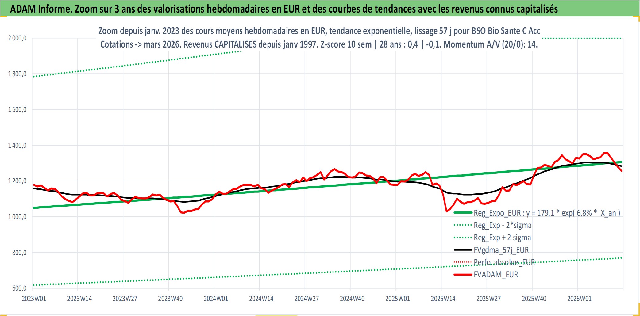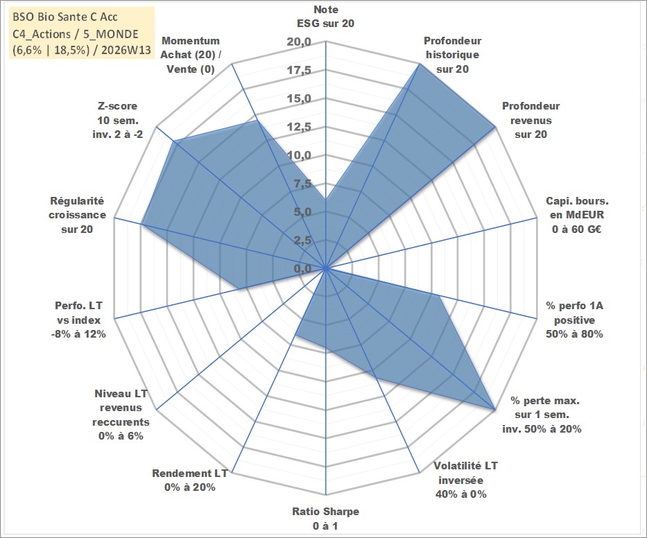 Site dédié aux investisseursPage dédiée sur site financeAnalyse des valorisations hebdomadaires du fonds BSO Bio Sante C Acc. Cet actif est cote en EUR. Les valorisations couvrent les semaines 1997W01 a 2026W13. Les revenus de cet actif financier sont pris en compte depuis la semaine 1997W01. La note globale ESG de cet actif est estimee a 6.0 (apres rebasage entre 0 et 20).