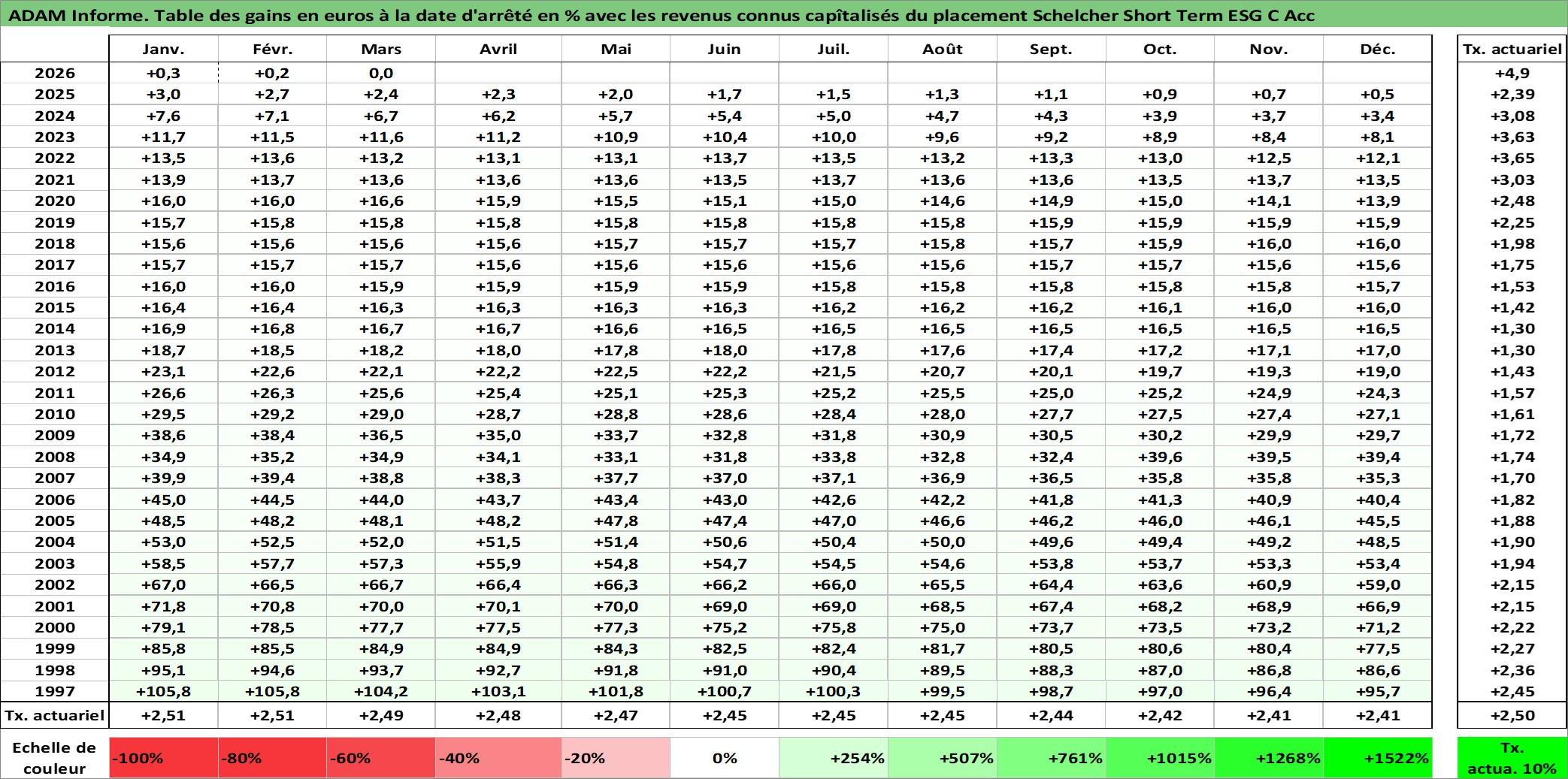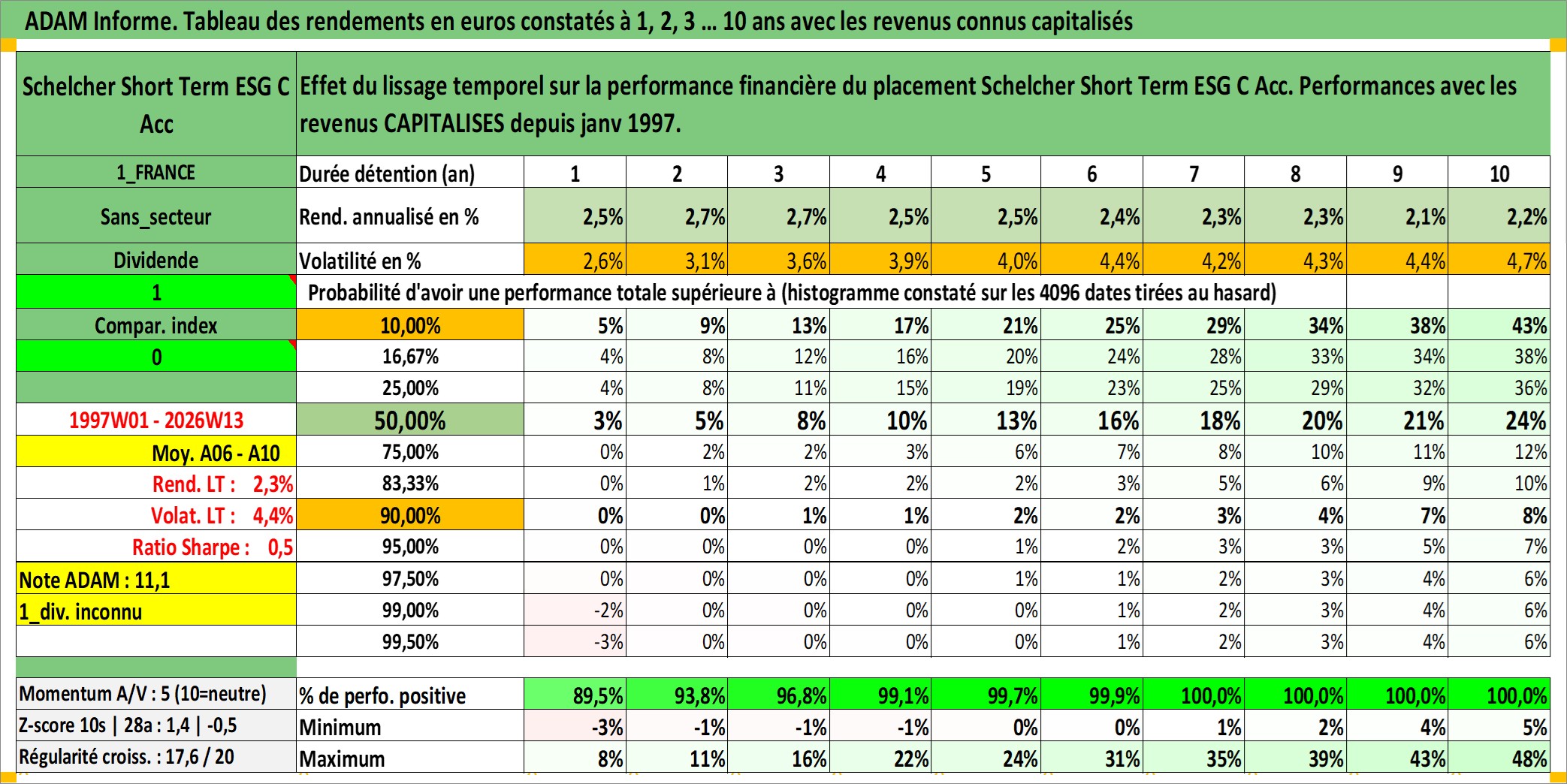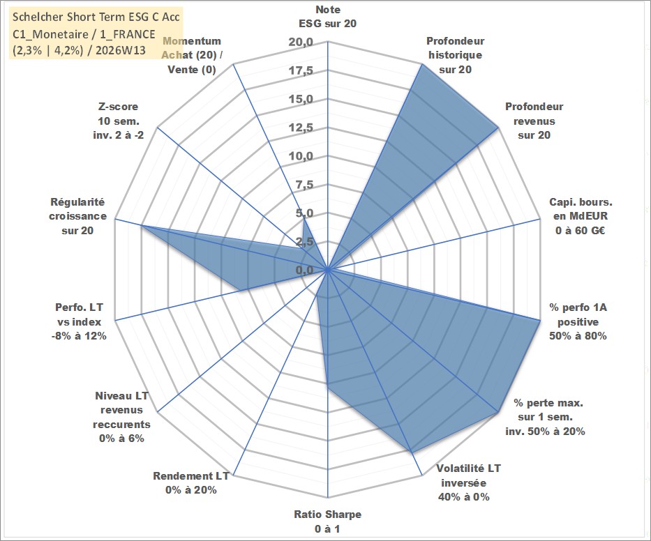 Site dédié aux investisseursPage dédiée sur site financeAnalyse des valorisations hebdomadaires du fonds Schelcher Short Term ESG C Acc. Cet actif est cote en EUR. Les valorisations couvrent les semaines 1997W01 a 2026W13. Les revenus de cet actif financier sont pris en compte depuis la semaine 1997W01. La note ESG de cet actif n'est pas connue.