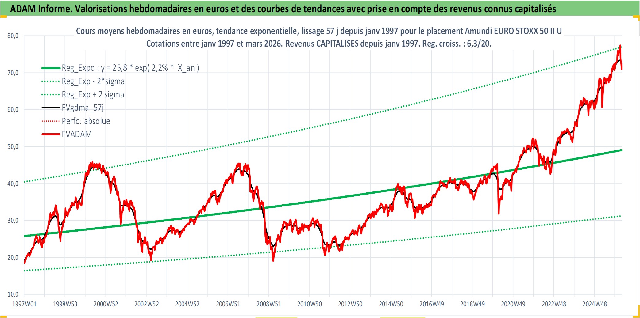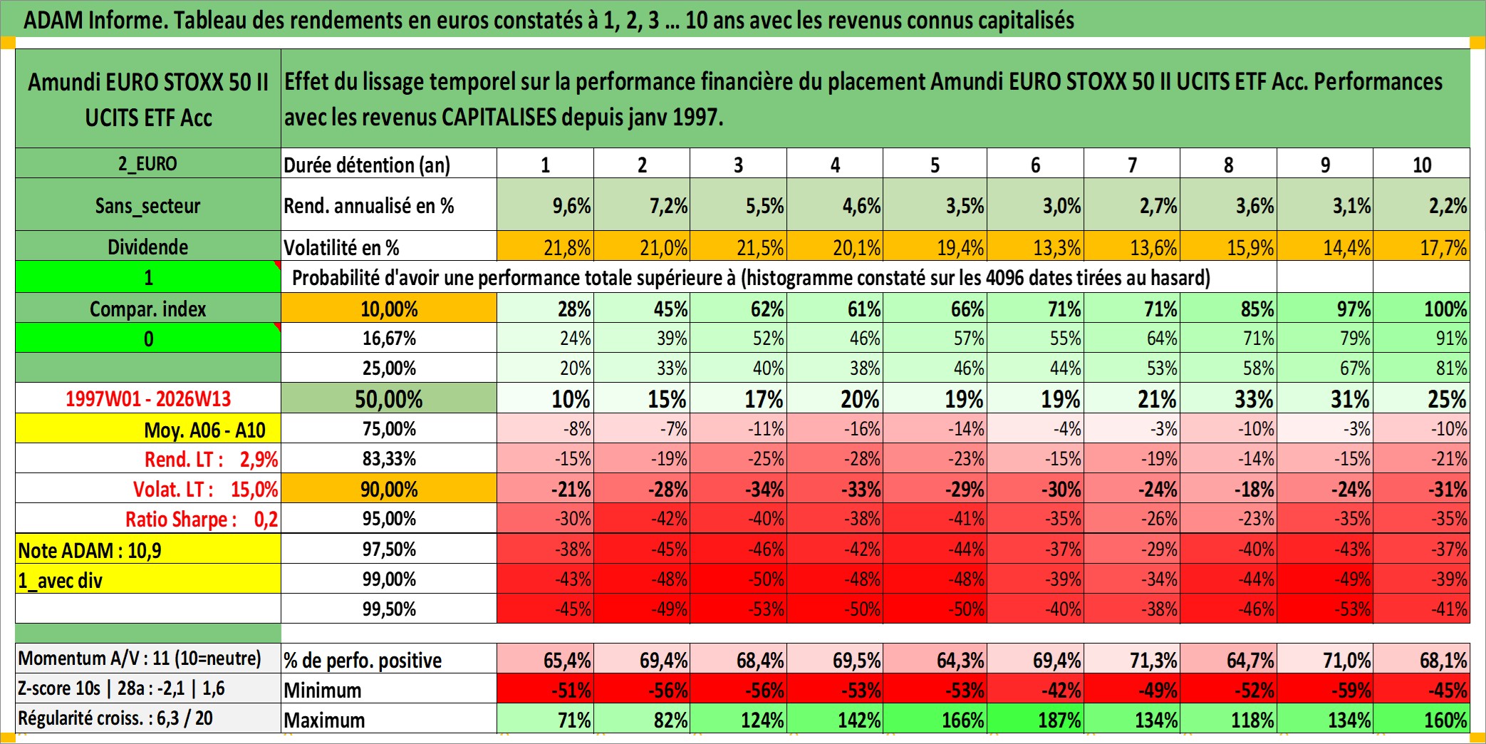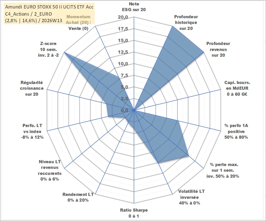 Site dédié aux investisseursPage dédiée sur site financeAnalyse des valorisations hebdomadaires du fonds Amundi EURO STOXX 50 II UCITS ETF Acc. Cet actif est cote en EUR. Les valorisations couvrent les semaines 1997W01 a 2026W13. Les revenus de cet actif financier sont pris en compte depuis la semaine 1997W01. La note ESG de cet actif n'est pas connue.