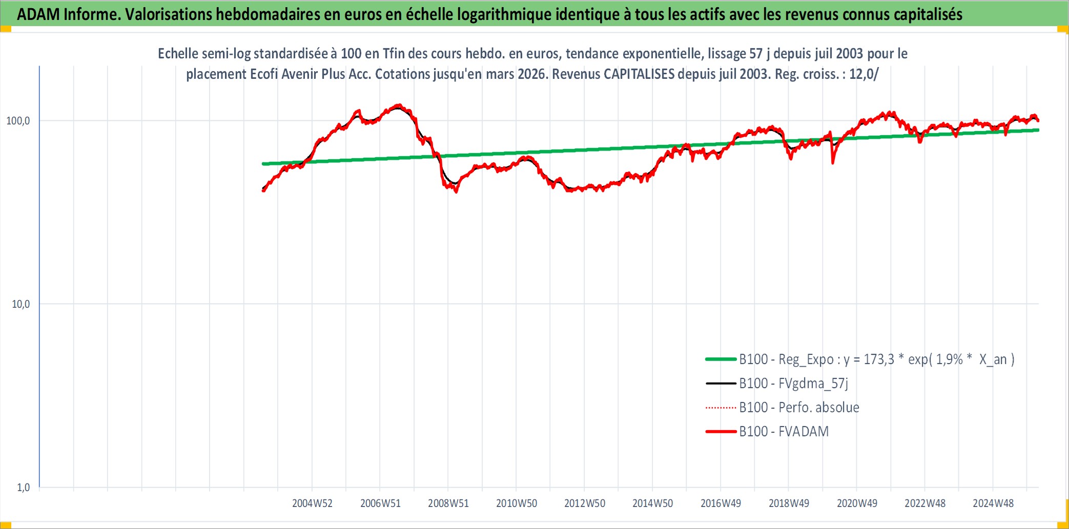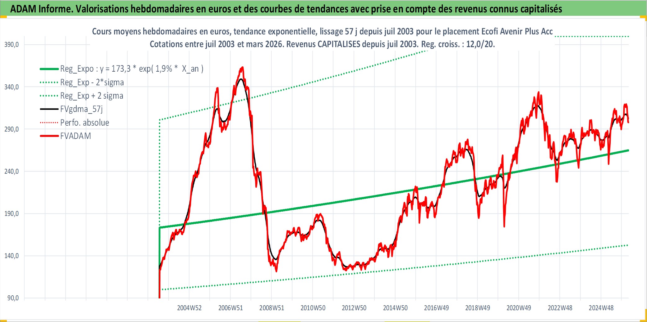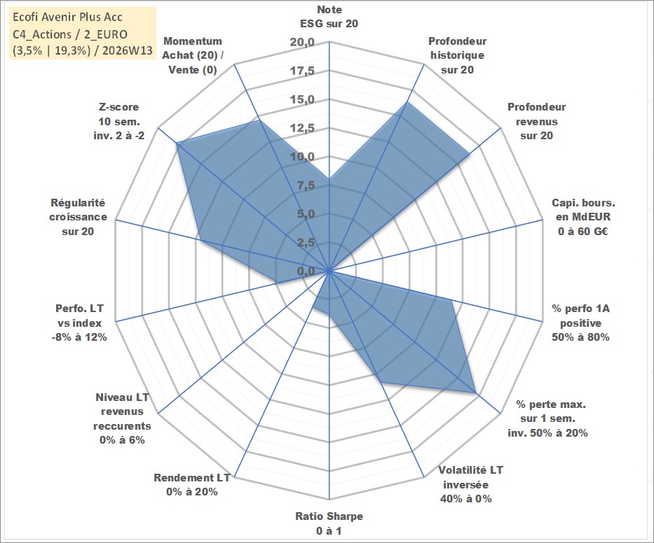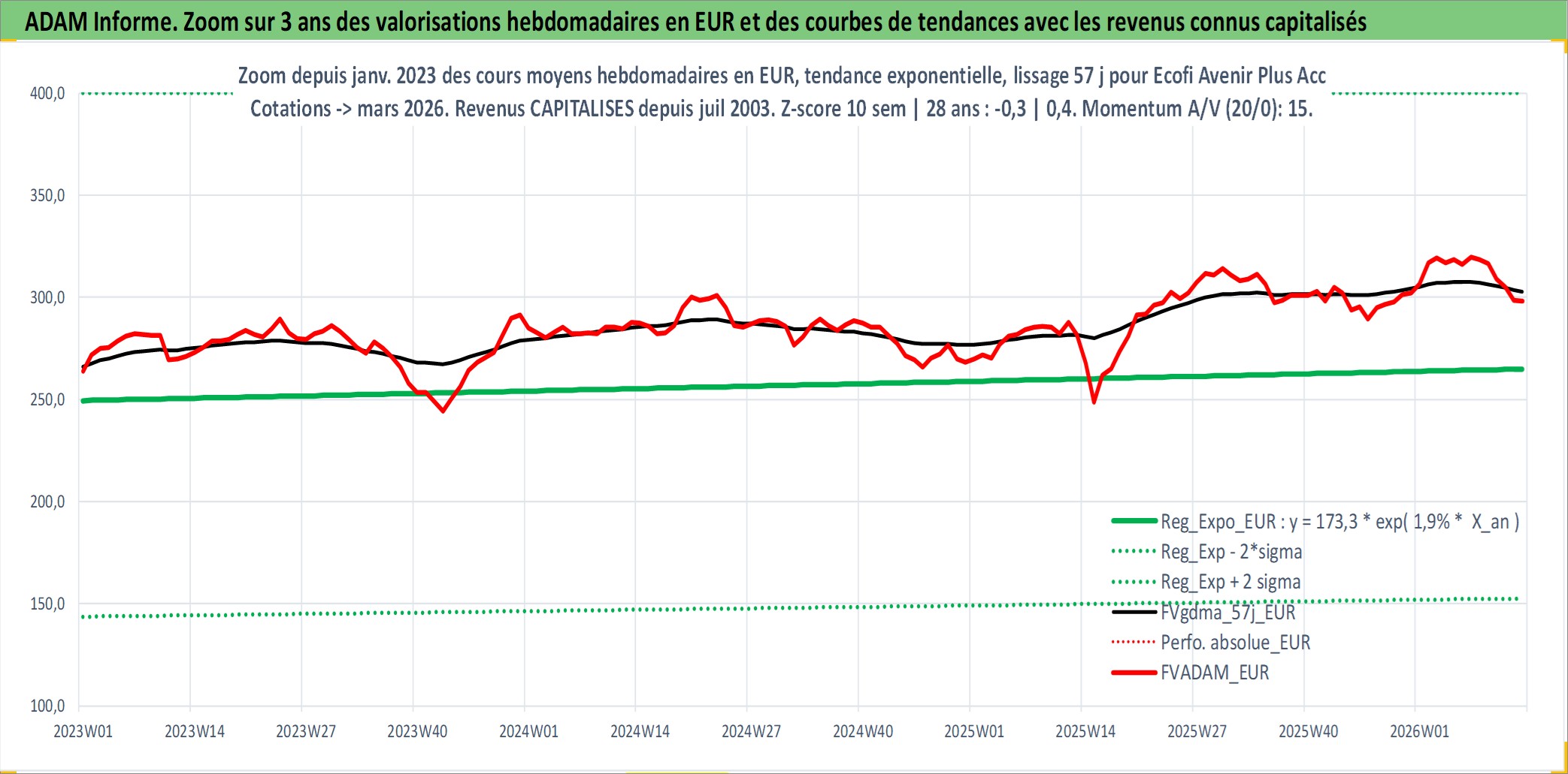 Site dédié aux investisseursPage dédiée sur site financeAnalyse des valorisations hebdomadaires du fonds Ecofi Avenir Plus Acc. Cet actif est cote en EUR. Les valorisations couvrent les semaines 2003W29 a 2026W13. Les revenus de cet actif financier sont pris en compte depuis la semaine 2003W29. La note globale ESG de cet actif est estimee a 8.0 (apres rebasage entre 0 et 20).