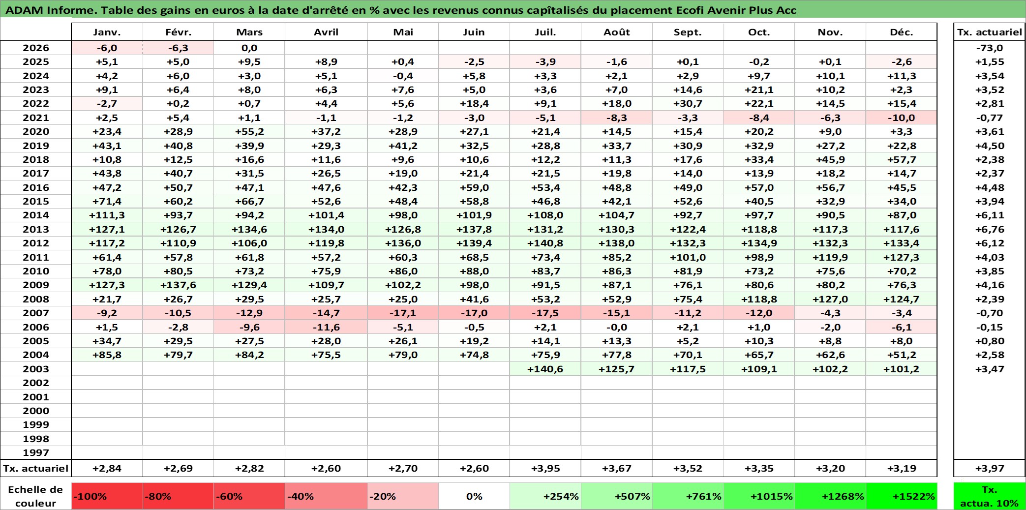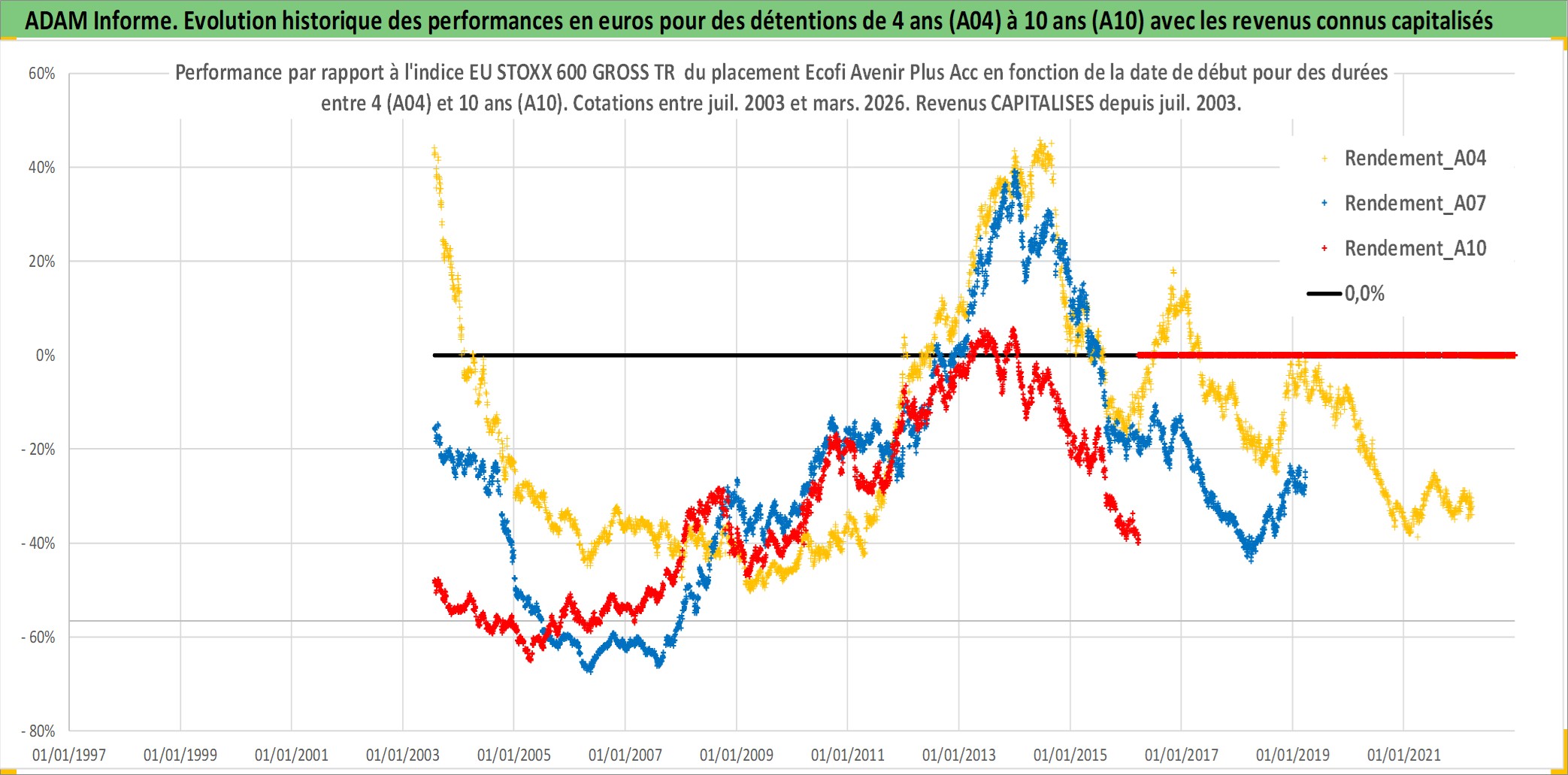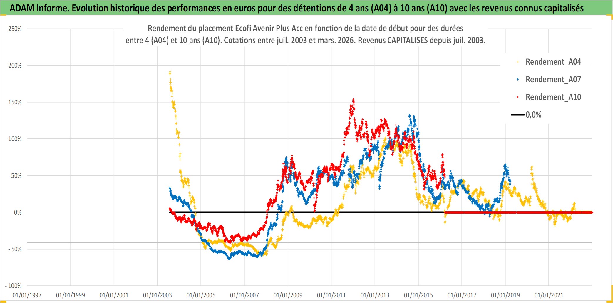 Site dédié aux investisseursPage dédiée sur site financeAnalyse des valorisations hebdomadaires du fonds Ecofi Avenir Plus Acc. Cet actif est cote en EUR. Les valorisations couvrent les semaines 2003W29 a 2026W13. Les revenus de cet actif financier sont pris en compte depuis la semaine 2003W29. La note globale ESG de cet actif est estimee a 8.0 (apres rebasage entre 0 et 20).